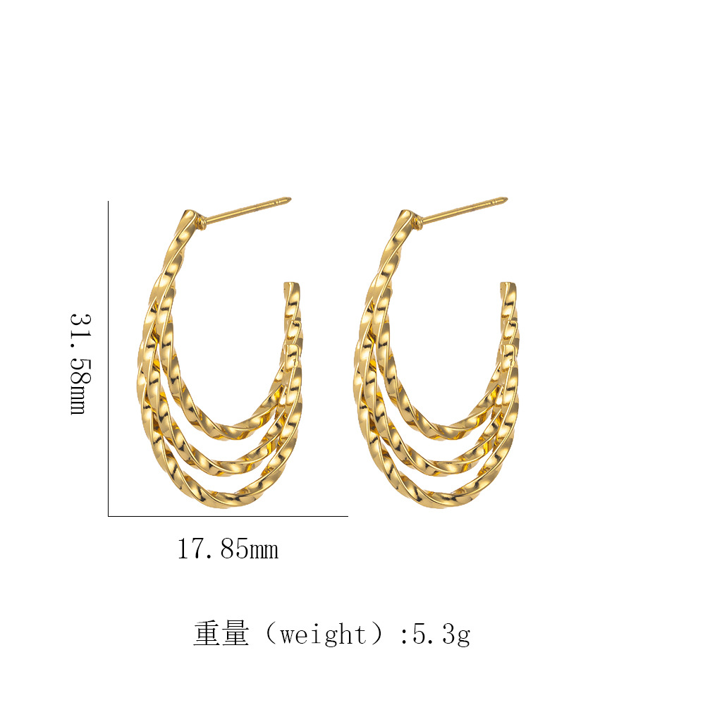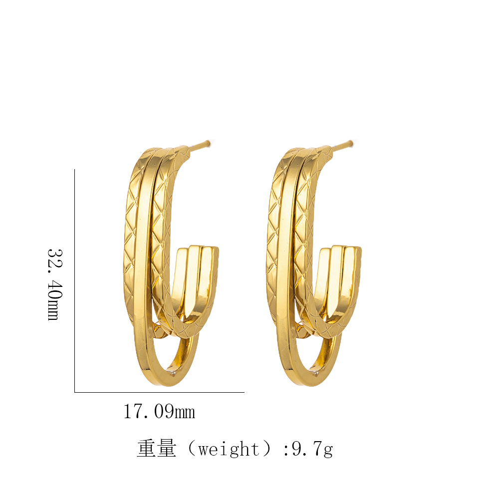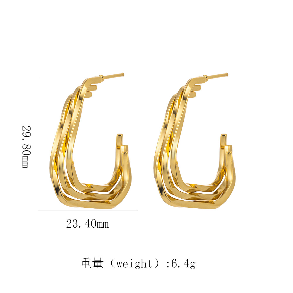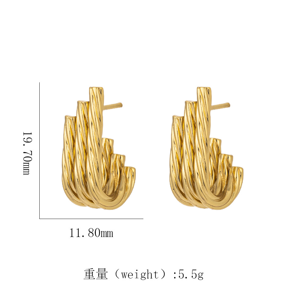 跨境热销 时尚高级感几何镂空扭曲麻花螺旋纹18k金色钛钢女士耳钉