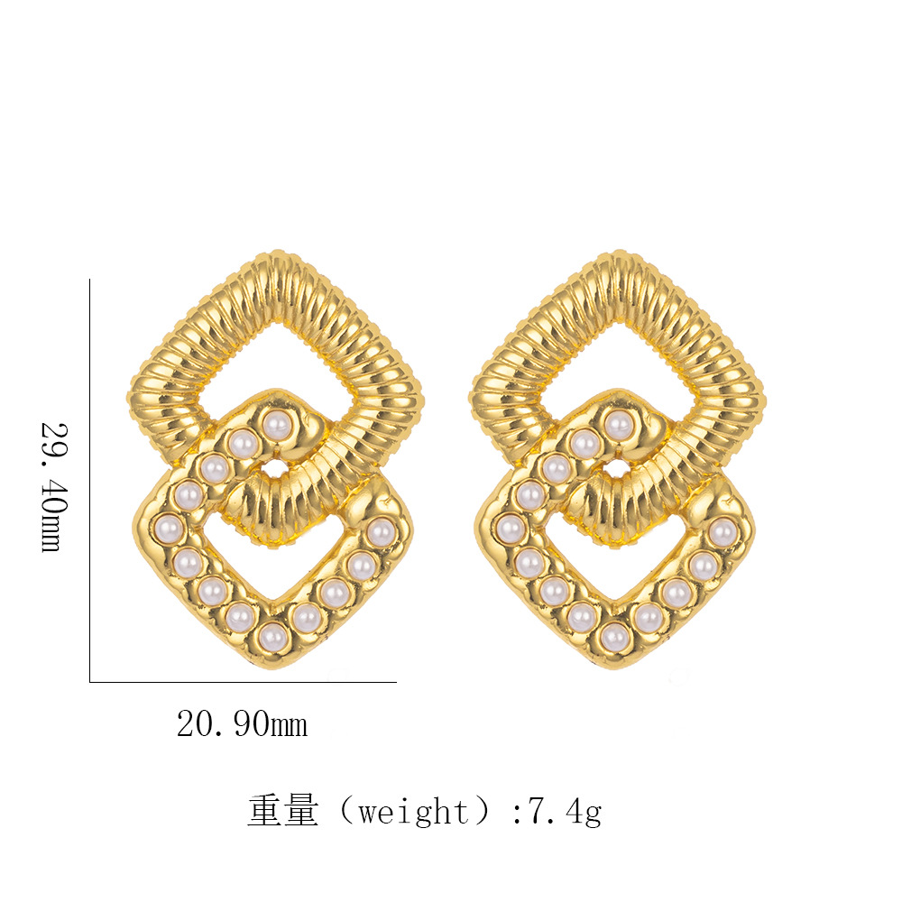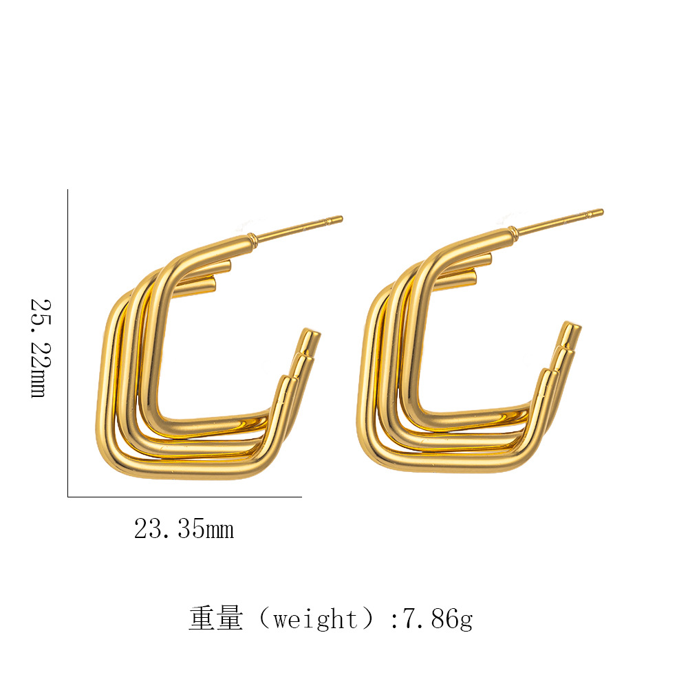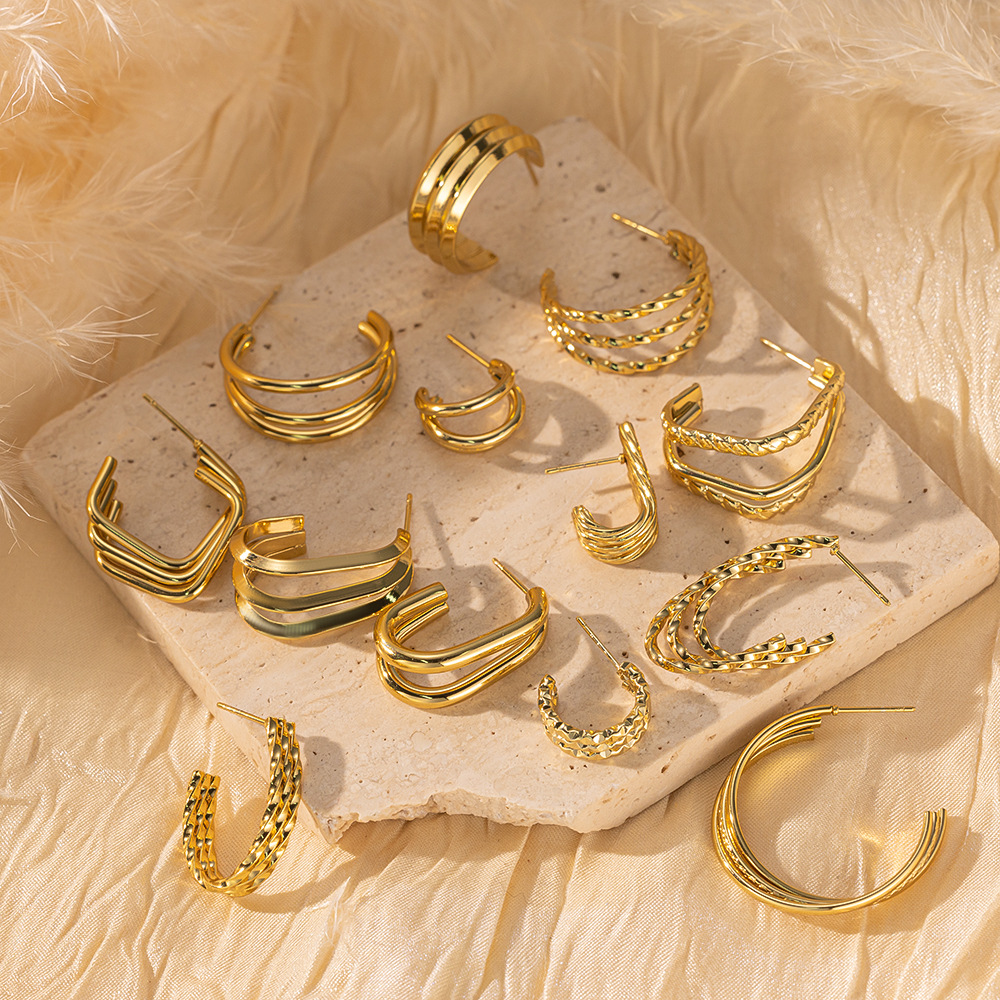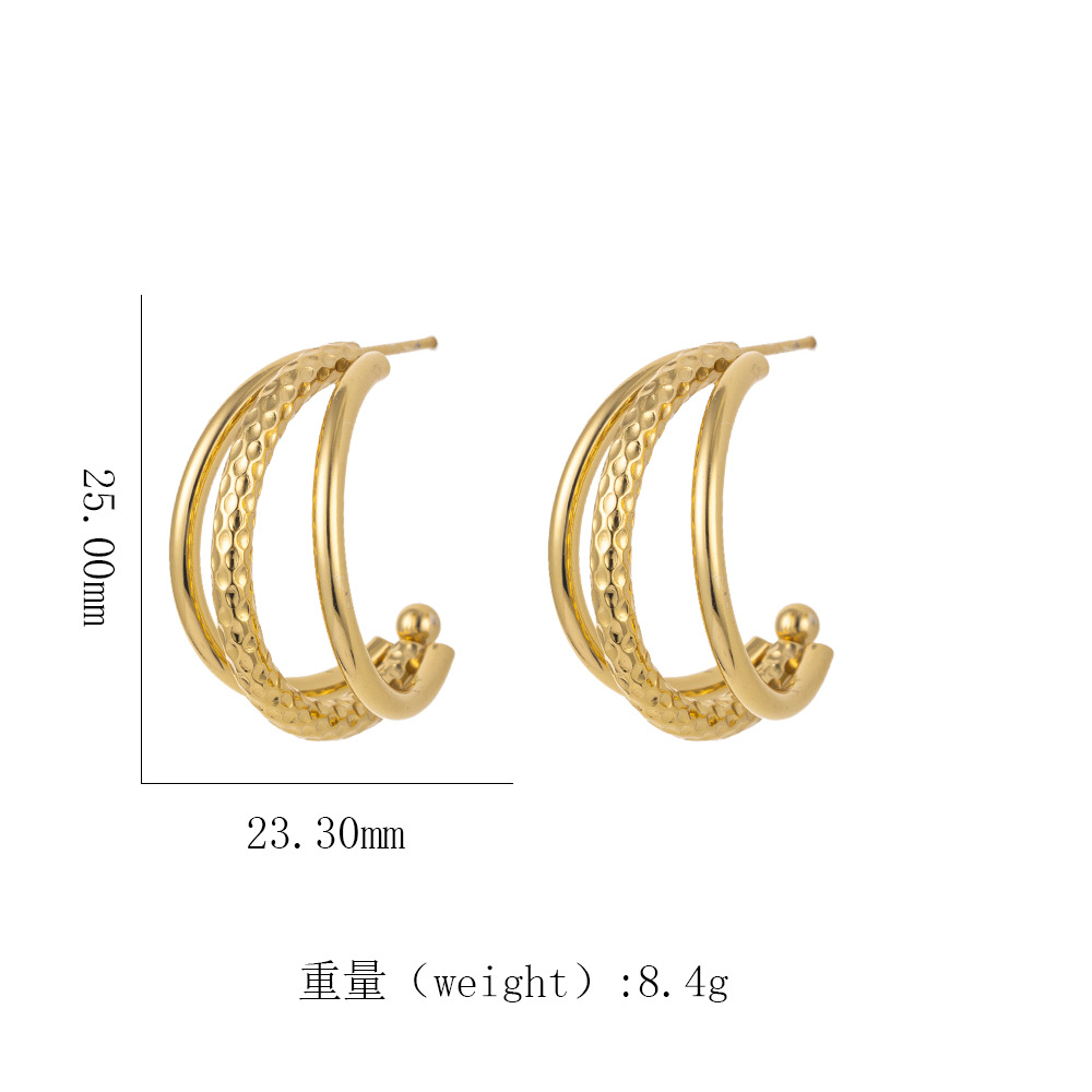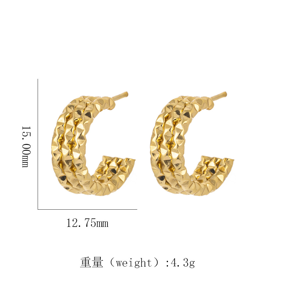 跨境热销 时尚高级感几何镂空扭曲麻花螺旋纹18k金色钛钢女士耳钉