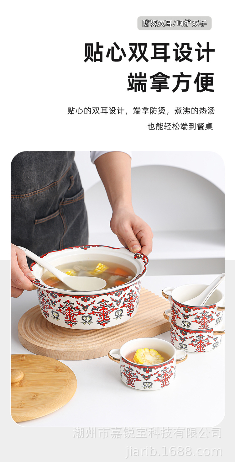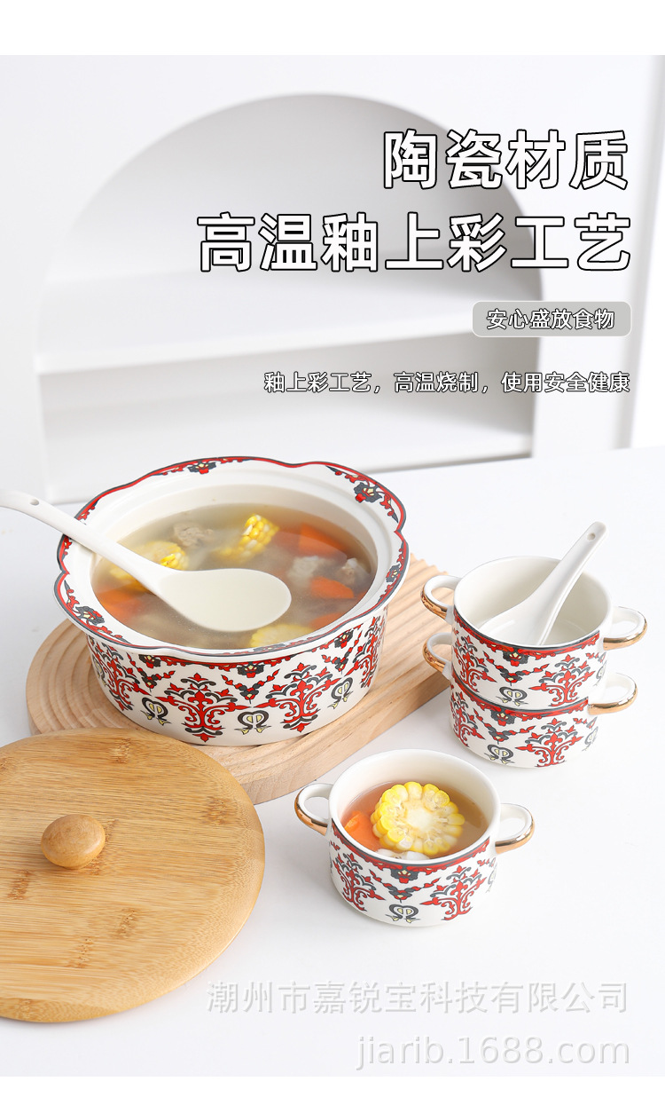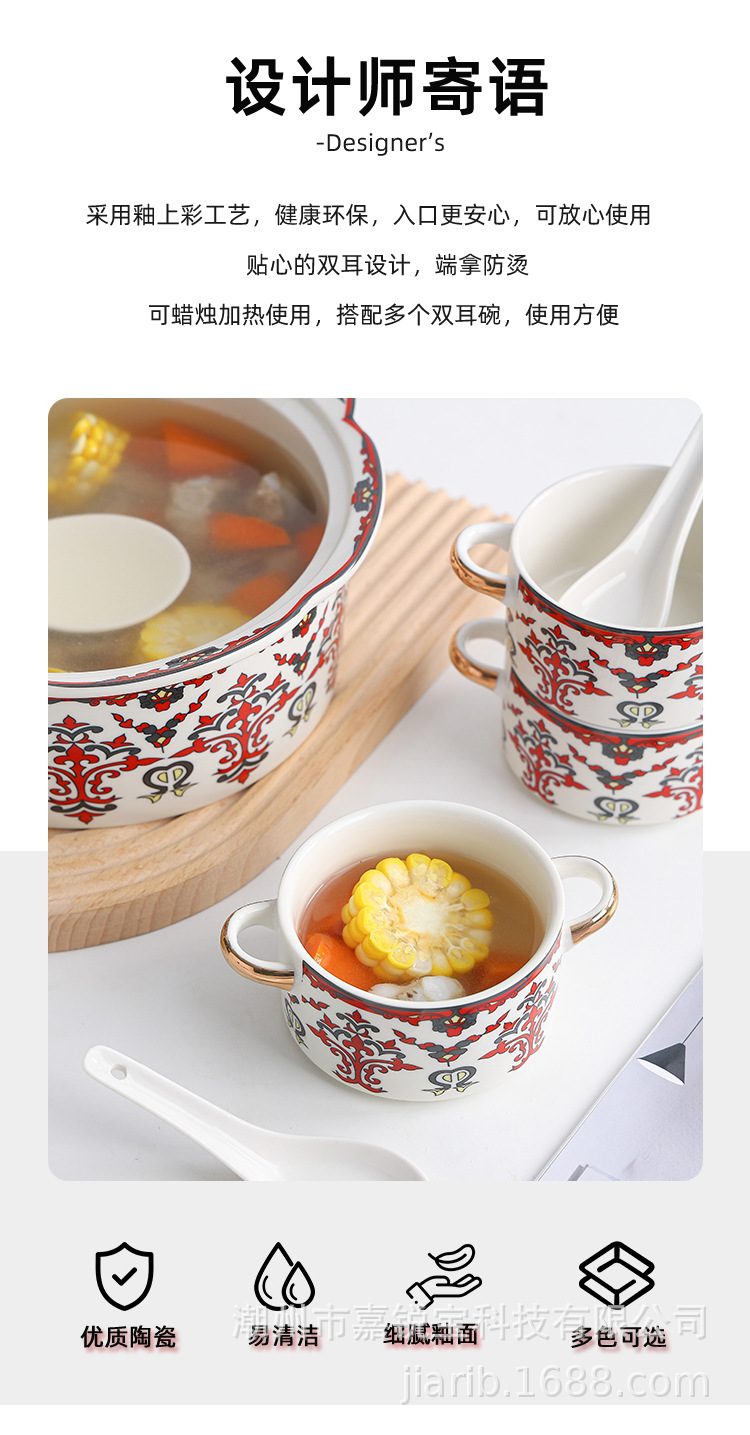 波西米亚风陶瓷汤锅碗套装 家用高颜值碗勺双耳炖汤锅可蜡烛加热