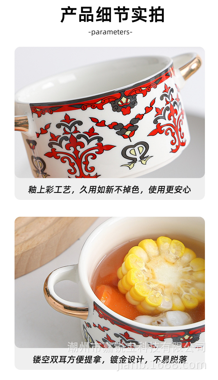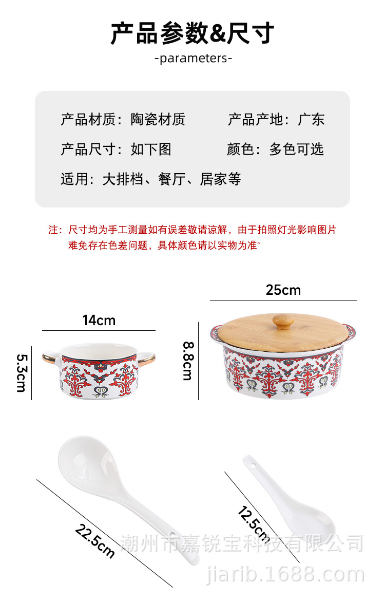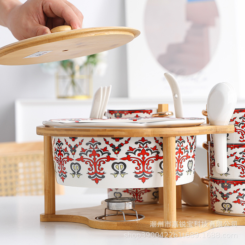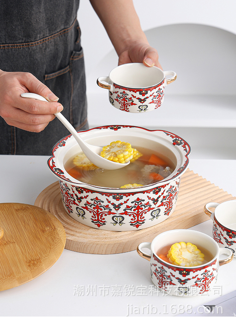 波西米亚风陶瓷汤锅碗套装 家用高颜值碗勺双耳炖汤锅可蜡烛加热