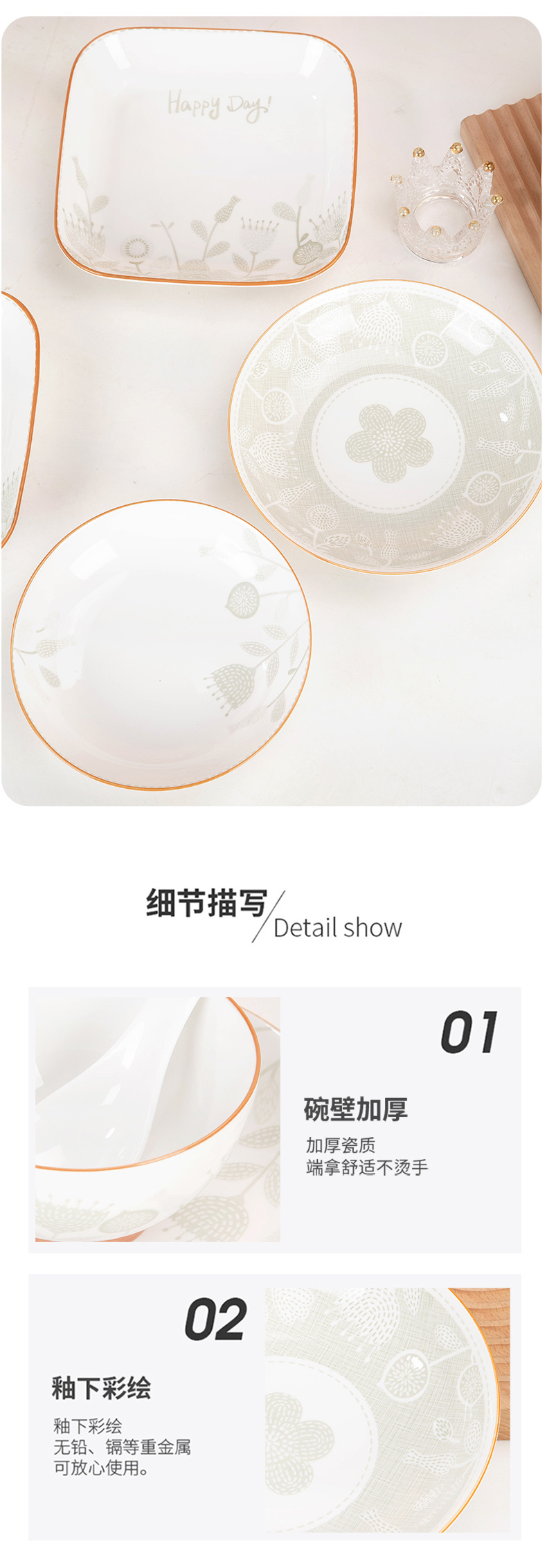 日式简约釉下彩陶瓷餐具礼盒套装家用碗盘碟筷子泡面碗汤碗陶瓷碗