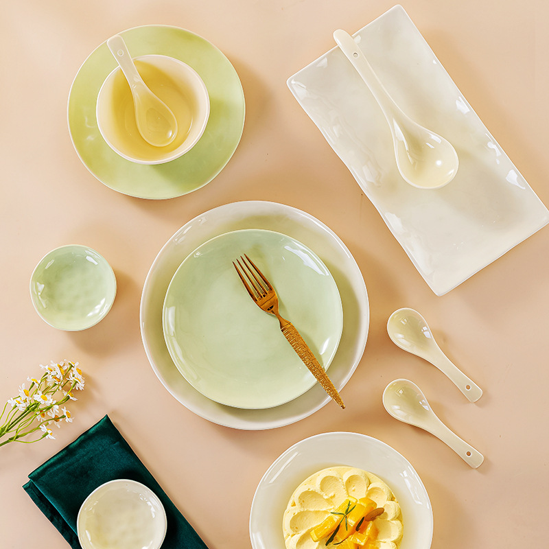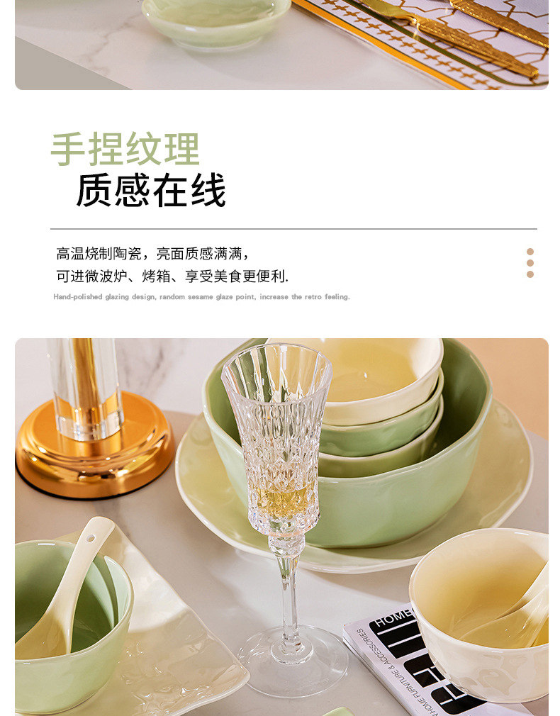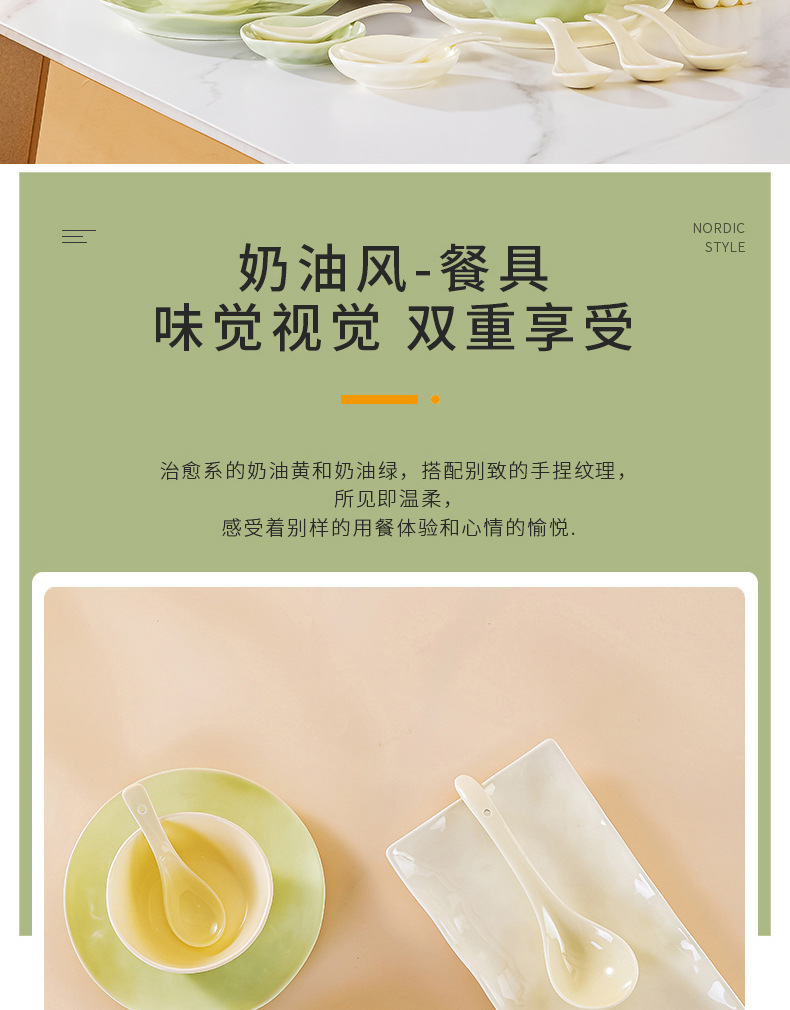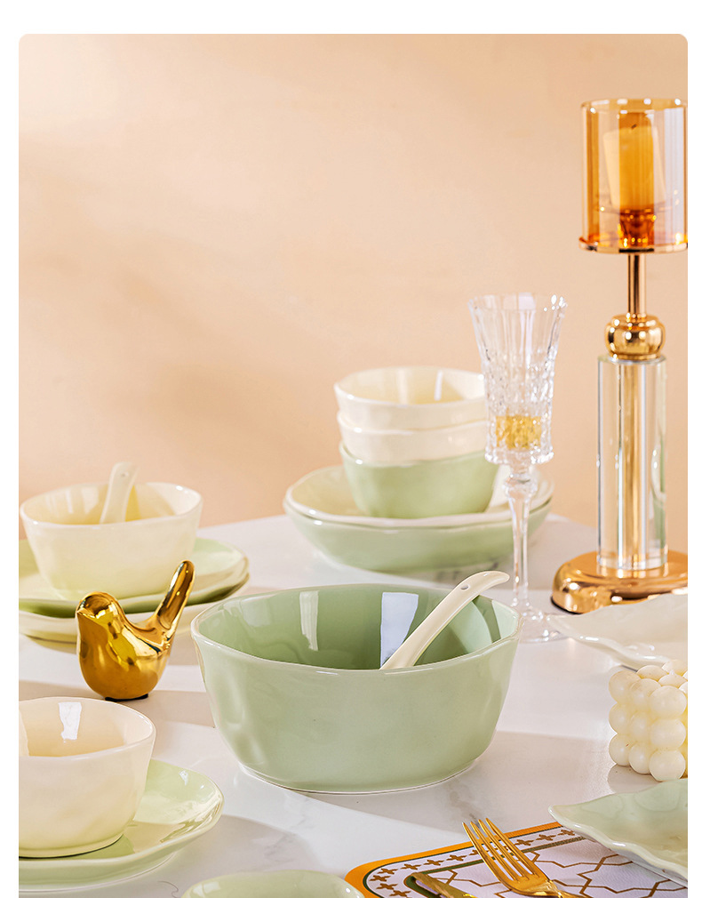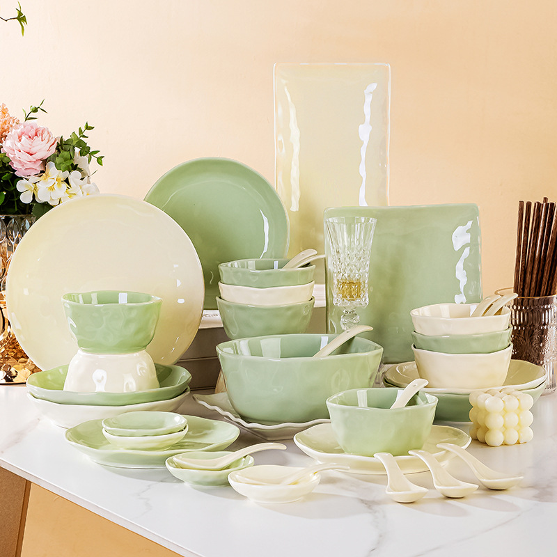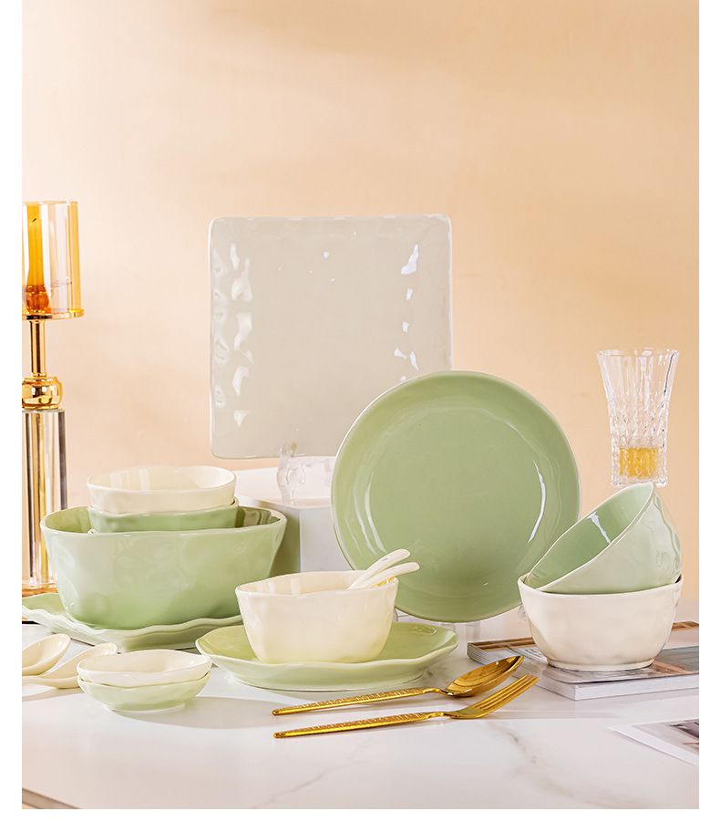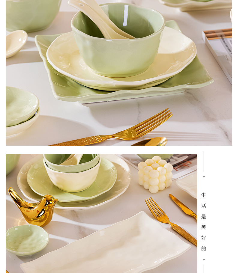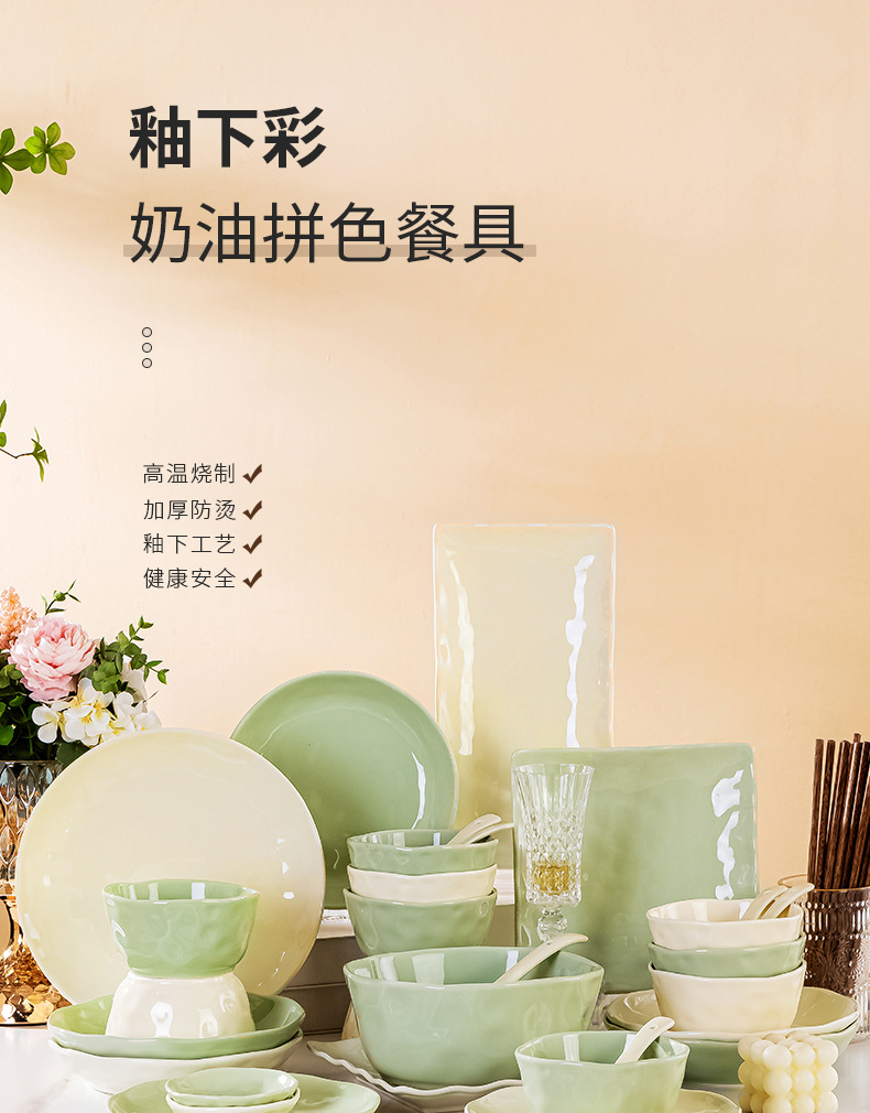 陶瓷碗碟套装家用礼品批发景德镇奶油风碗盘筷子组合餐具全套ins