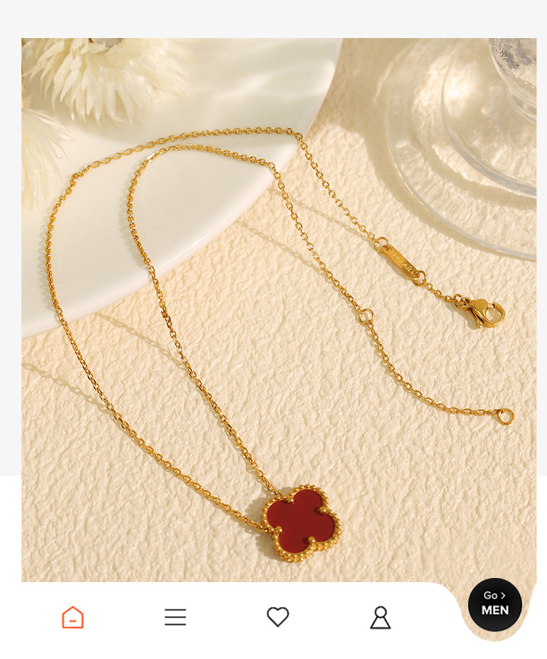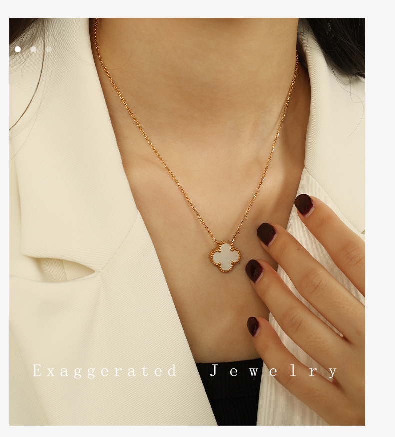 新款钛钢不掉色项链小众设计感百搭个性简约风高级四叶草项链女