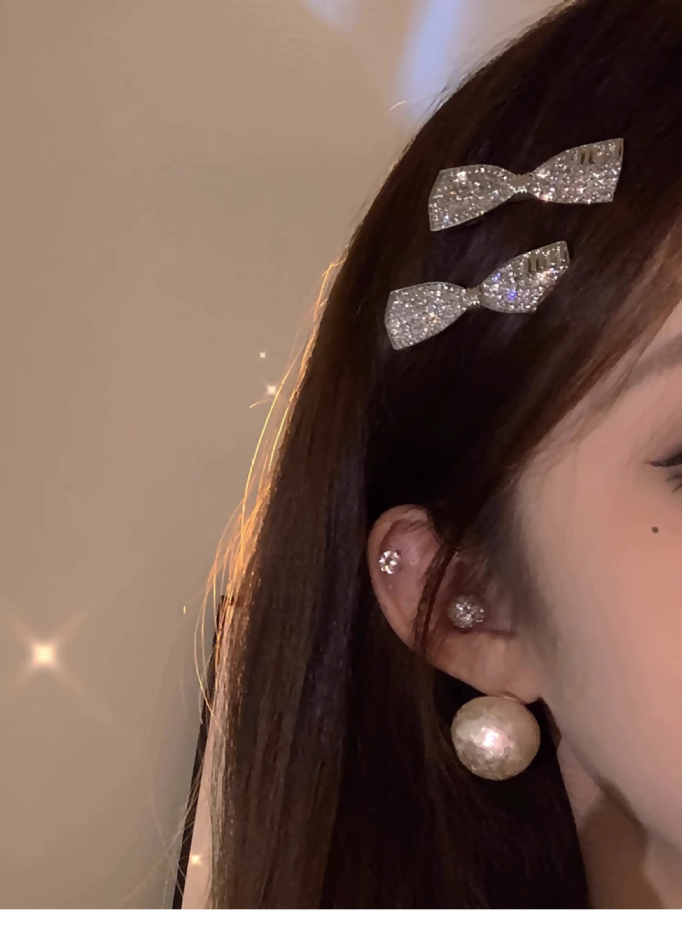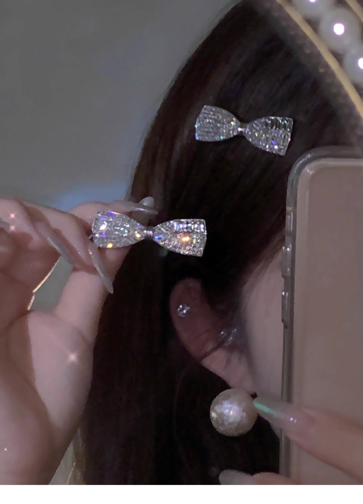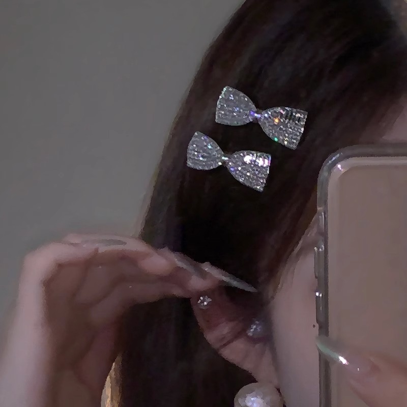 在逃公主~闪钻蝴蝶结水钻发夹鸭嘴夹网红同款精致刘海侧边夹发卡