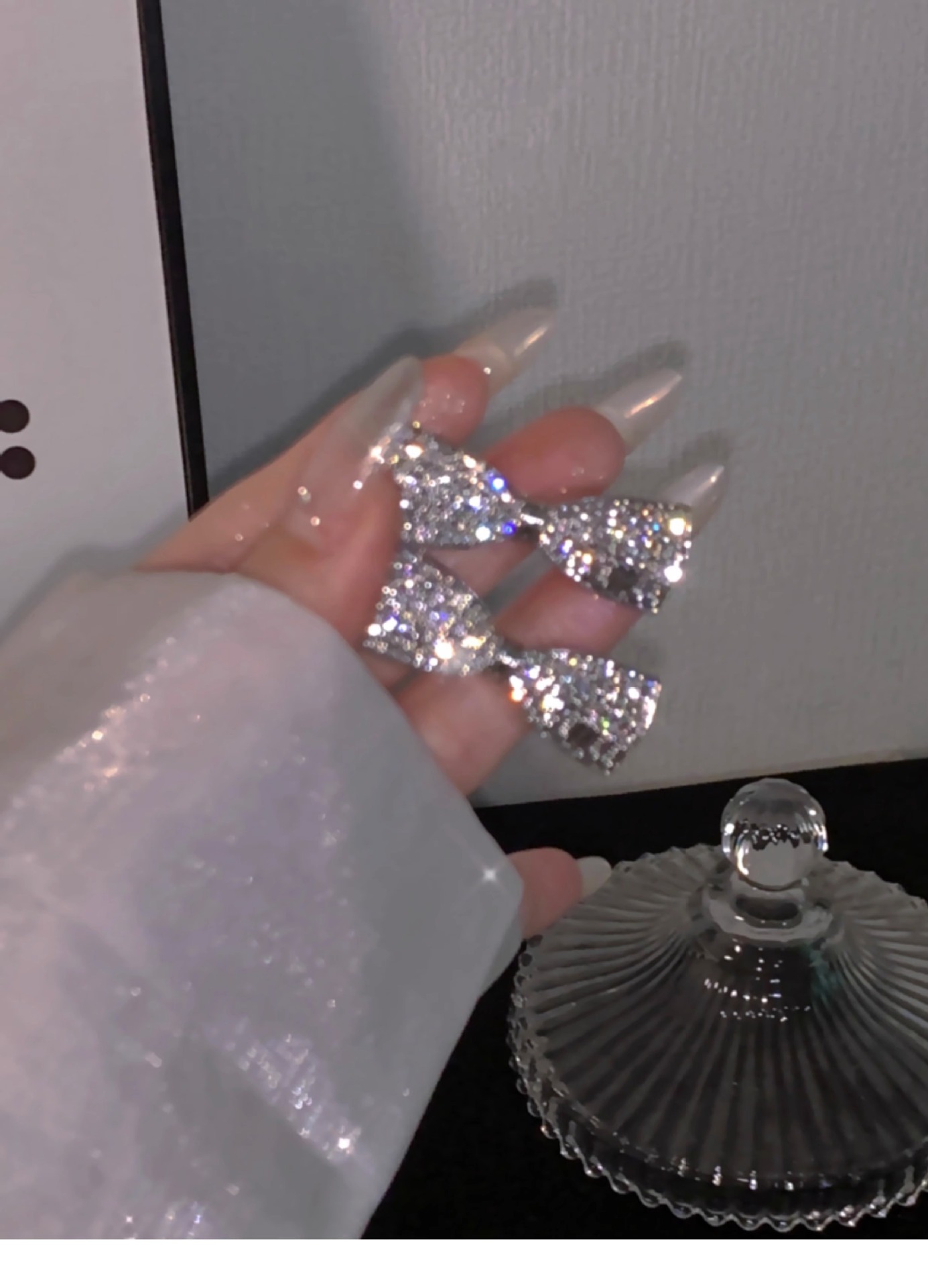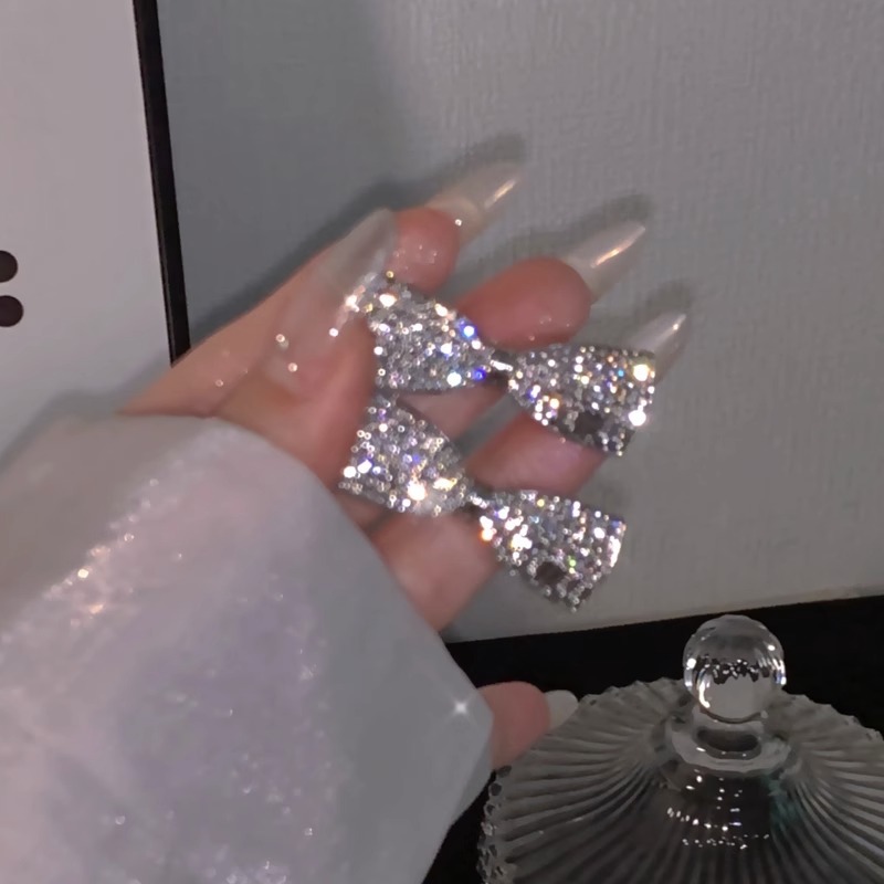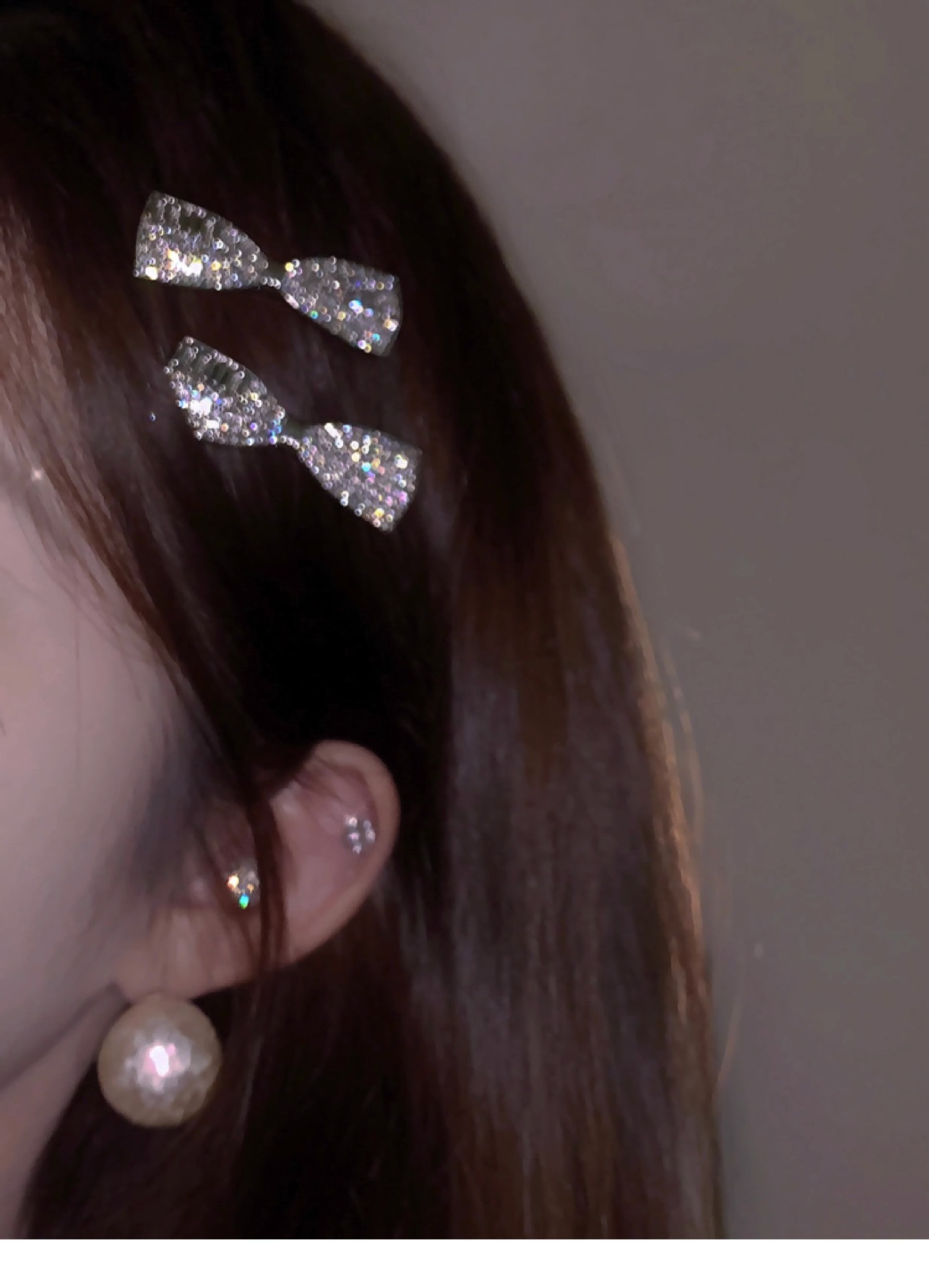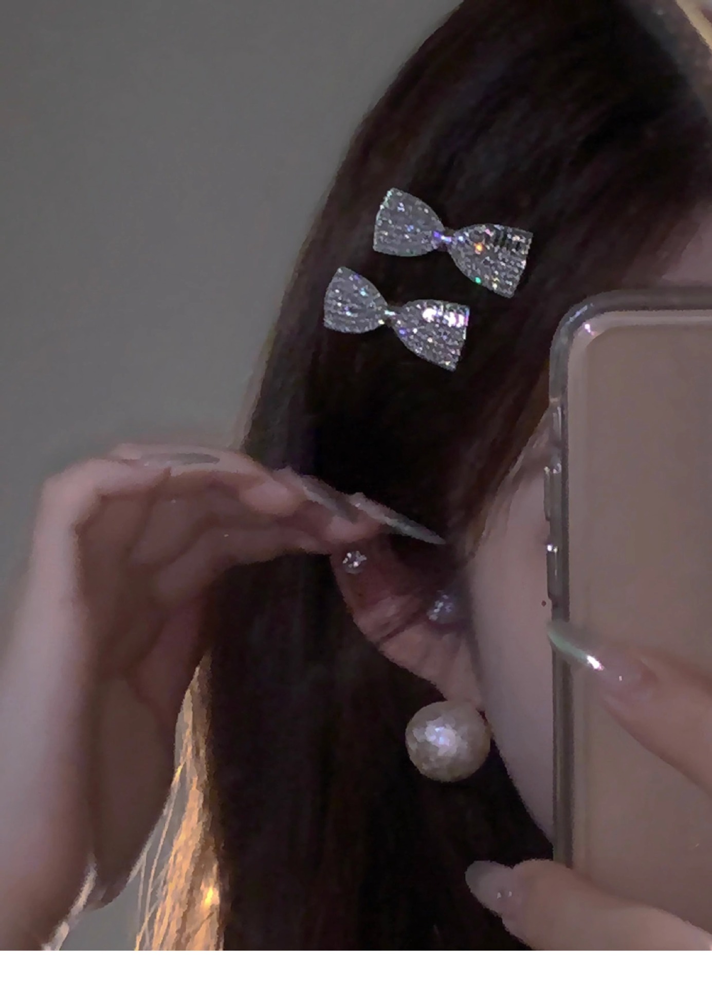在逃公主~闪钻蝴蝶结水钻发夹鸭嘴夹网红同款精致刘海侧边夹发卡