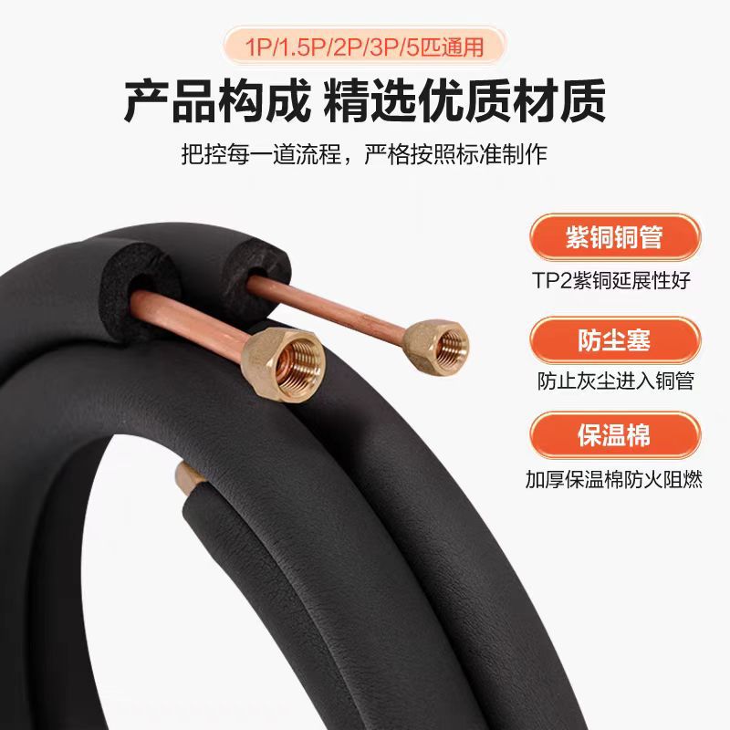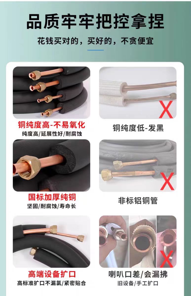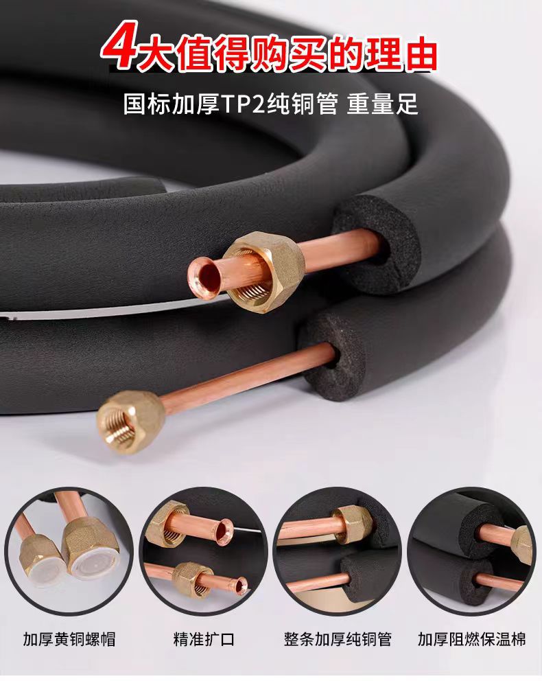 空调铜管纯紫铜连接管成品管加长延长管加厚大一匹1.5p2p免焊接管