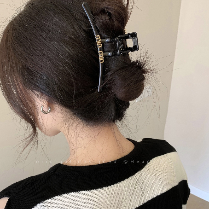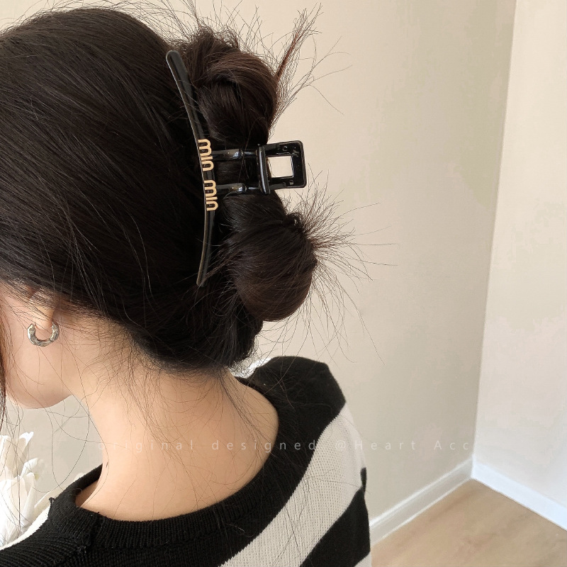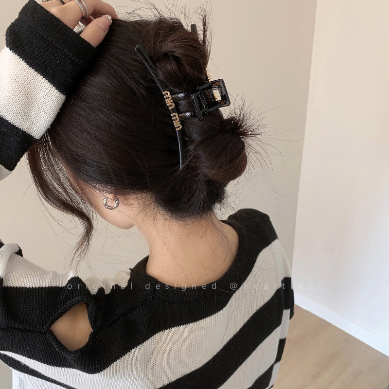 简约大号盘发抓夹发夹女黑色鲨鱼夹