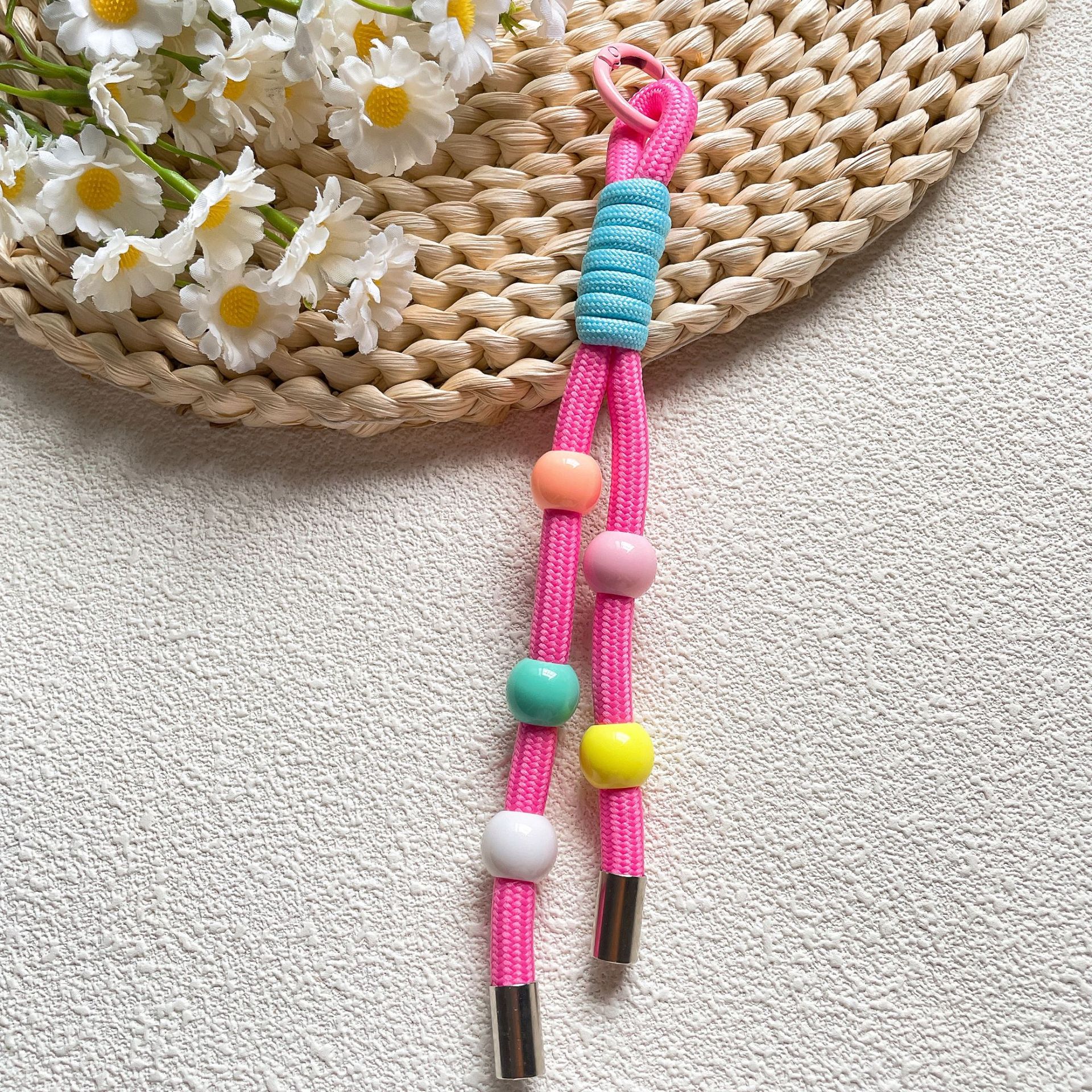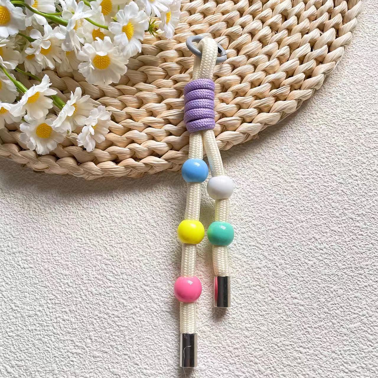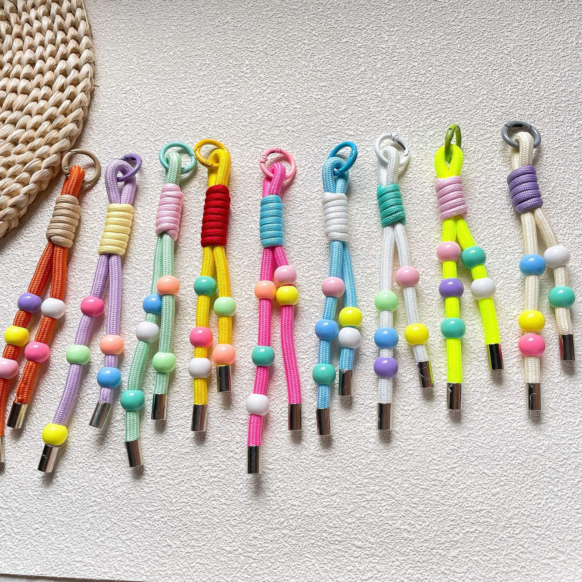 新款手工编织挂绳马卡龙DIY手机包挂件钥匙扣糖果色彩绳手机绳配