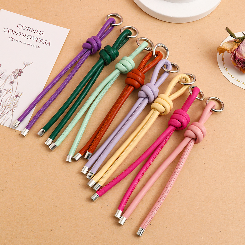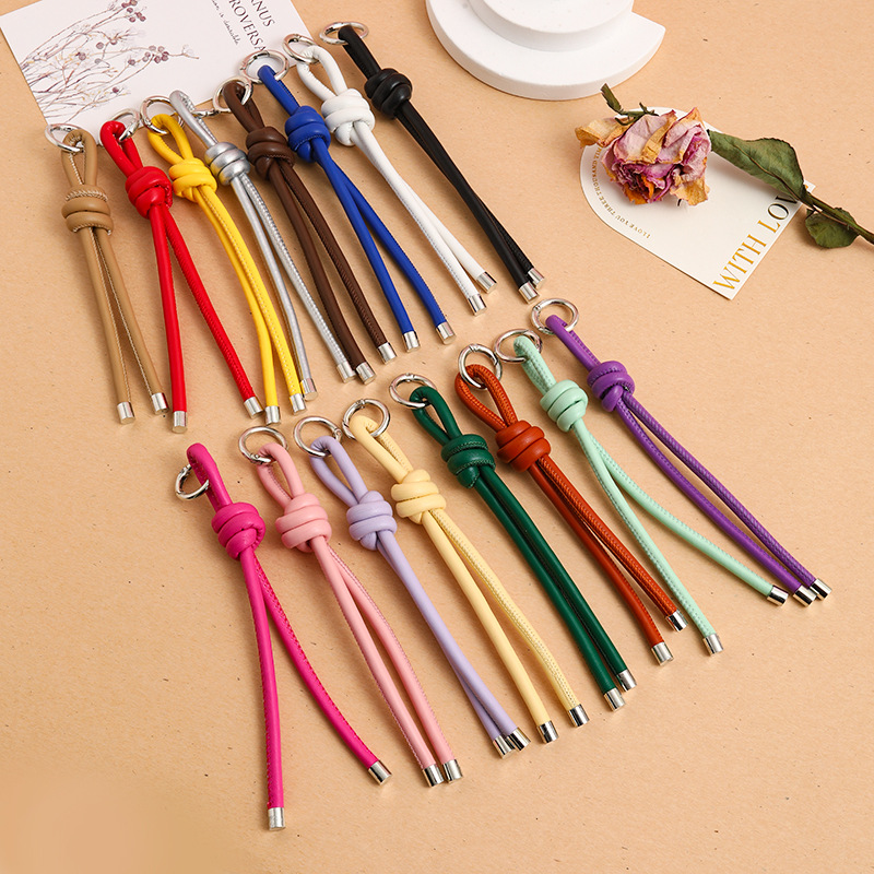 DIY手工编织皮绳钥匙扣挂件创意百搭包包挂饰配件多巴胺miu系挂绳