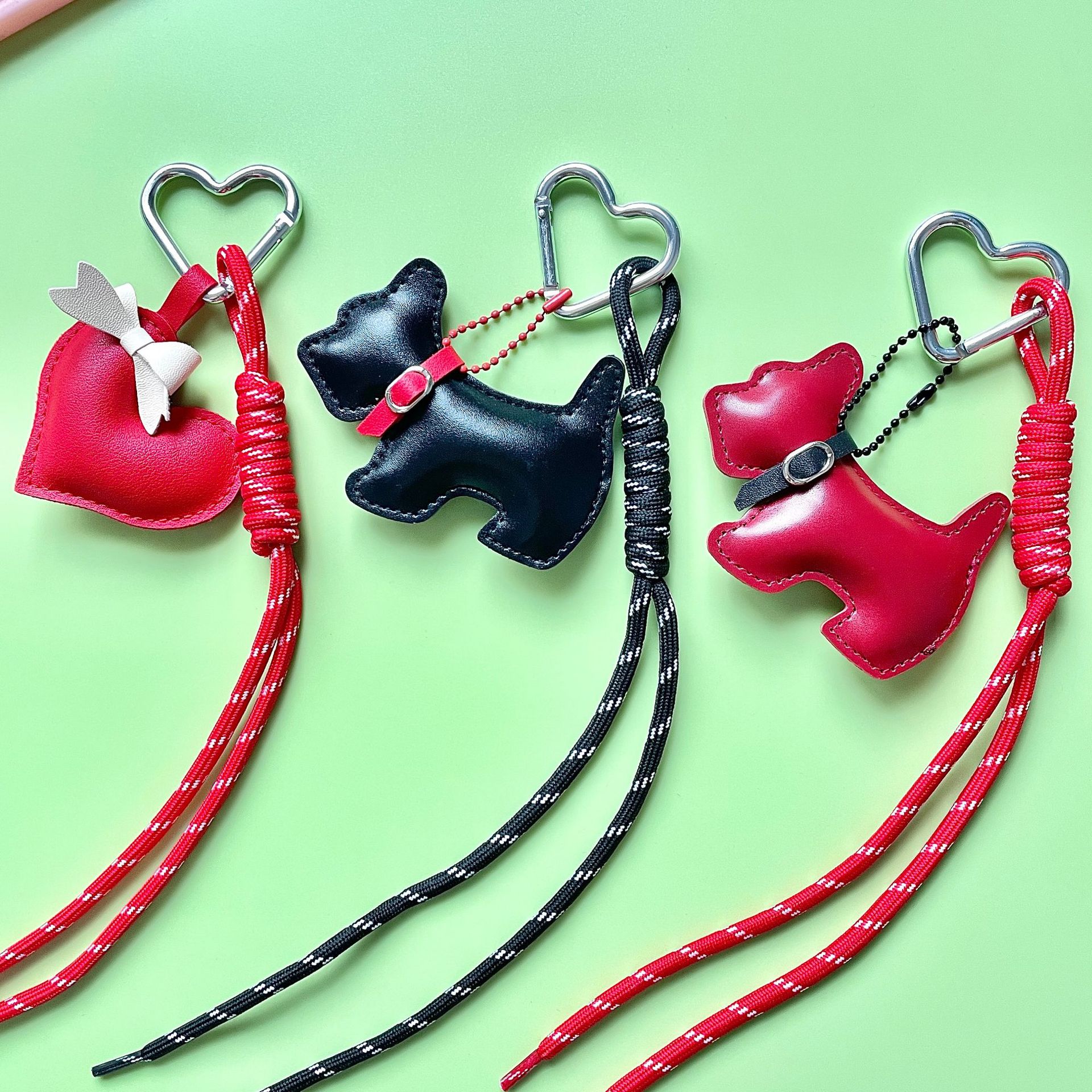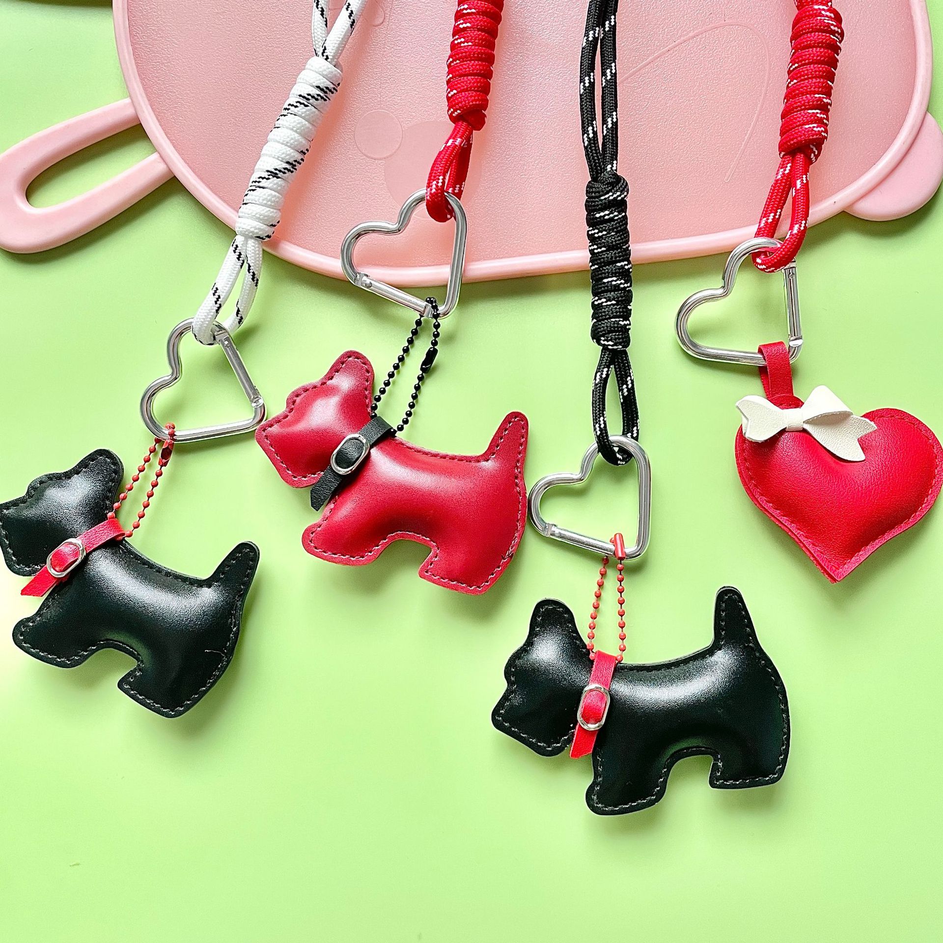 新款皮革腊肠狗包包挂饰 创意时尚编织绳 ins风钥匙扣书包挂饰品