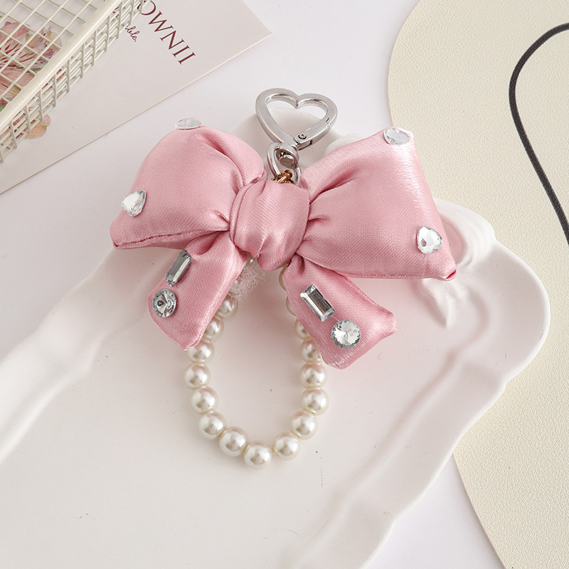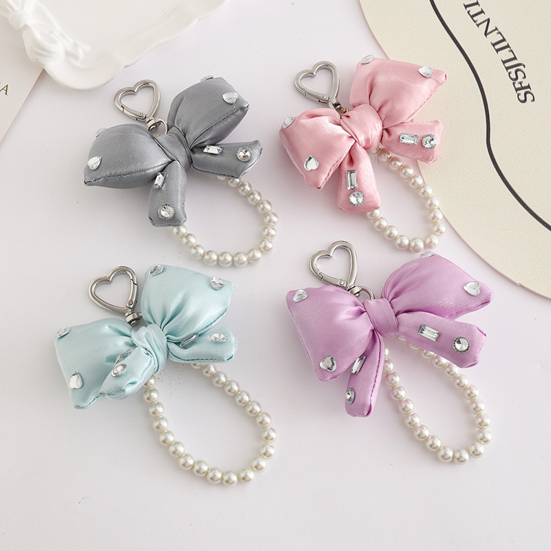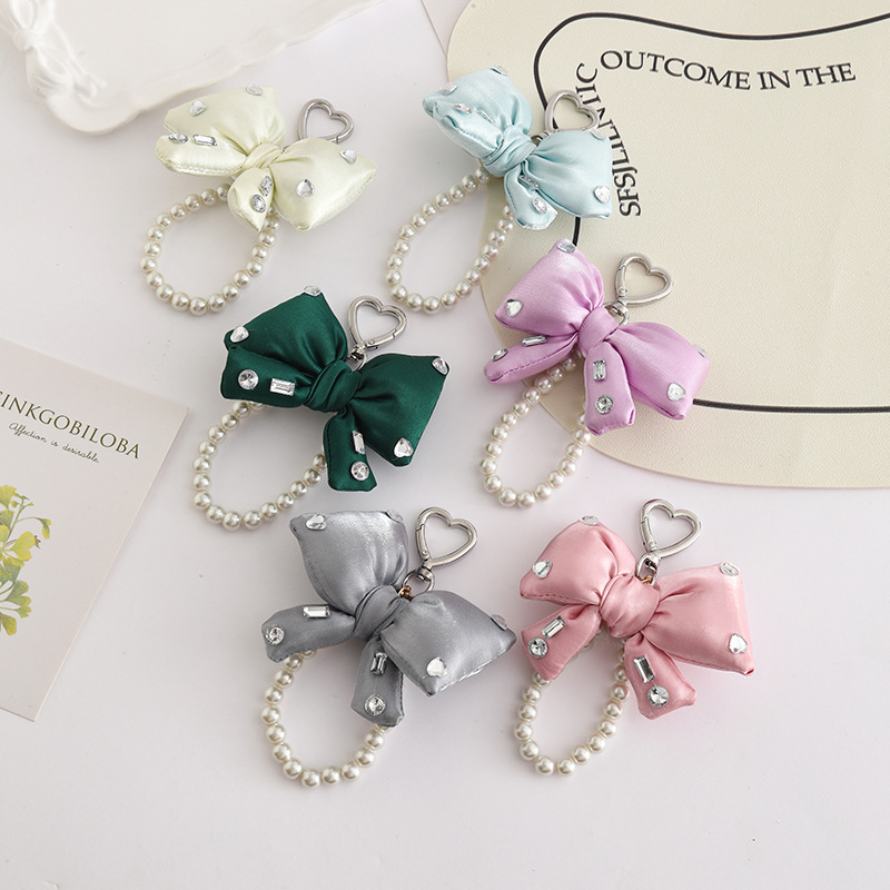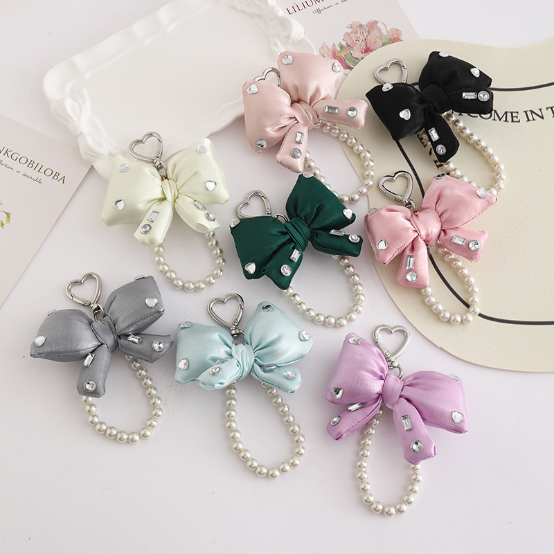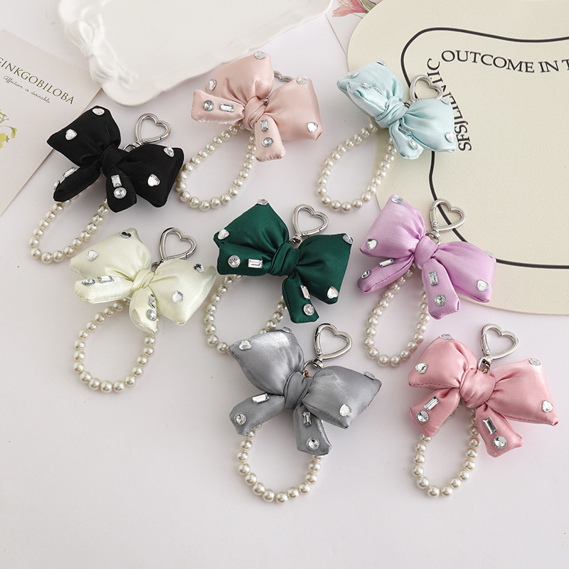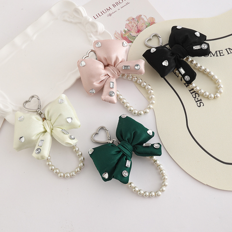 新款珍珠串蝴蝶结闪亮钻石立体填充彩色手机挂饰小众包包钥匙挂件