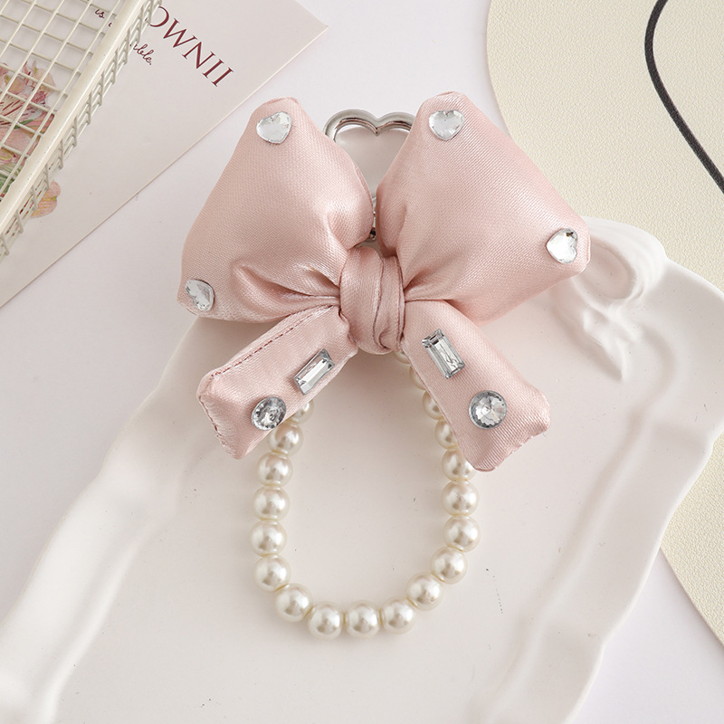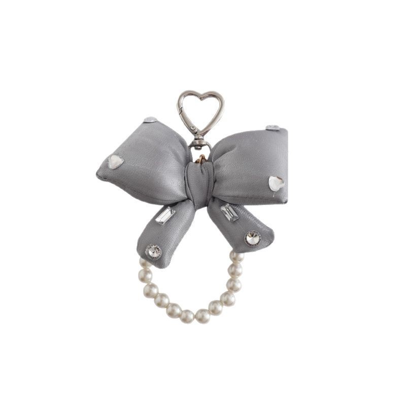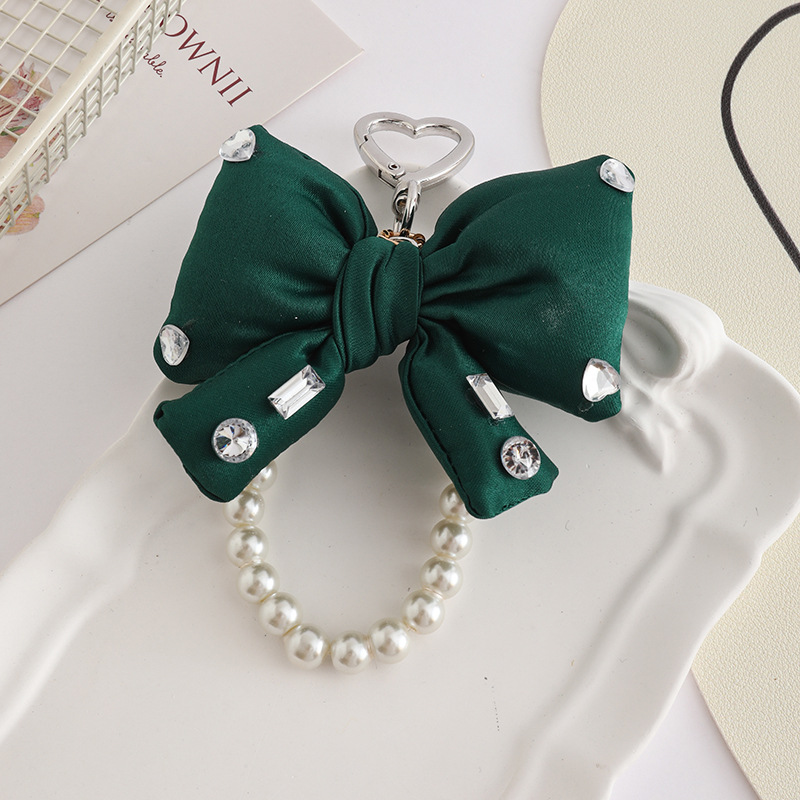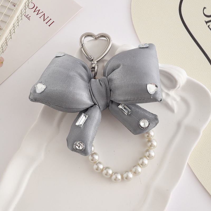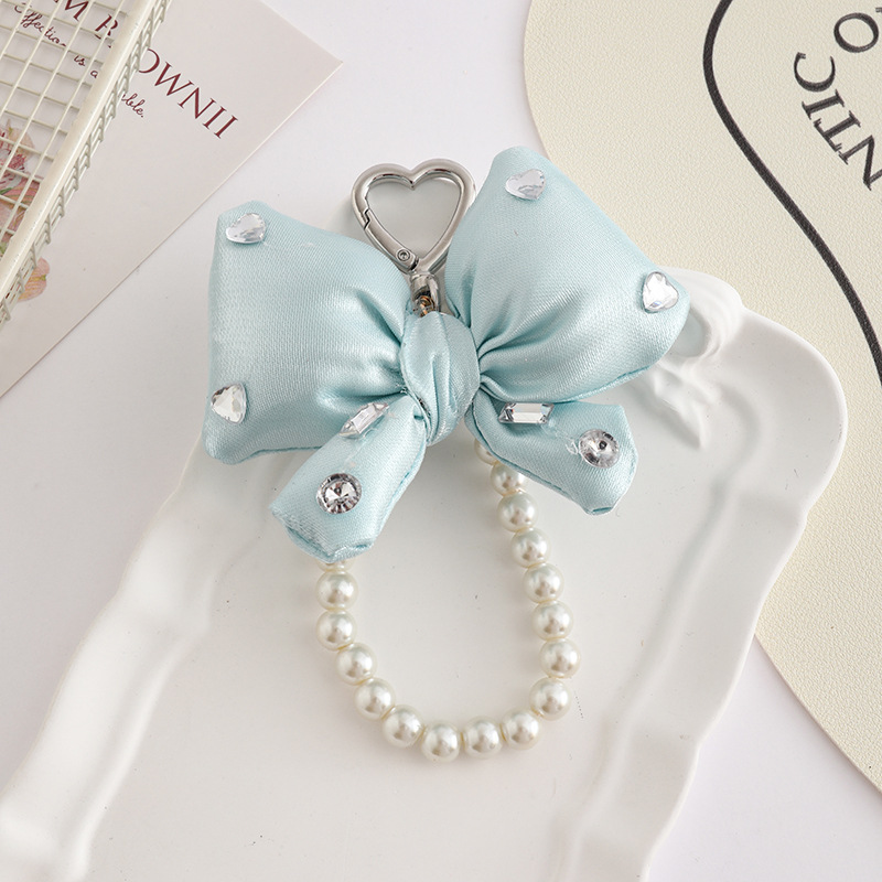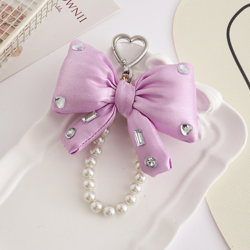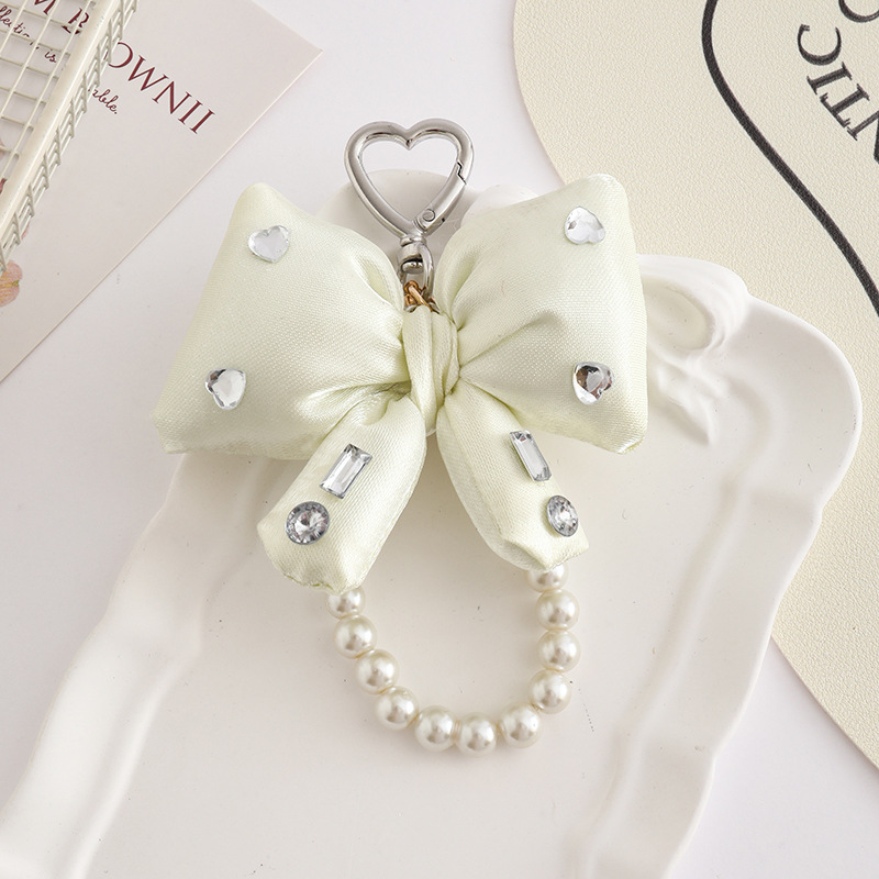 新款珍珠串蝴蝶结闪亮钻石立体填充彩色手机挂饰小众包包钥匙挂件