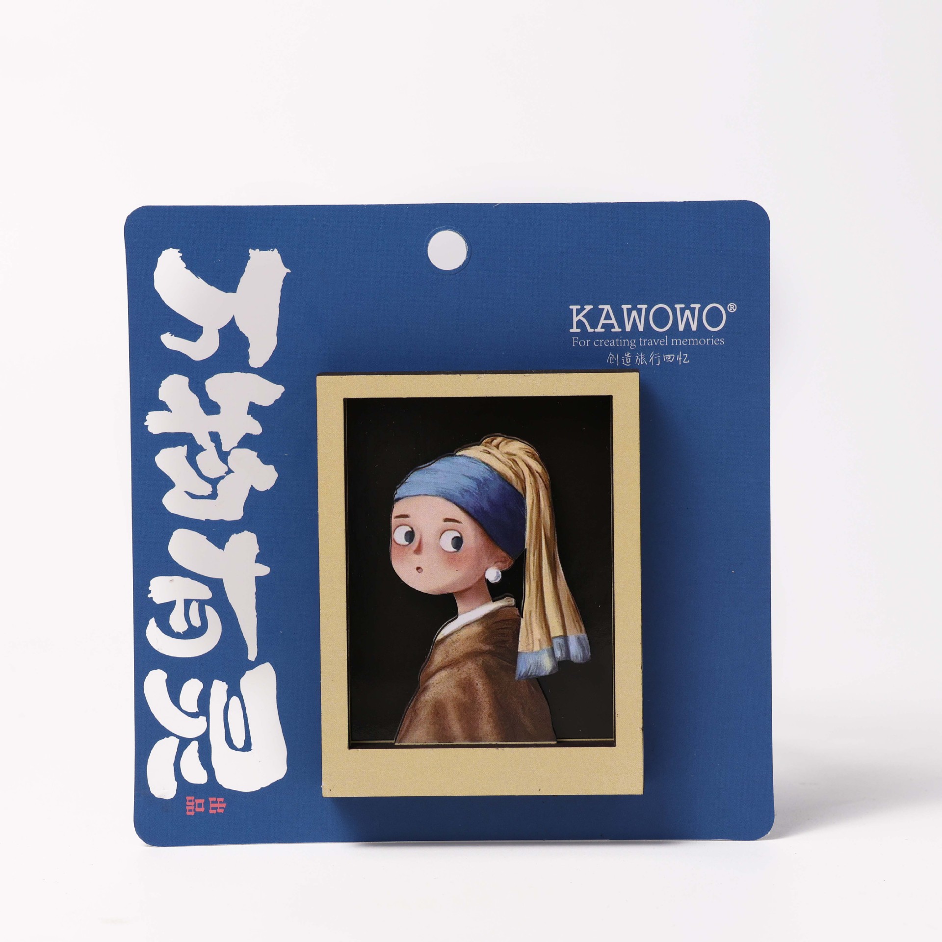 萌版蒙娜丽莎戴珍珠耳环少女世界名画冰箱贴婚礼冰箱磁性装饰贴