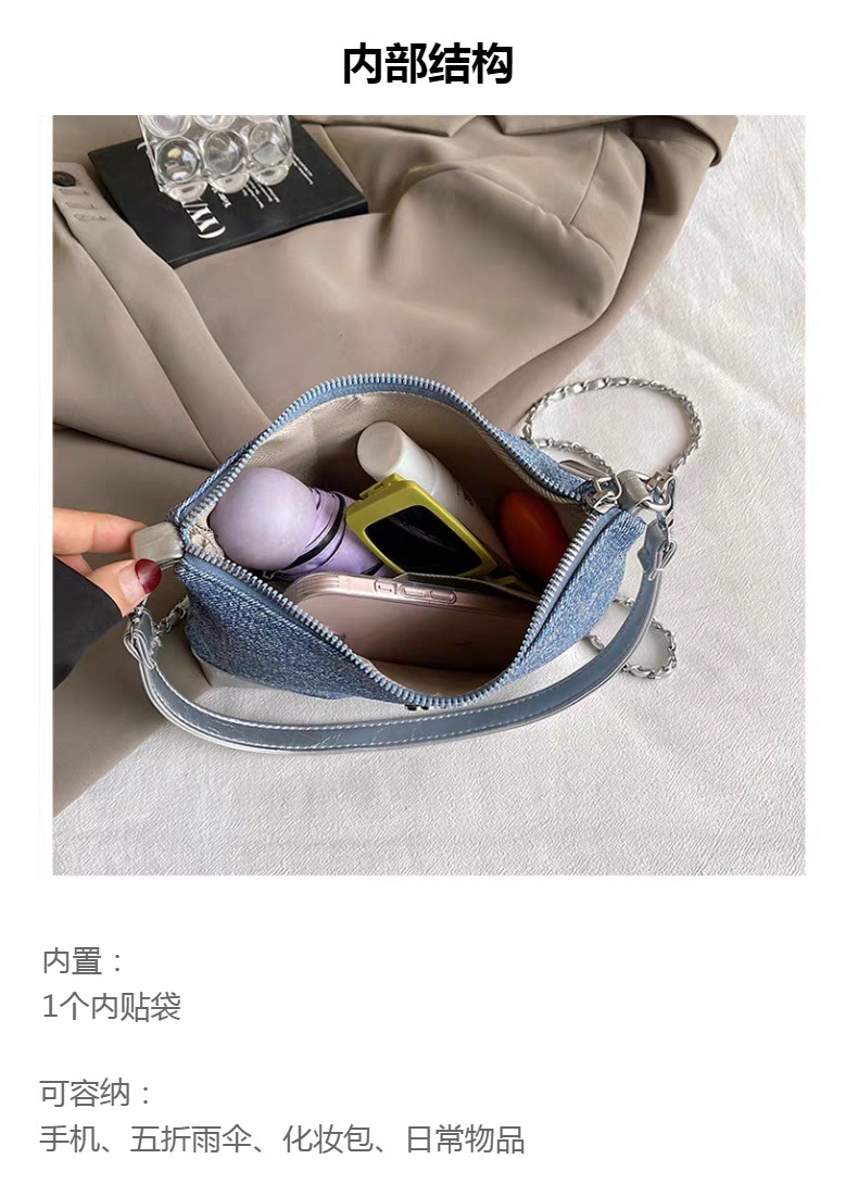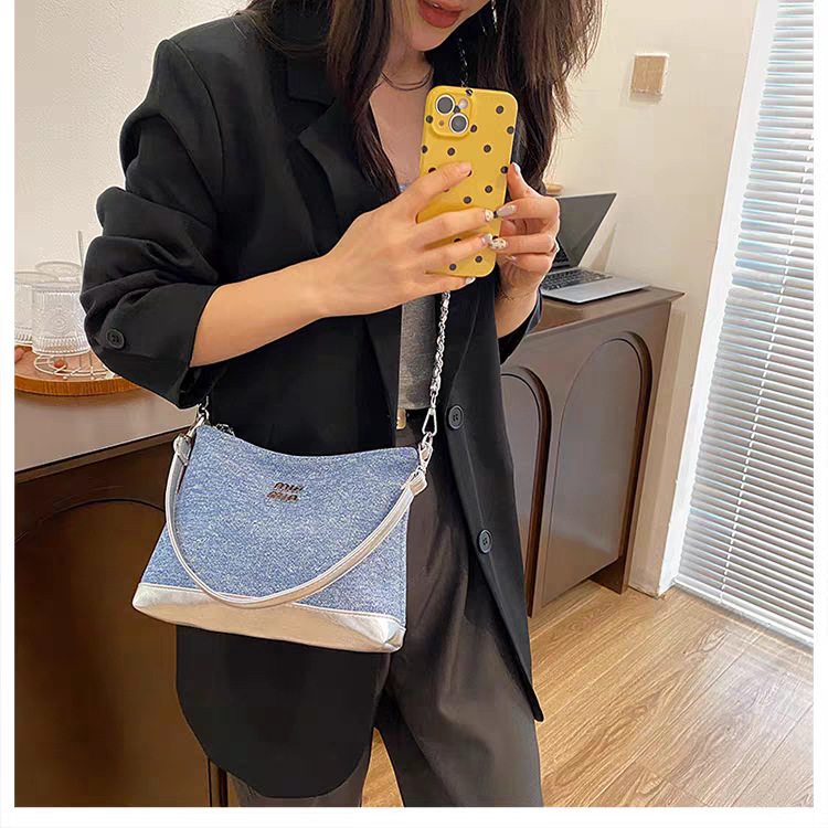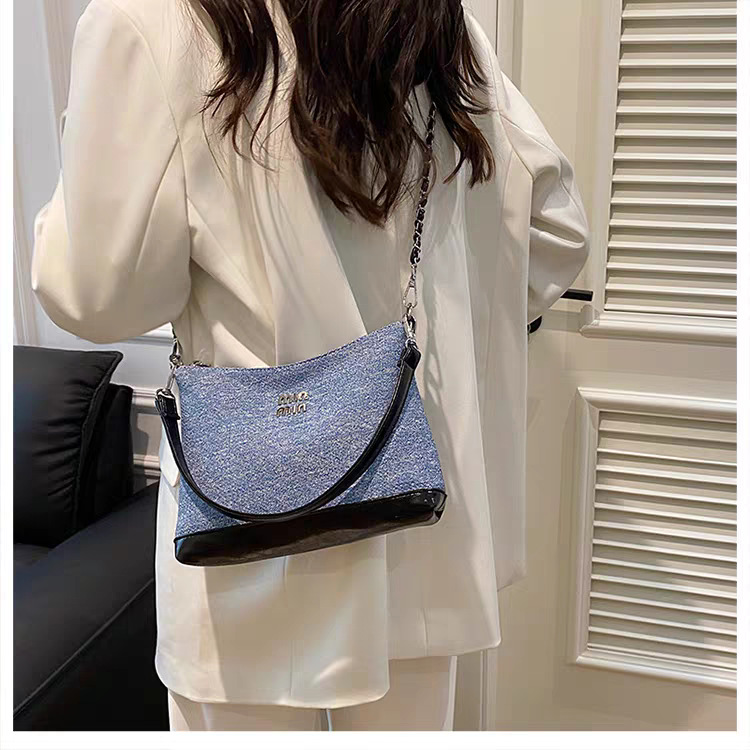 牛仔布单肩包女2025春夏新款复古链条腋下包包时尚百搭托特斜挎包
