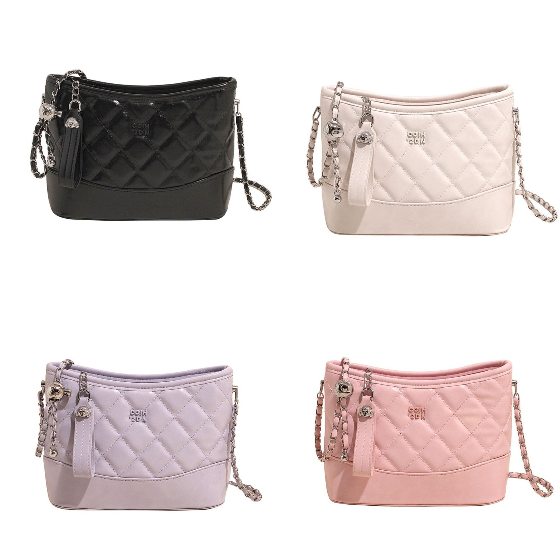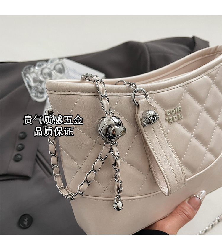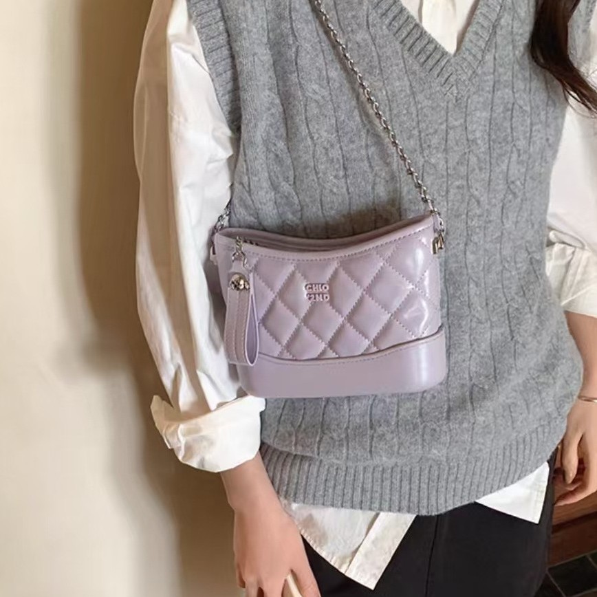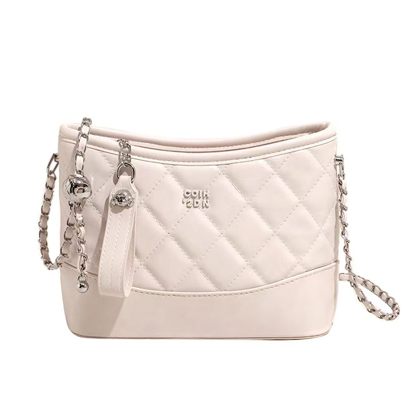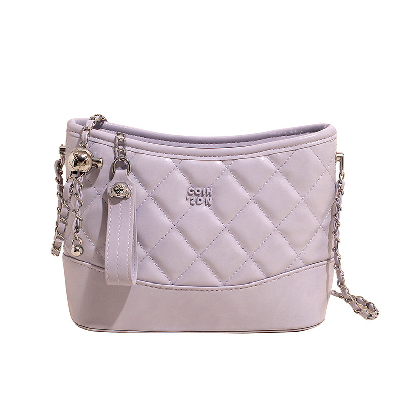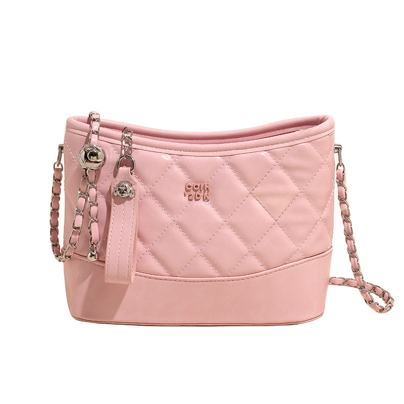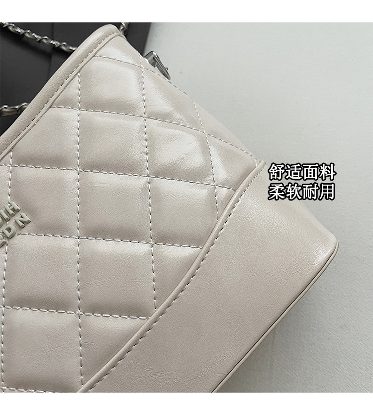 时尚通勤感百搭斜挎包流行温柔小香风菱格链条水桶包女士单肩包包