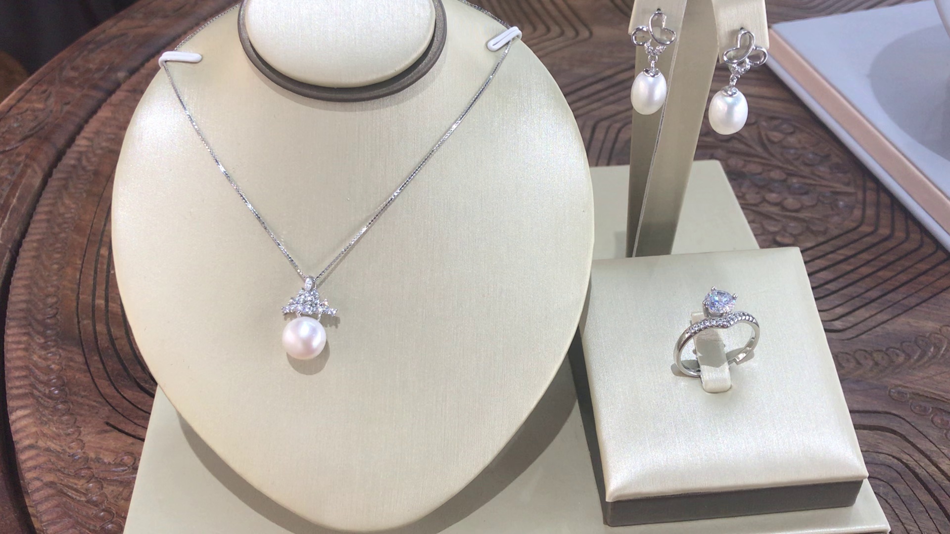 珍珠饰品套装#项链#耳环#戒指#银镶嵌