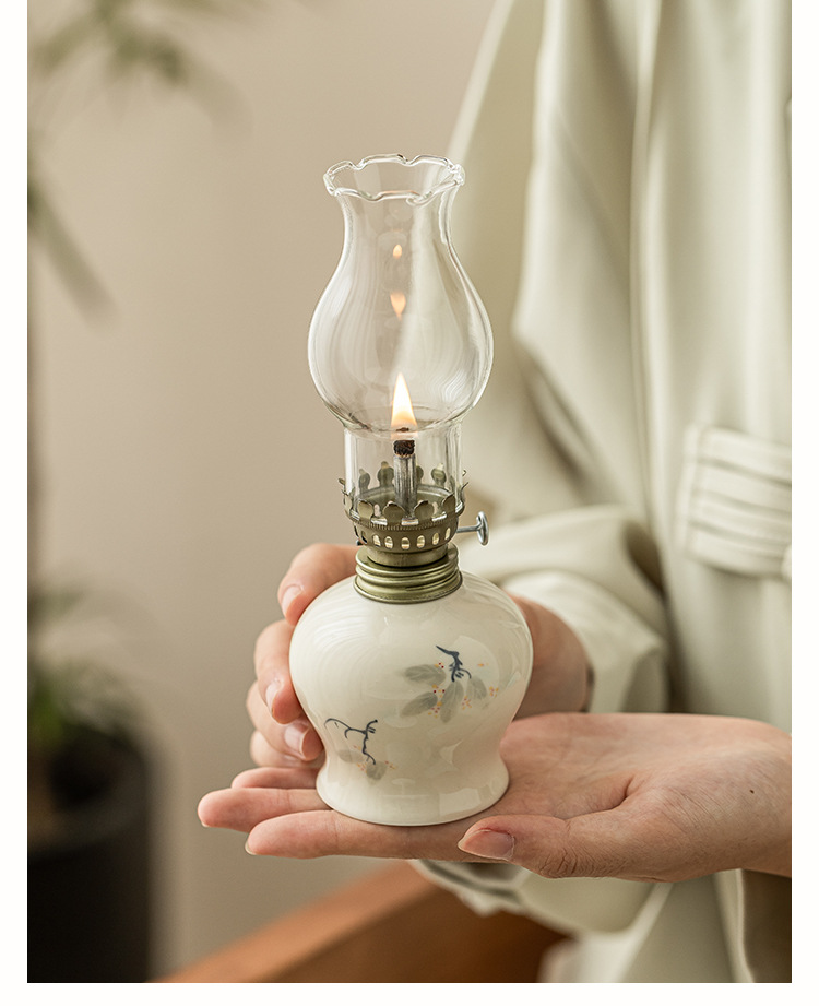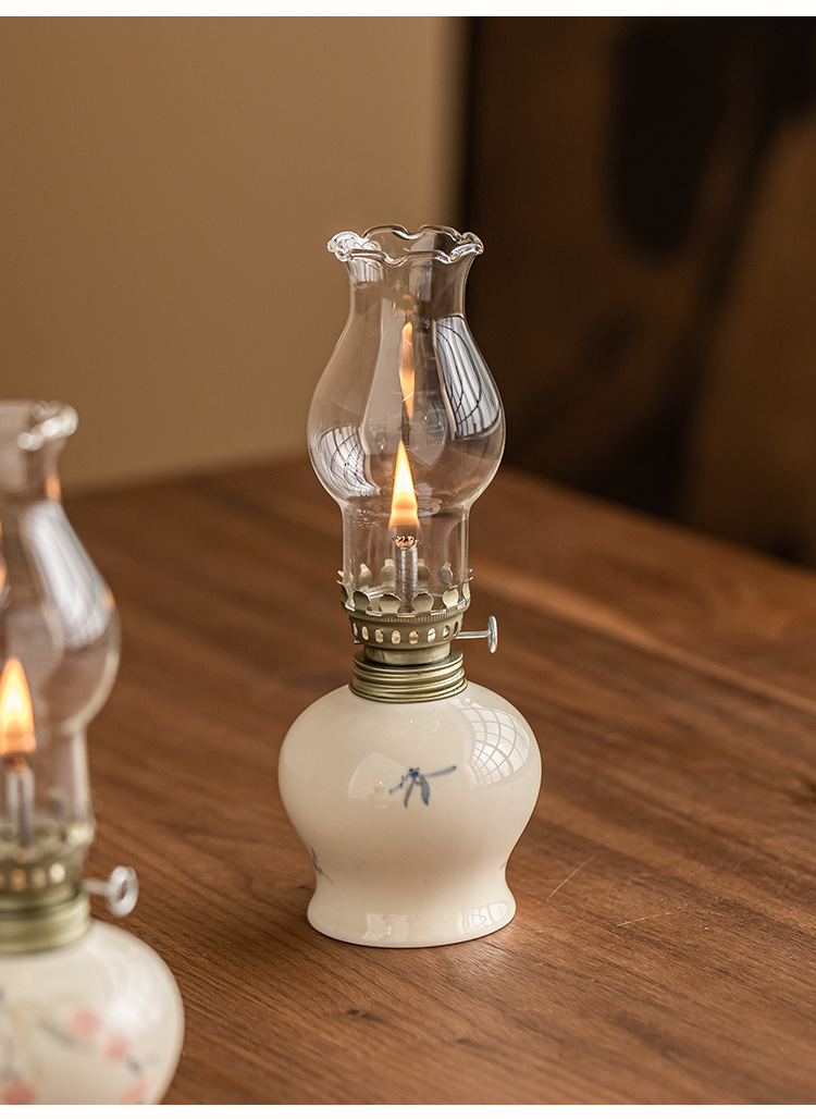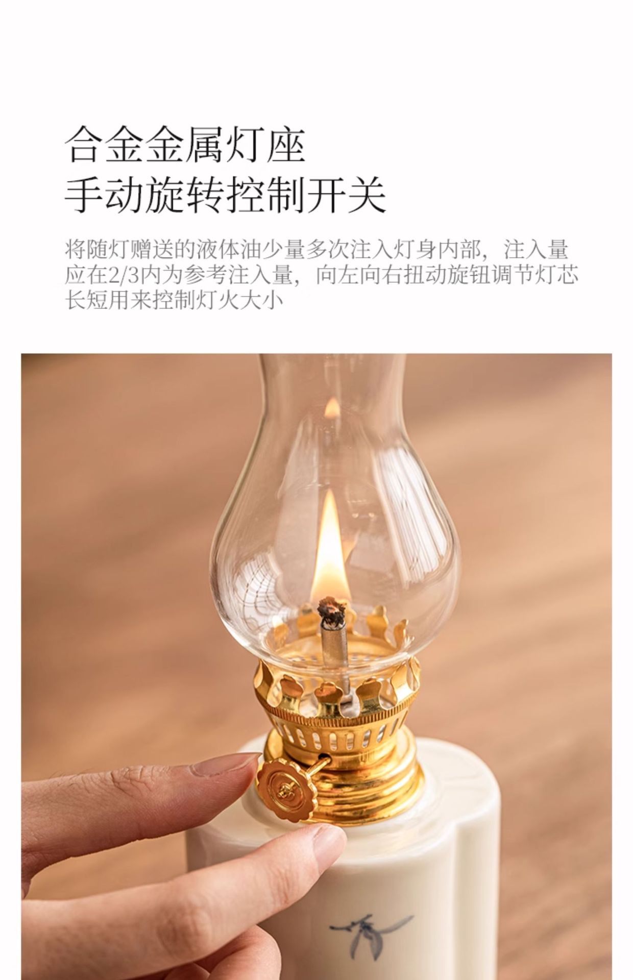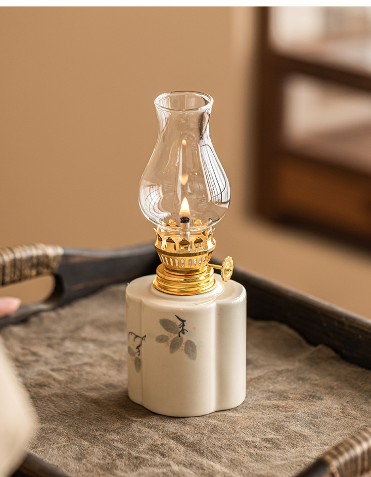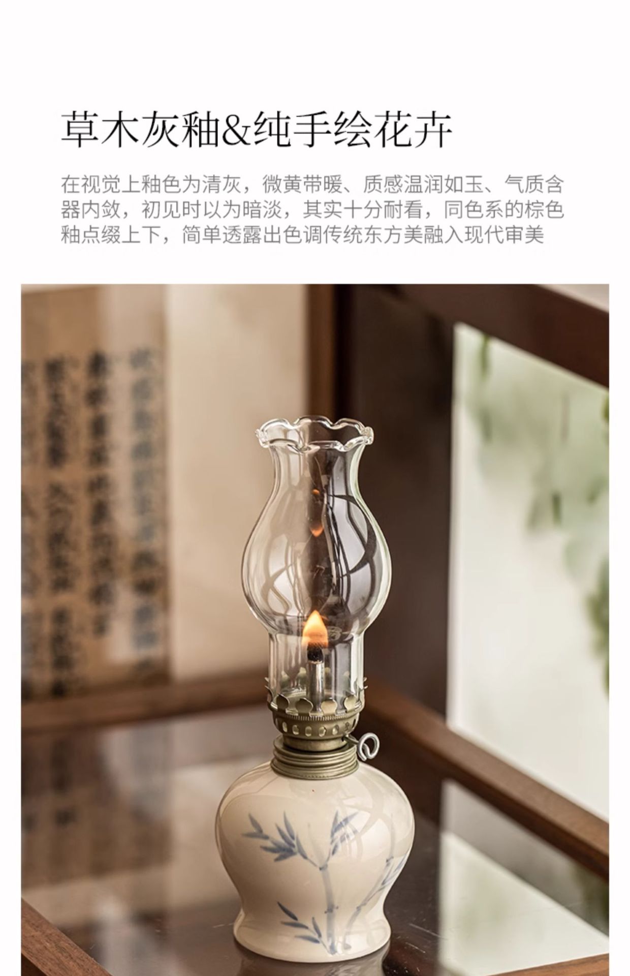 手绘花卉复古煤油灯陶瓷酥油灯灯盏新中式书房卧室小夜灯灯具摆件