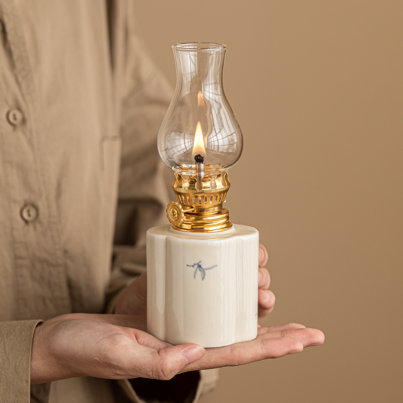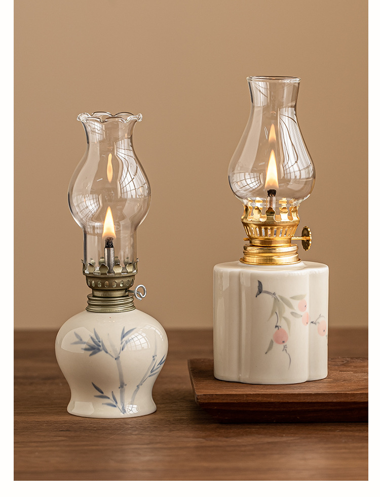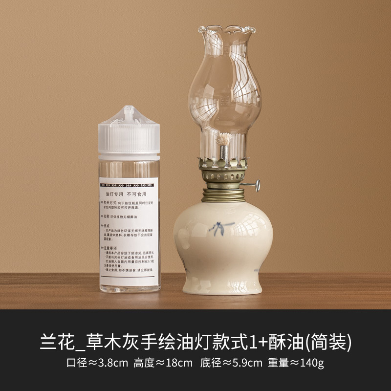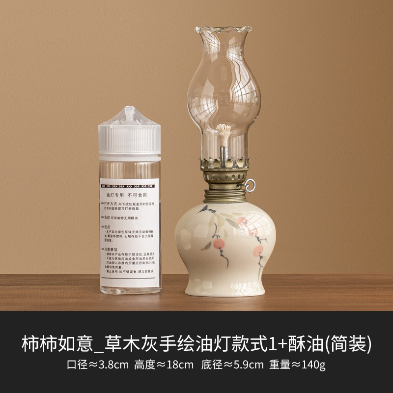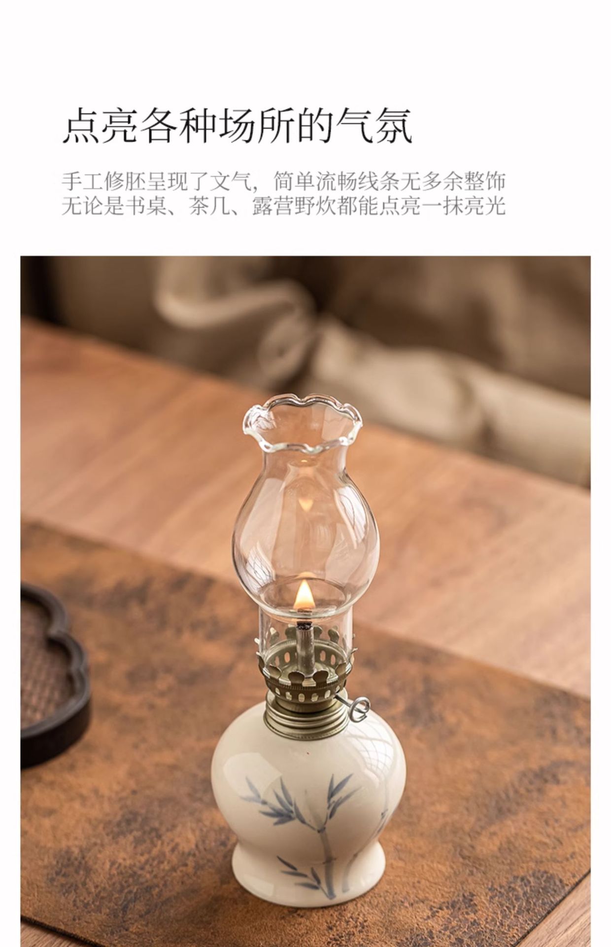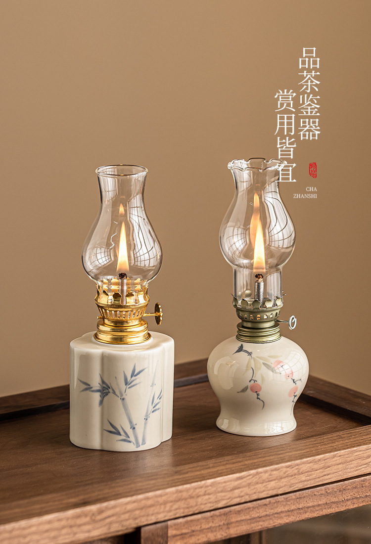 手绘花卉复古煤油灯陶瓷酥油灯灯盏新中式书房卧室小夜灯灯具摆件