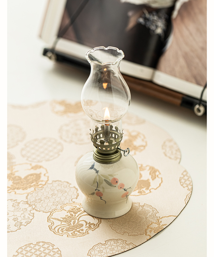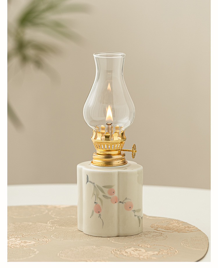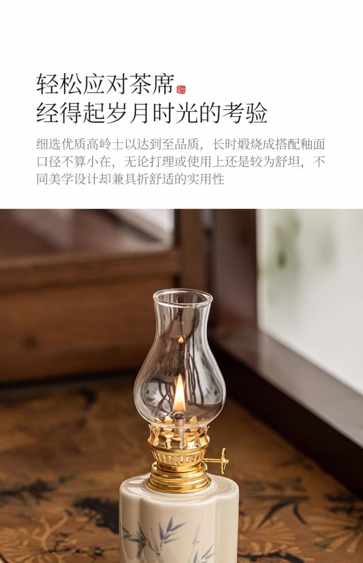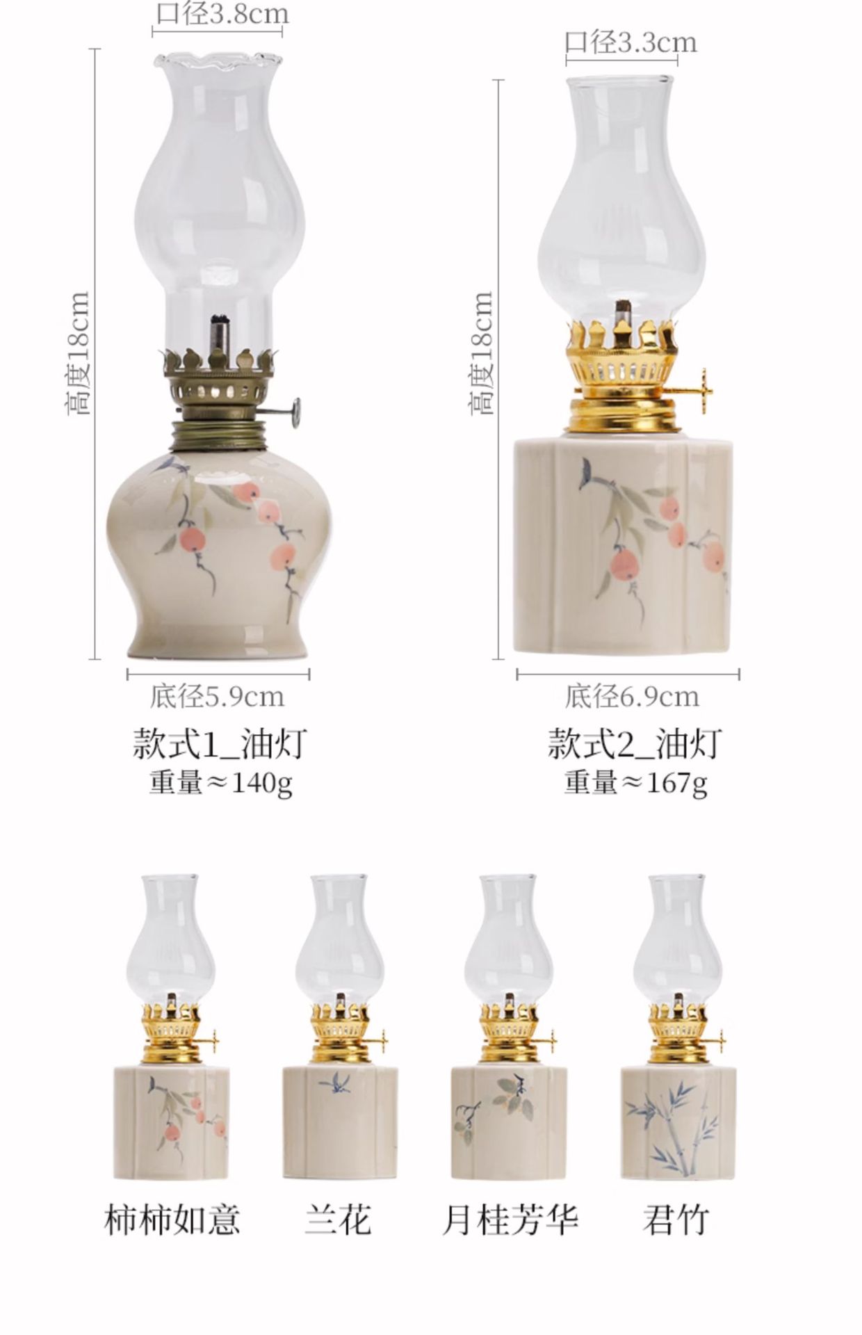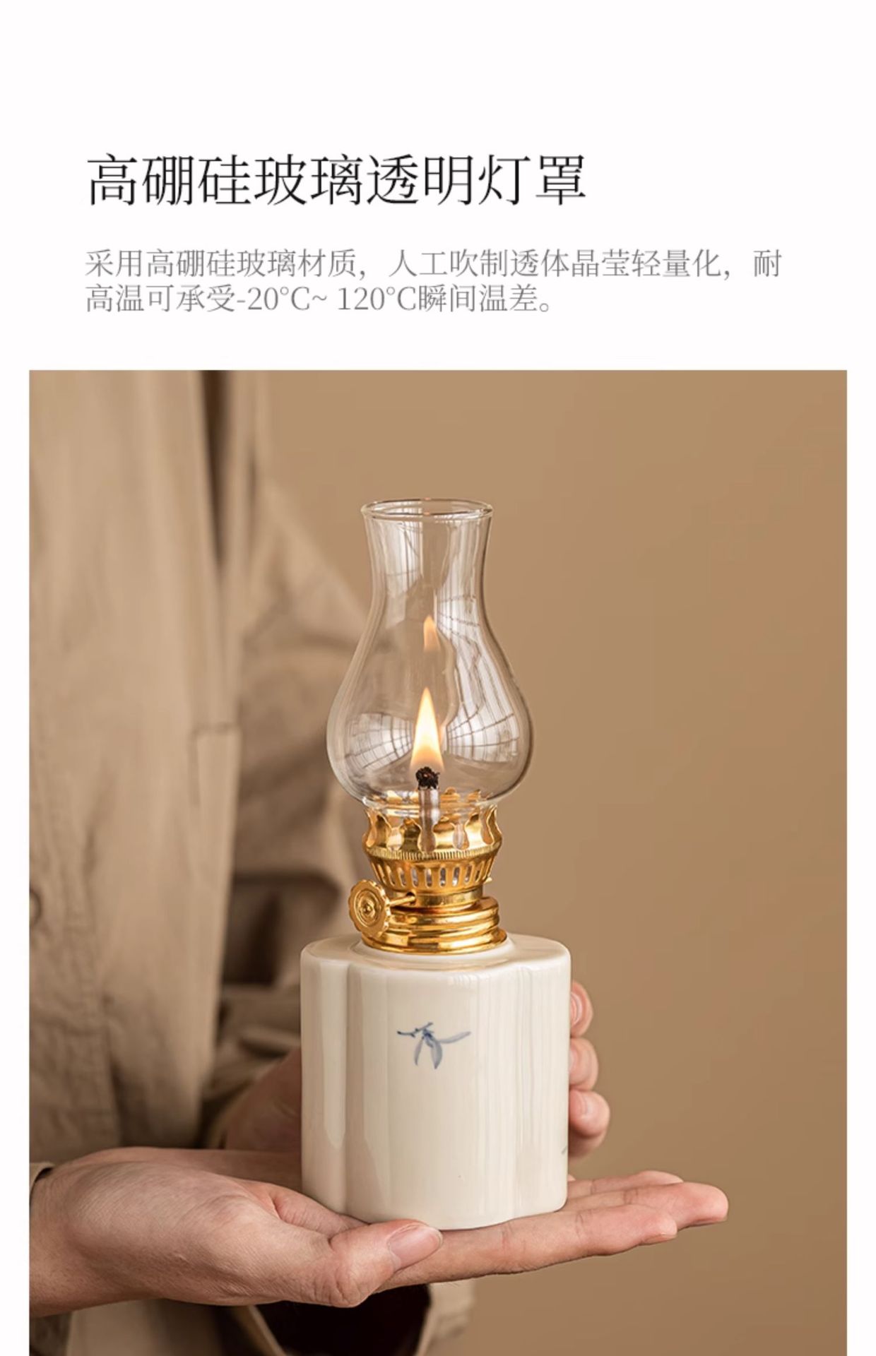 手绘花卉复古煤油灯陶瓷酥油灯灯盏新中式书房卧室小夜灯灯具摆件