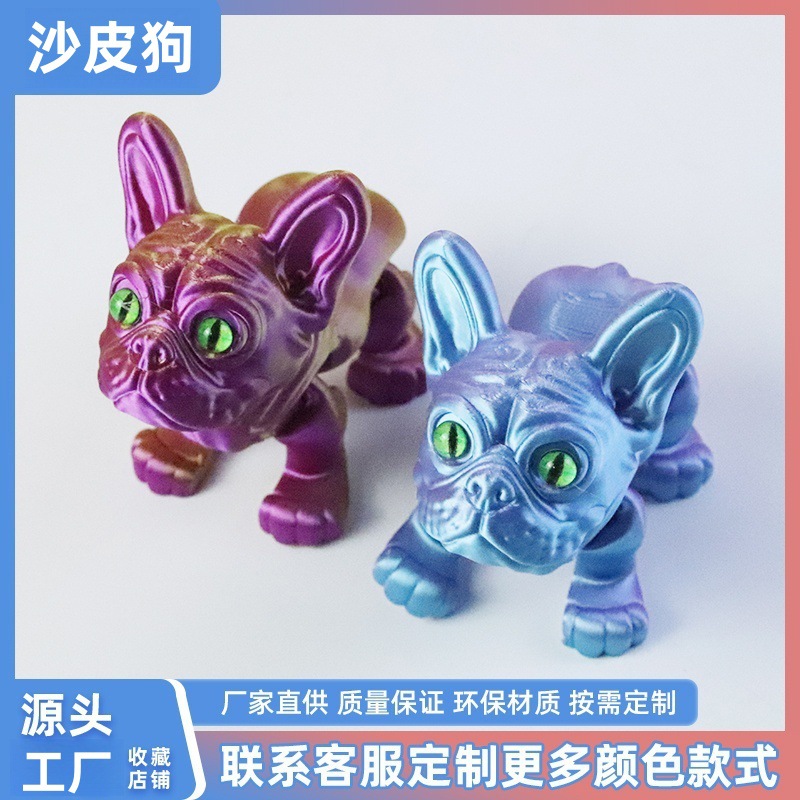 跨境3d打印小狗关节可动的沙皮狗3d打印的玩具手办可爱装饰摆件