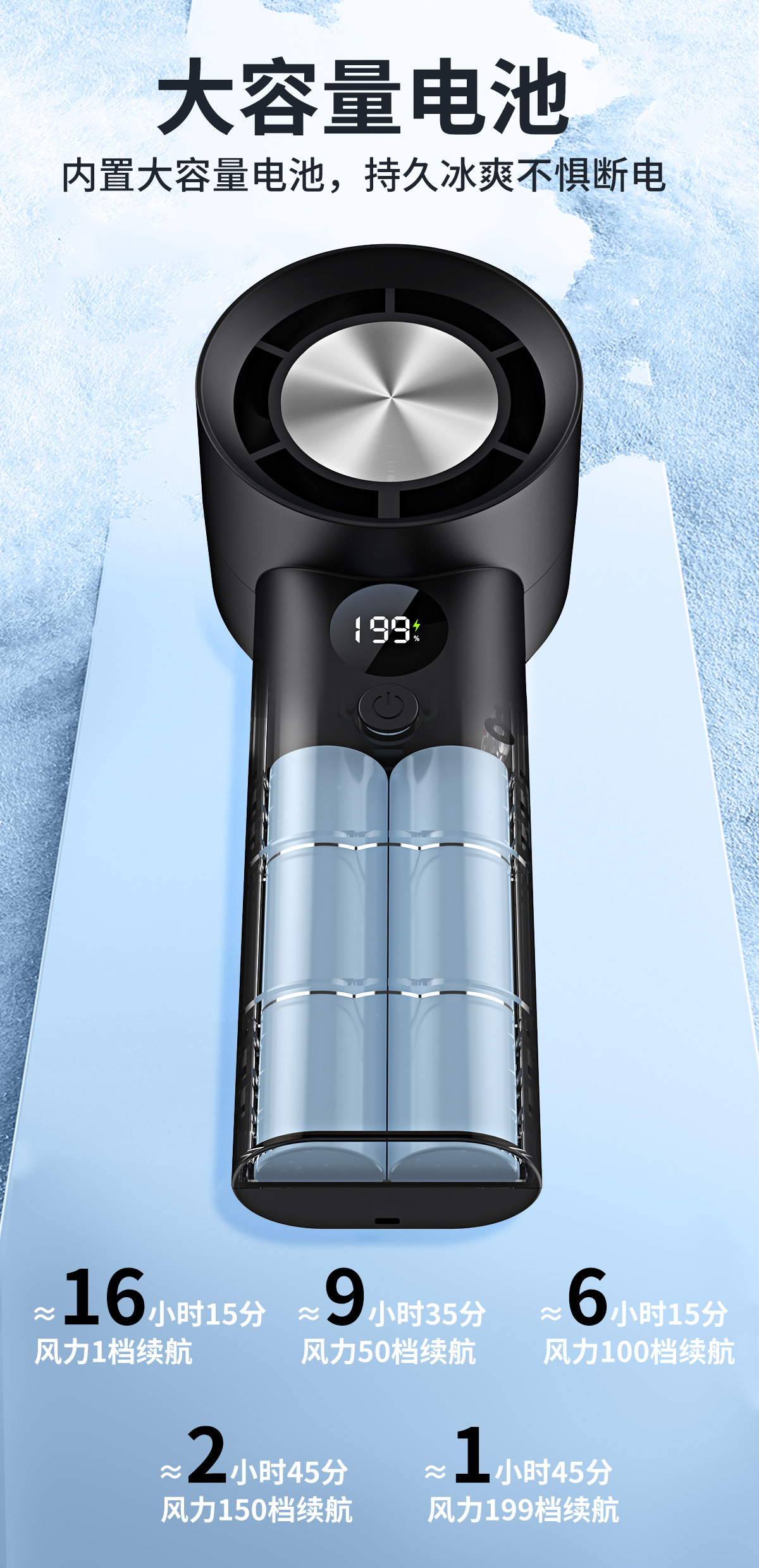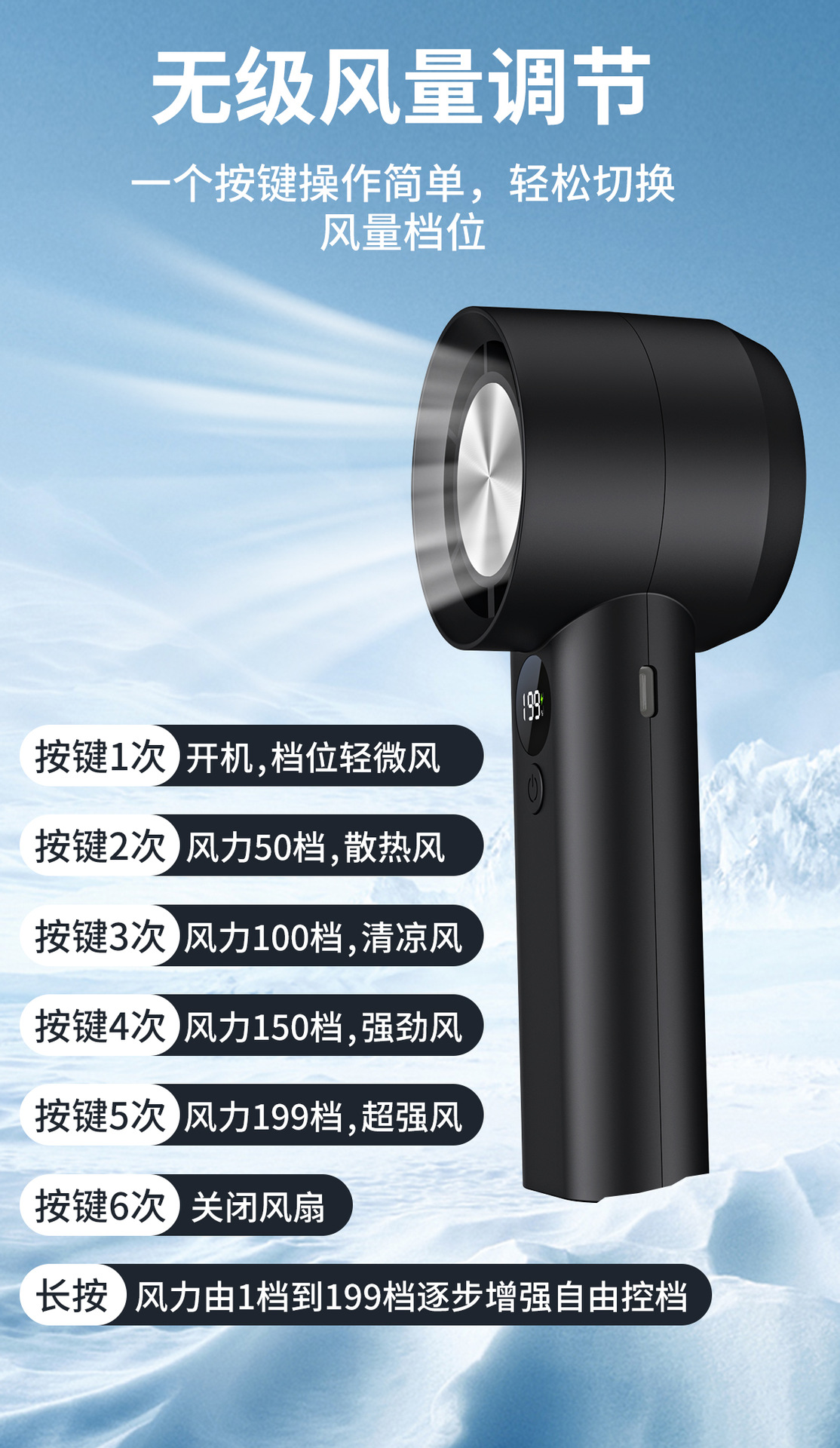 暴力涡轮199档高速户外手持冰敷电风扇充电飓风迷你usb随身风扇