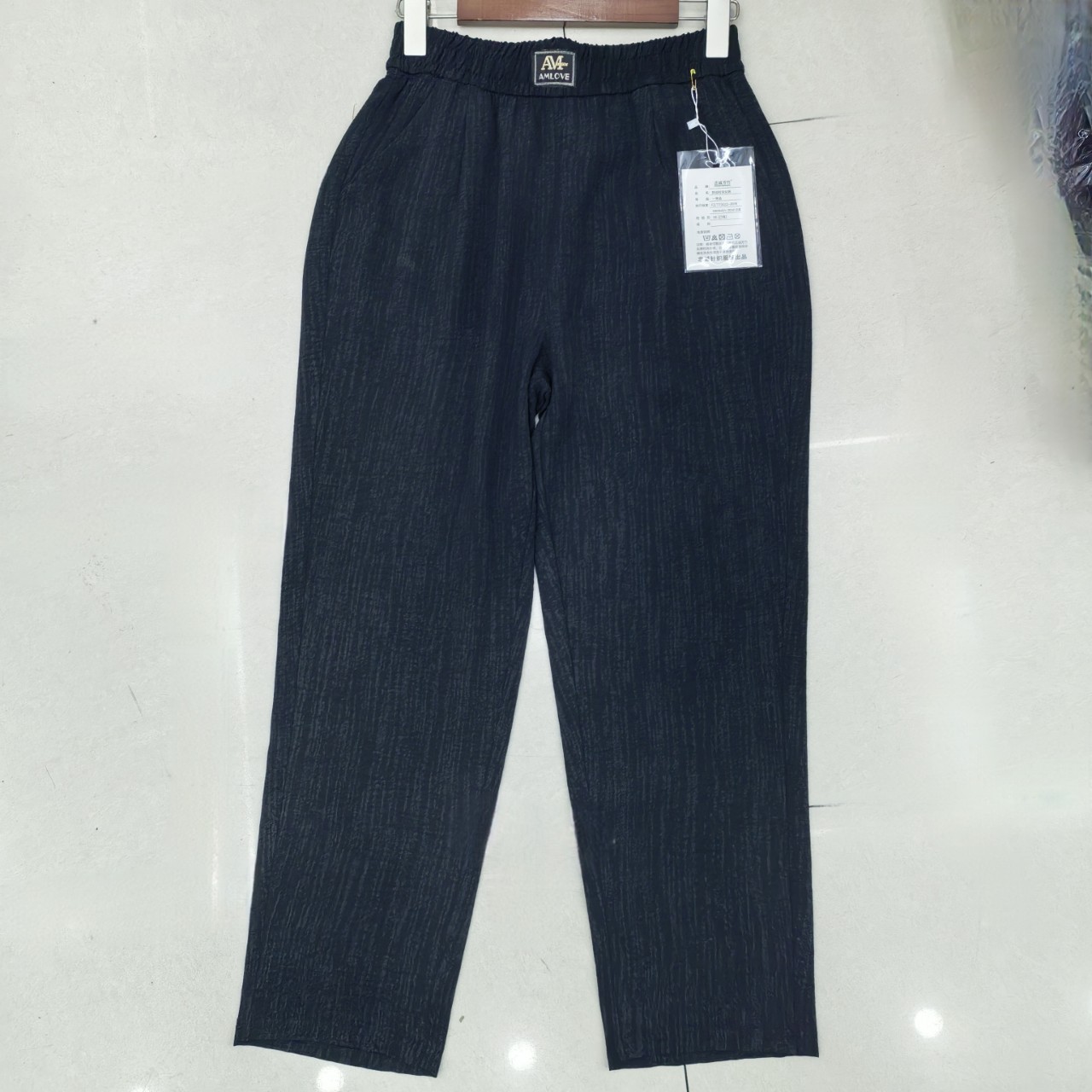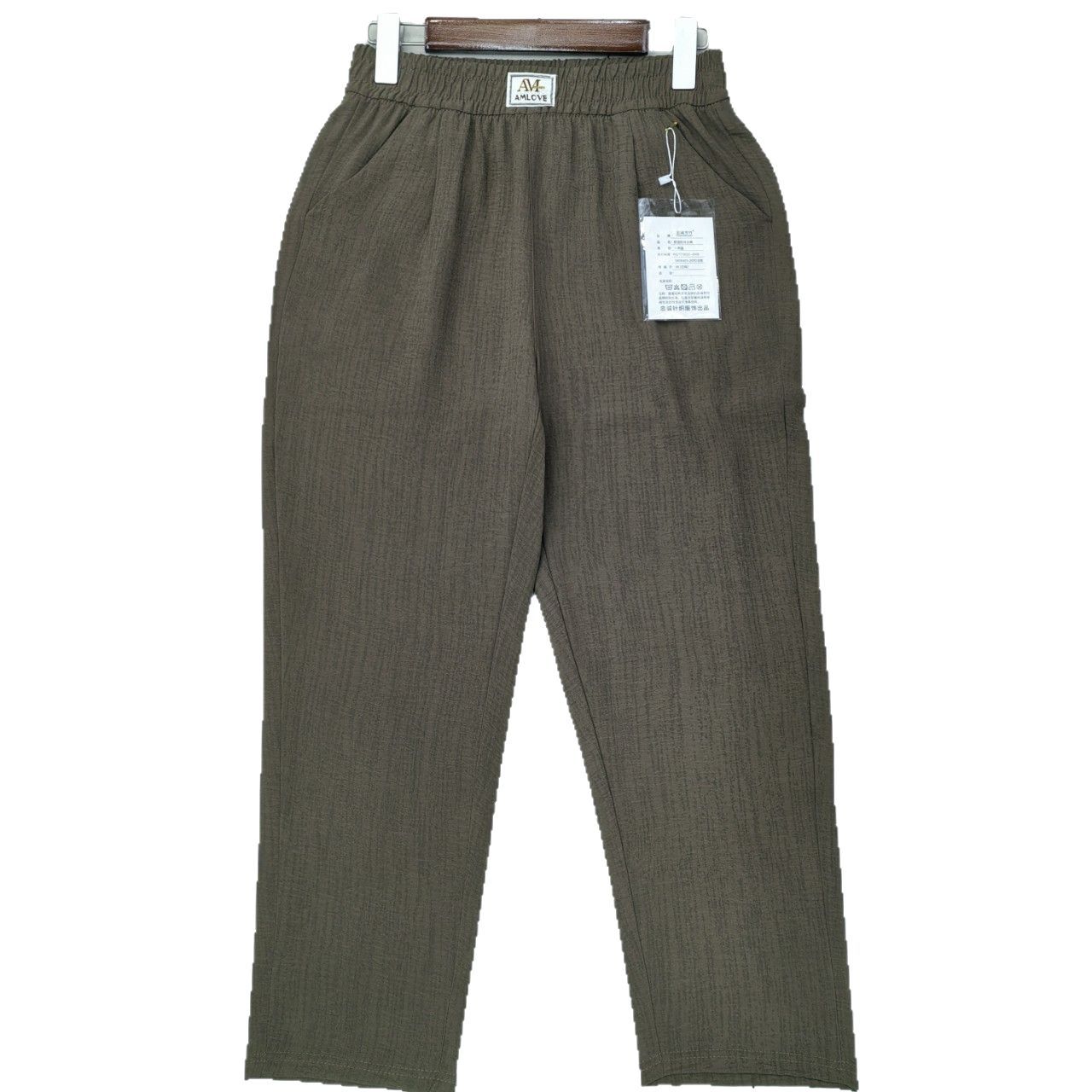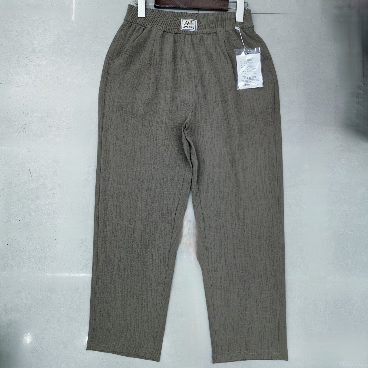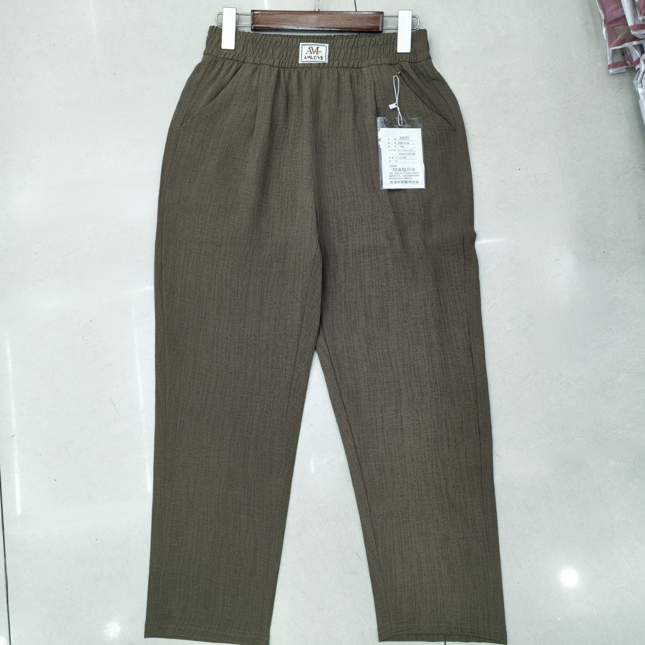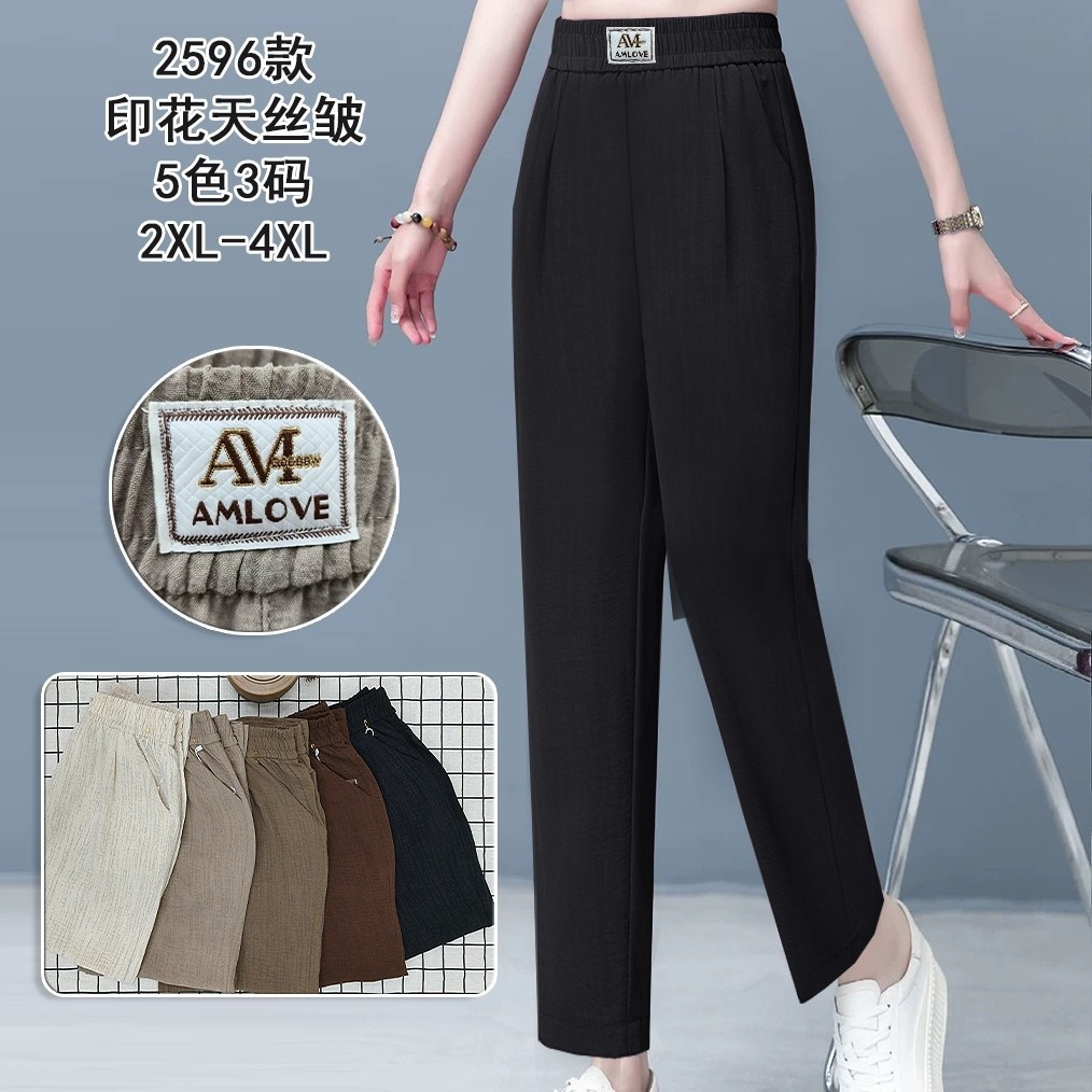 夏季冰丝裤印花天丝皱九分高腰显瘦裤子松紧哈伦休闲女裤宽松妈妈