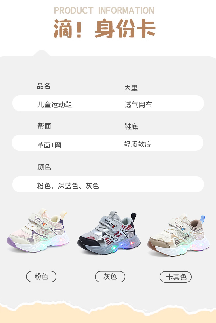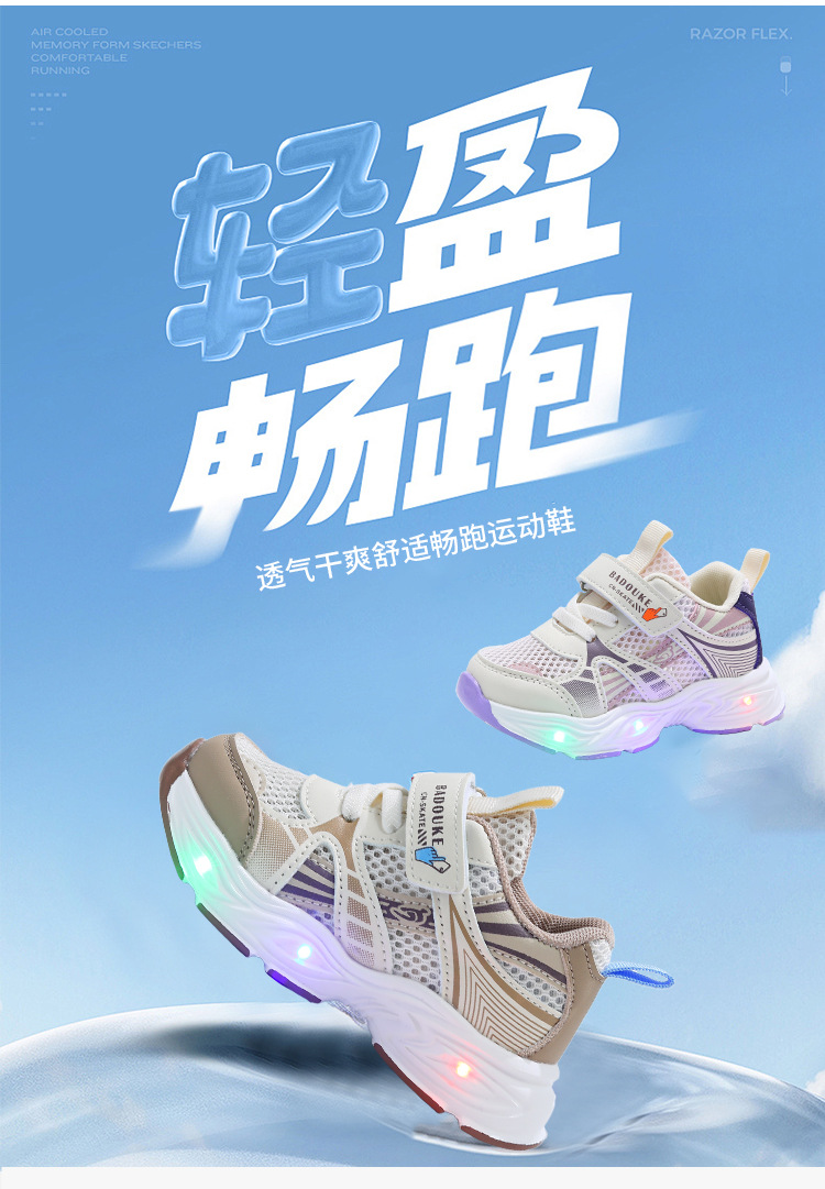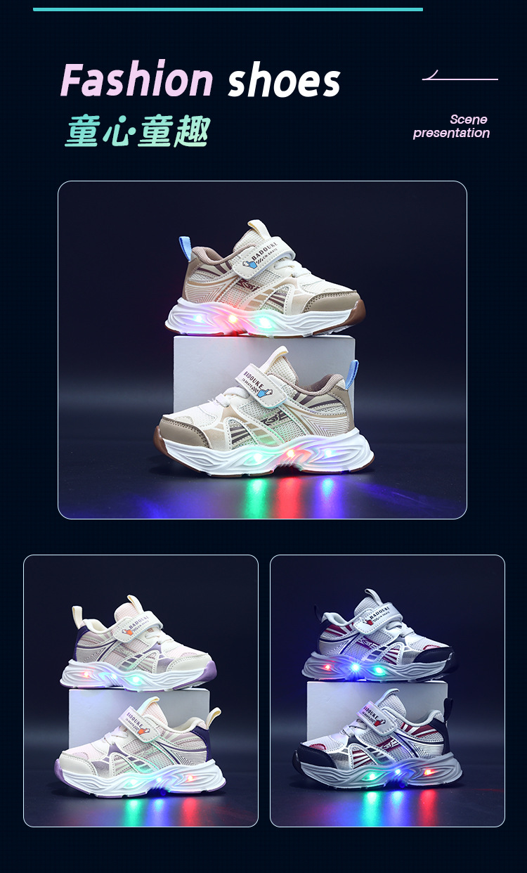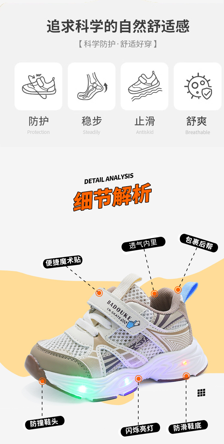 儿童运动鞋2025新款发光鞋童鞋透气学步机能鞋轻便儿童休闲鞋