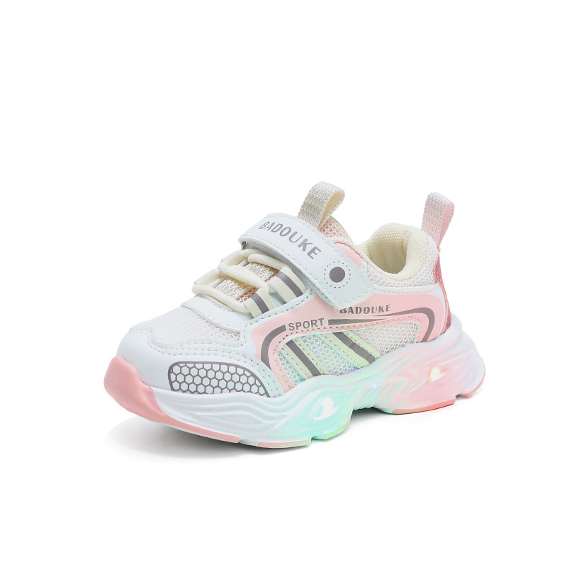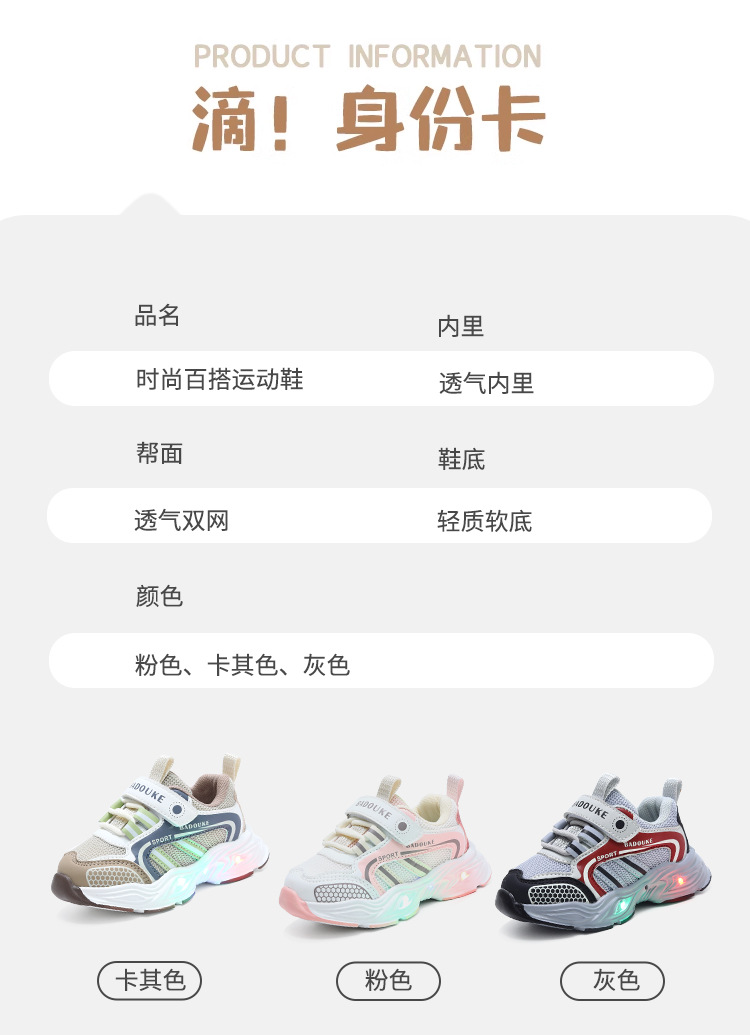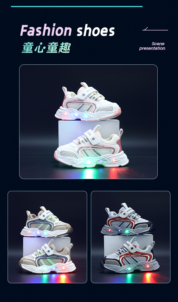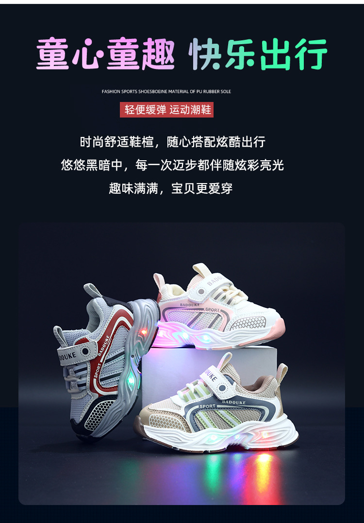 发光童鞋2025夏季新款男女童网面跑步鞋软底轻便小童运动鞋机能鞋