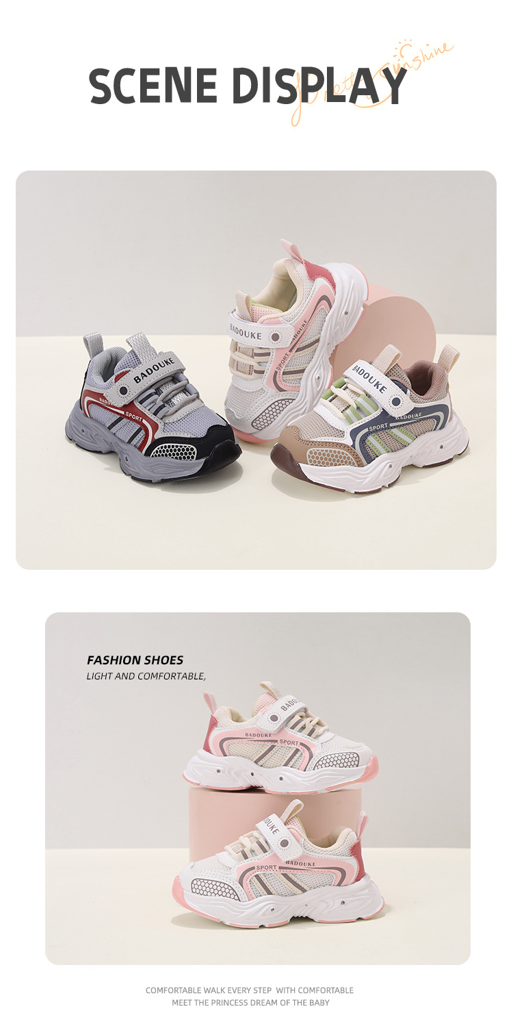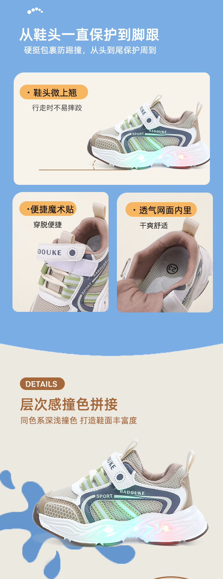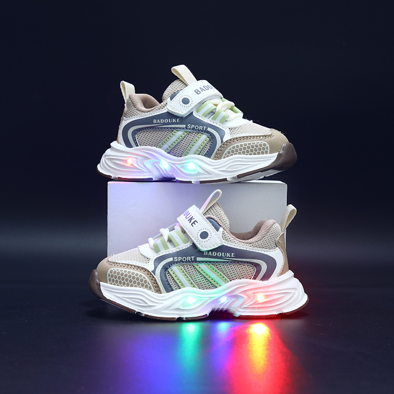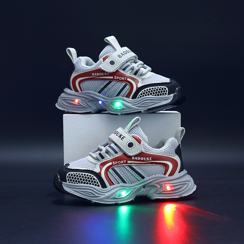 发光童鞋2025夏季新款男女童网面跑步鞋软底轻便小童运动鞋机能鞋