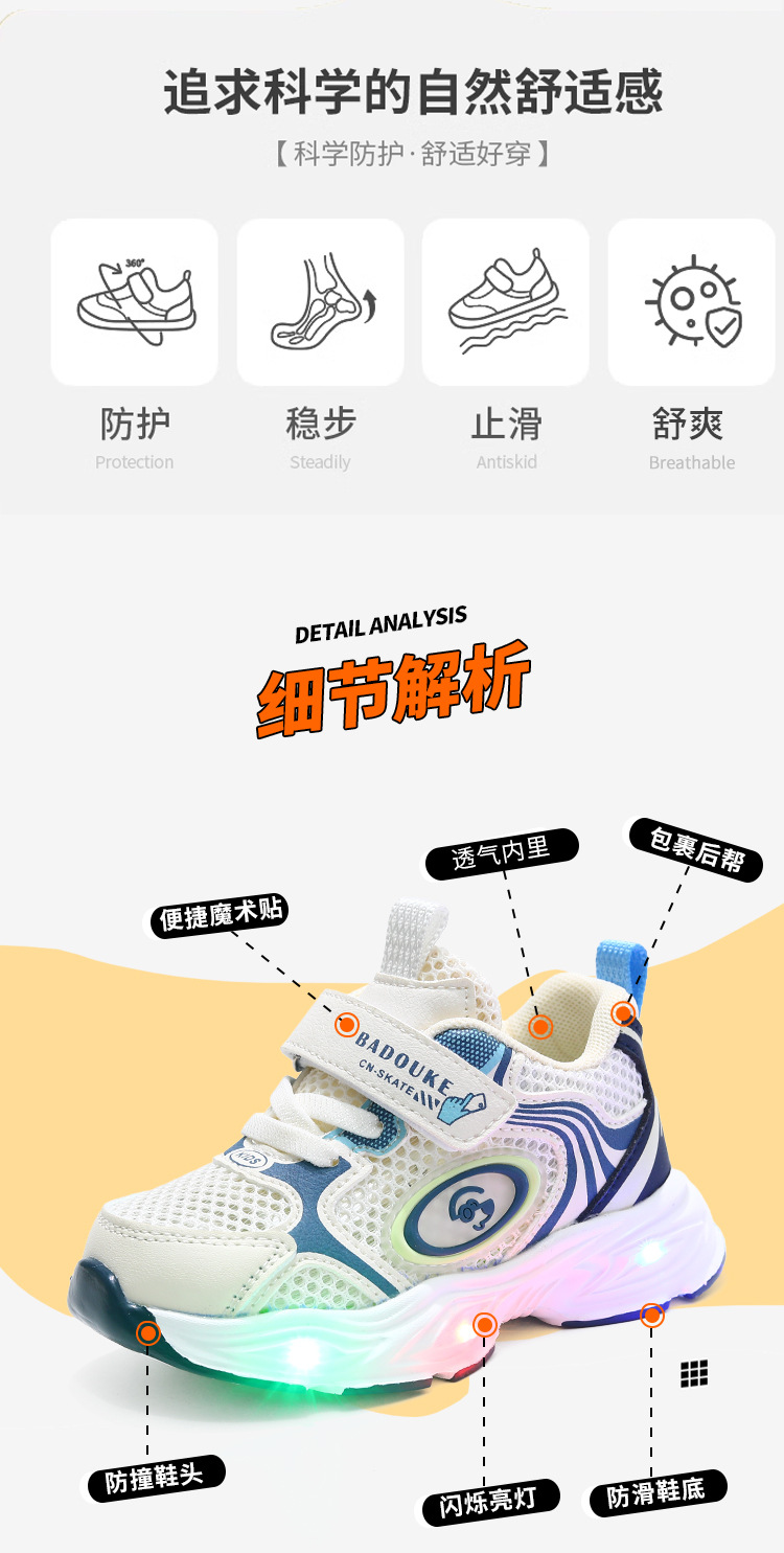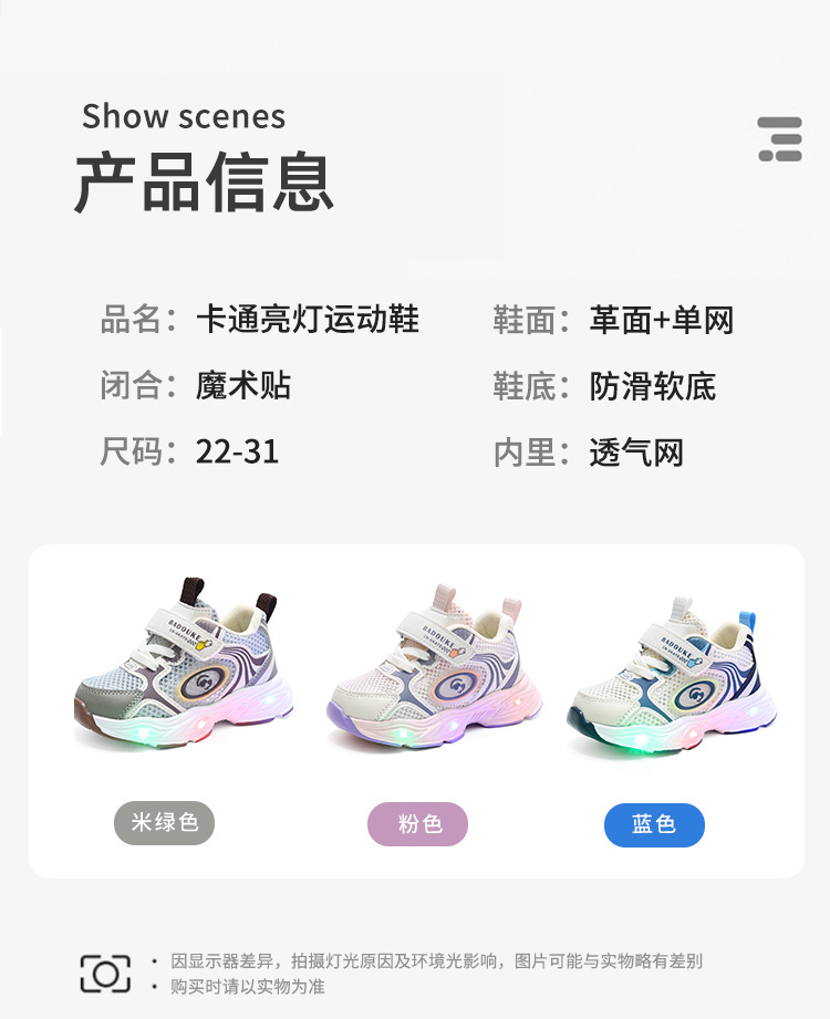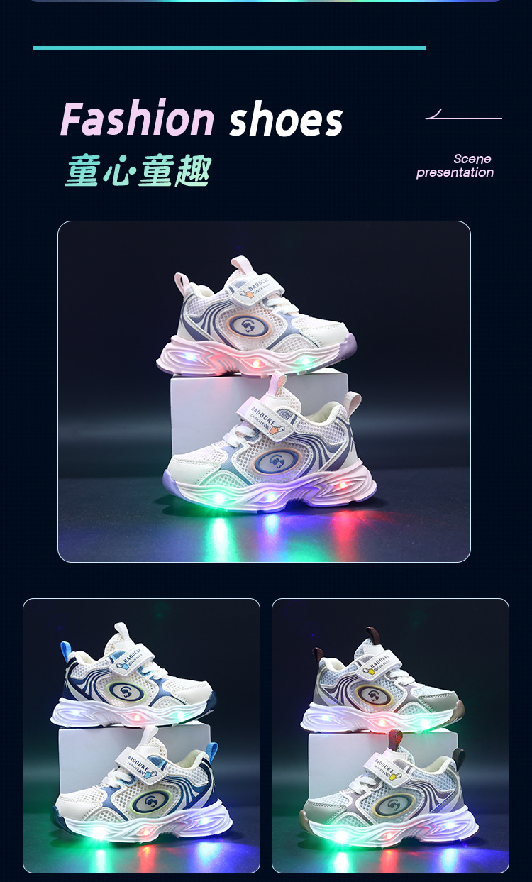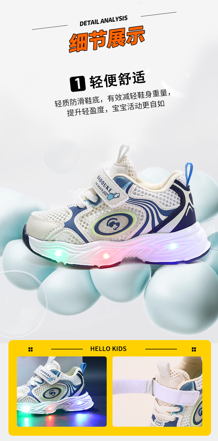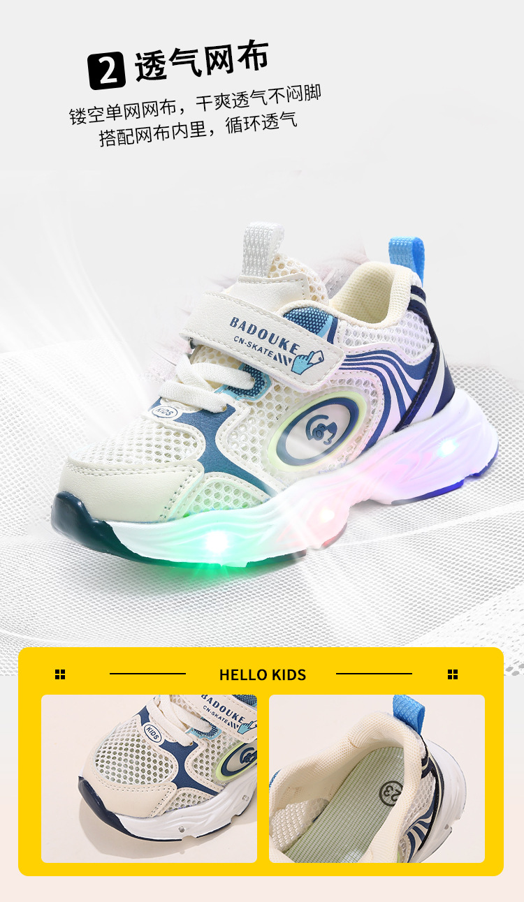 2025夏季新款透网亮灯童鞋男童轻便透气运动鞋防滑跑步鞋韩版潮款