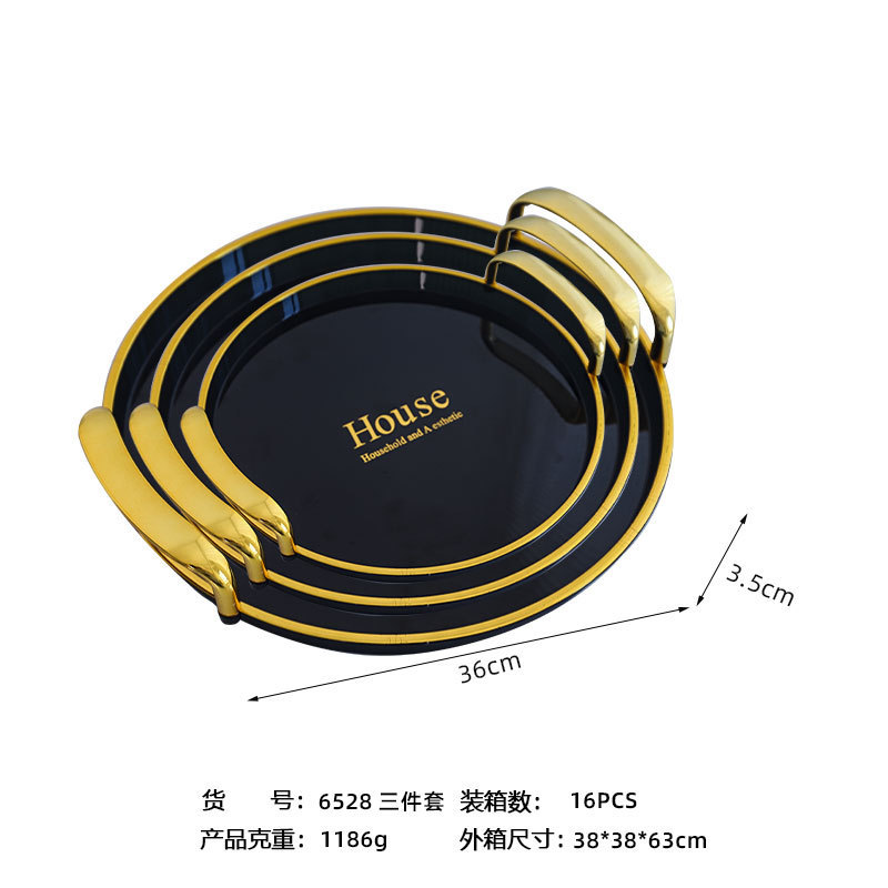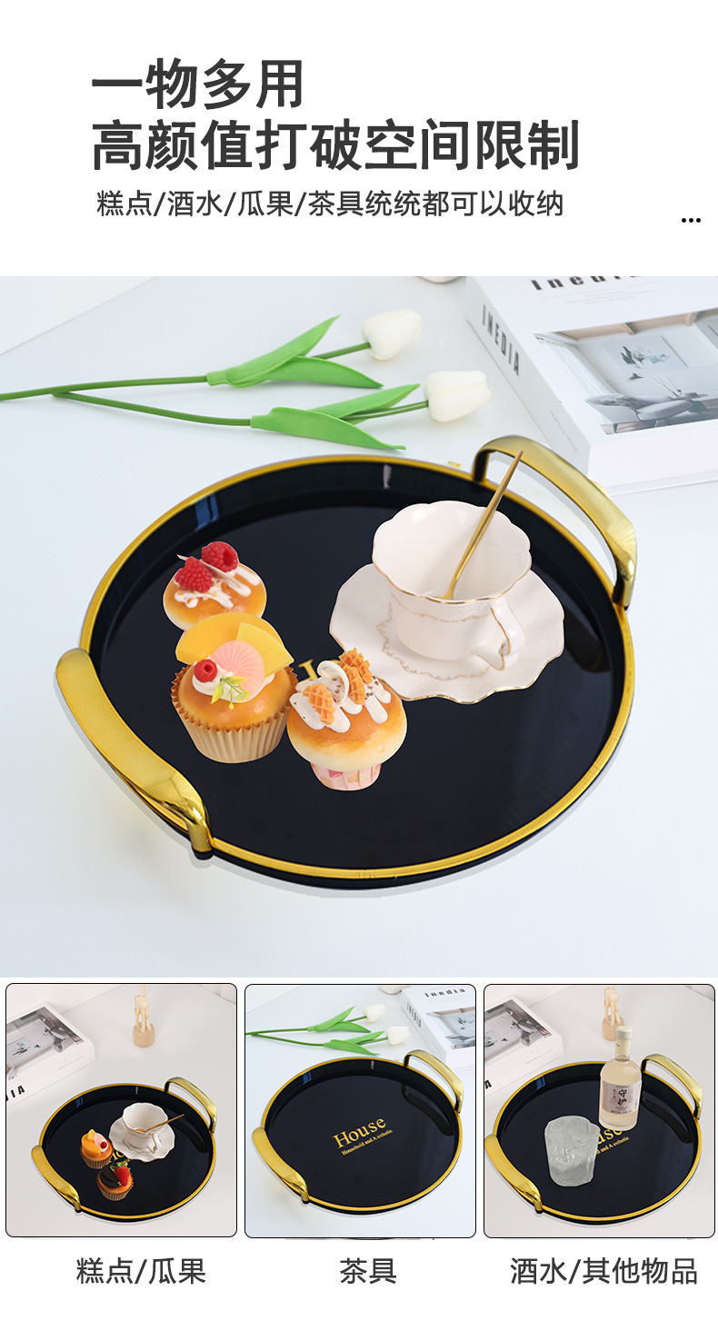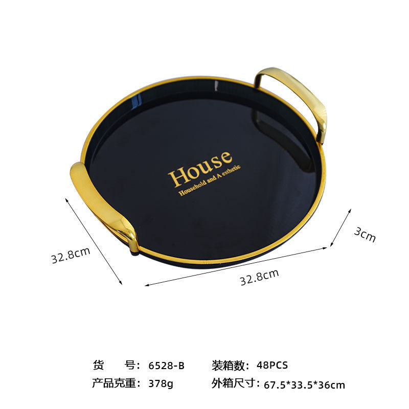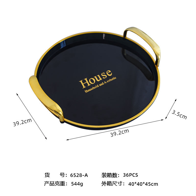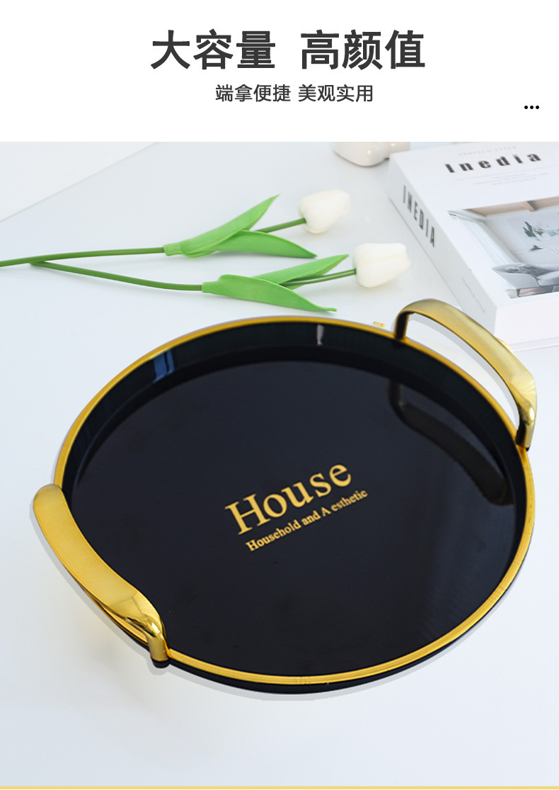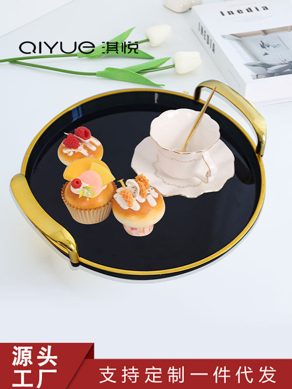 轻奢托盘黑金圆形餐厅茶盘茶几杯子放茶杯水杯家用客厅餐盘批发