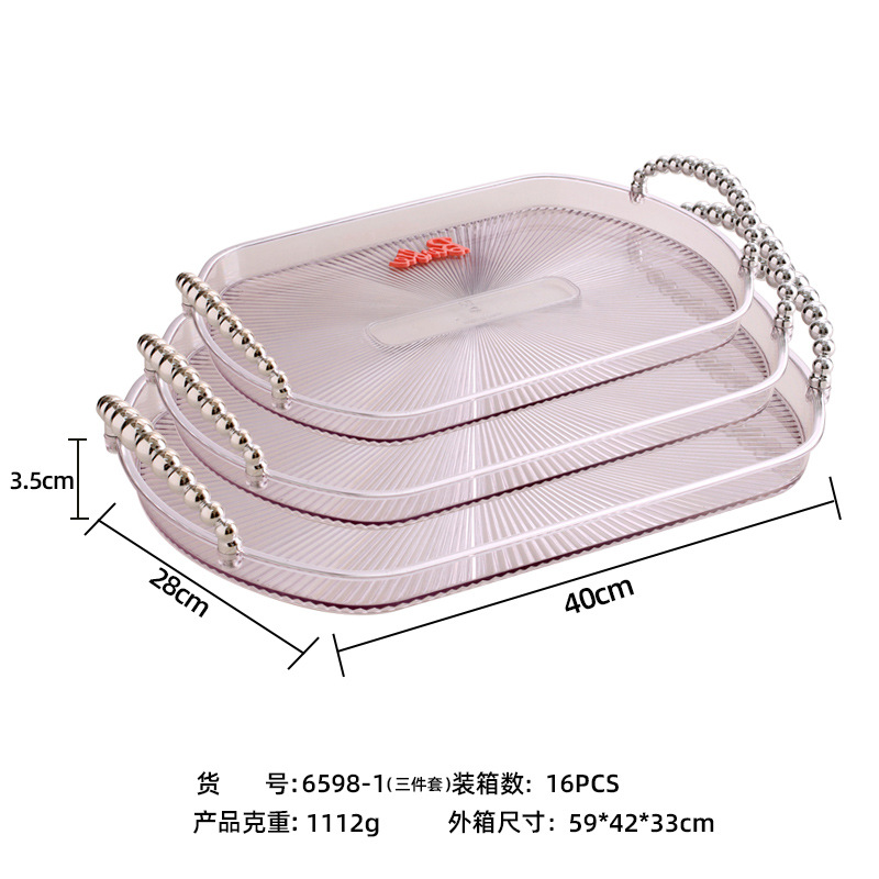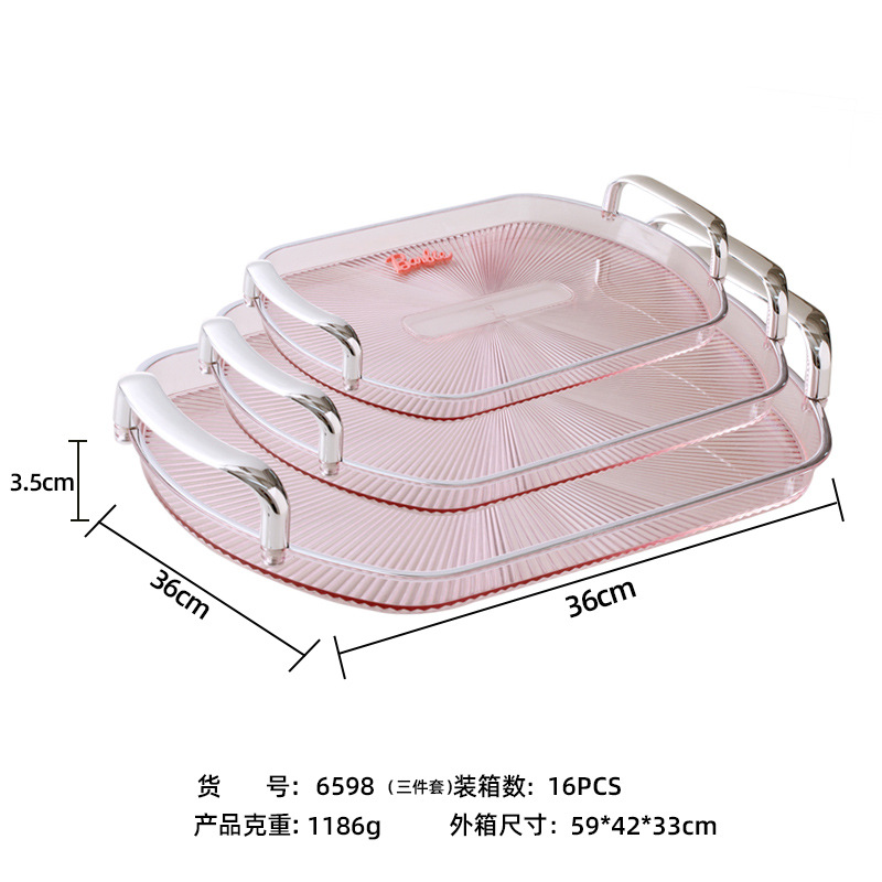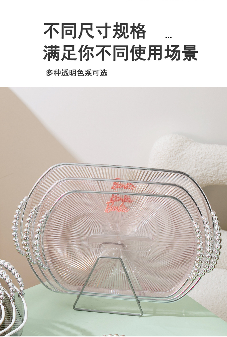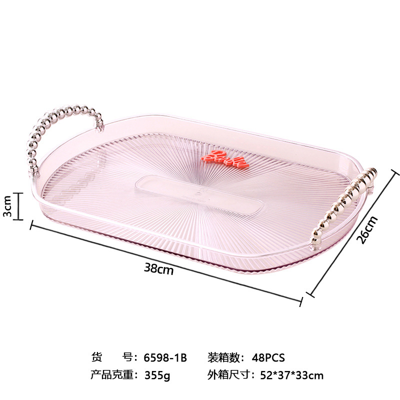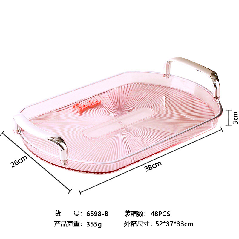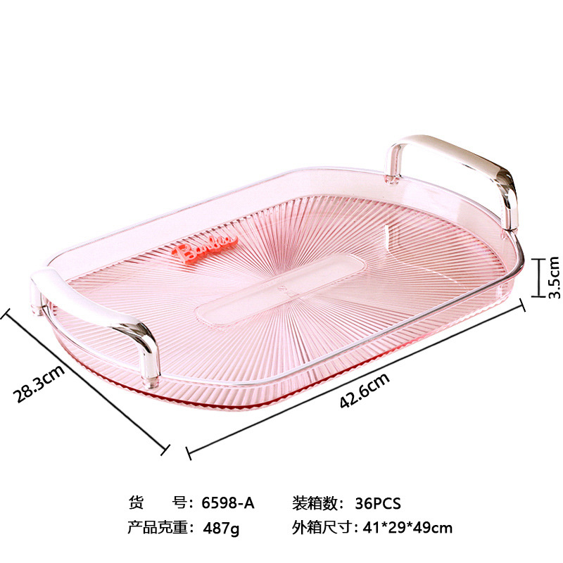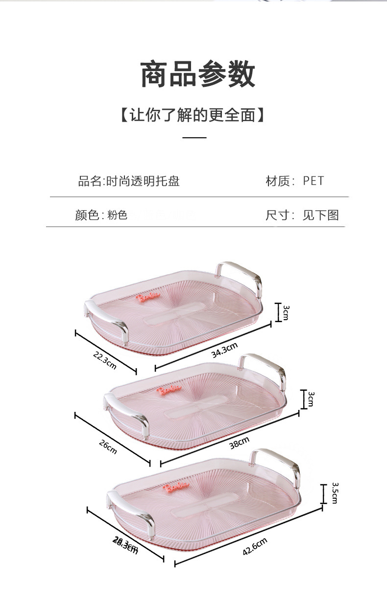椭圆透明粉色镀银轻奢茶盘客厅茶几托盘放茶杯水杯收纳盘水果盘