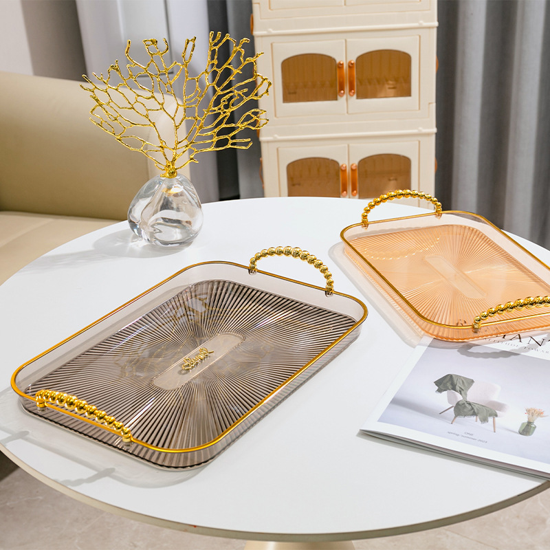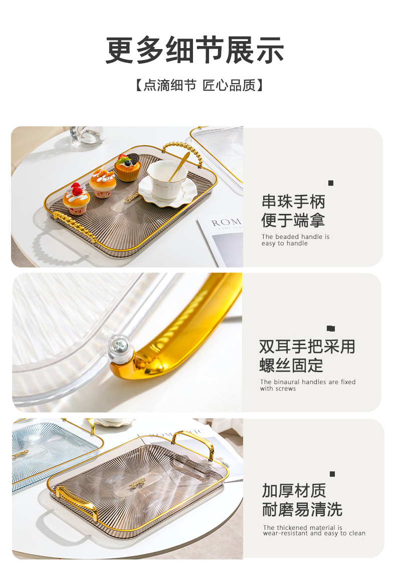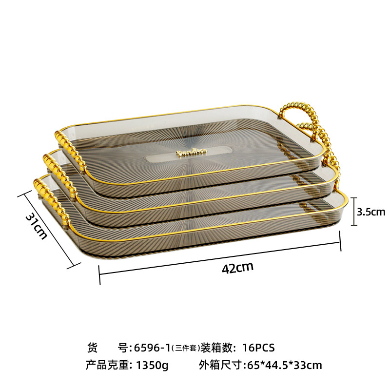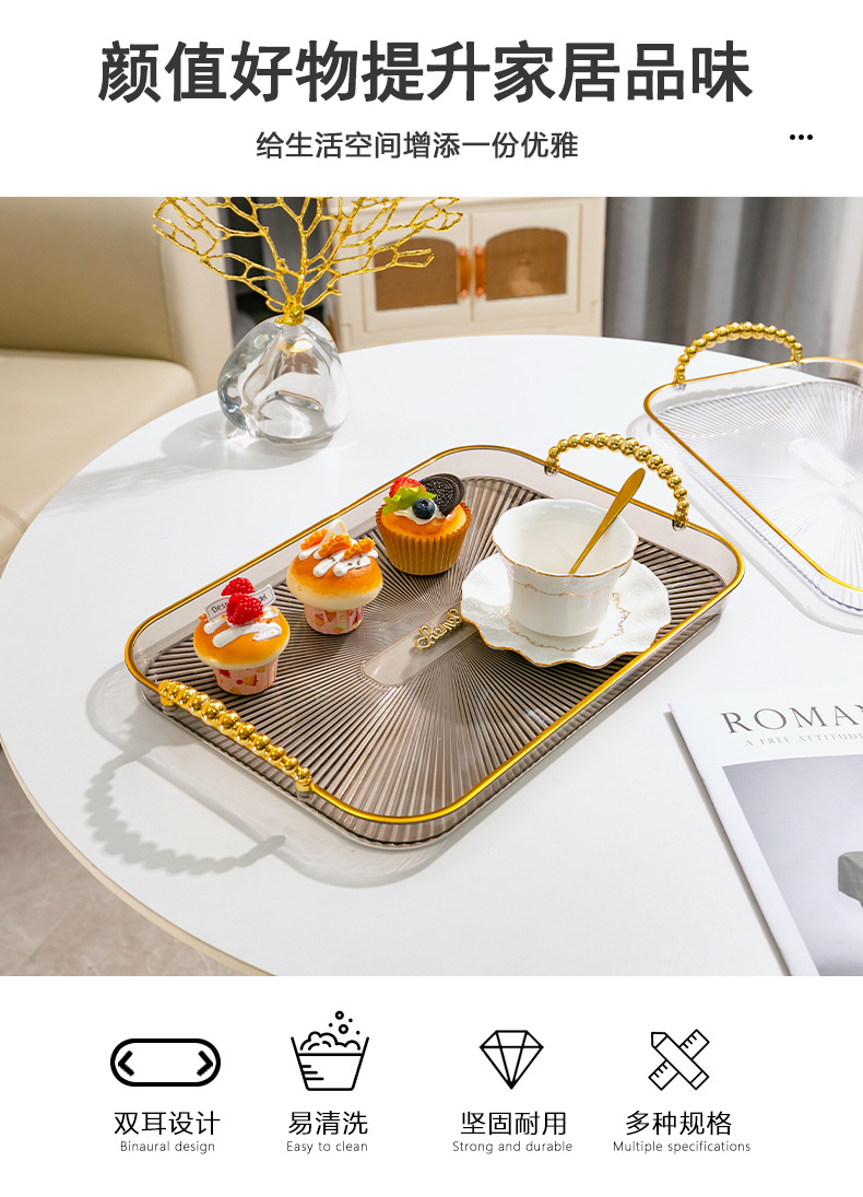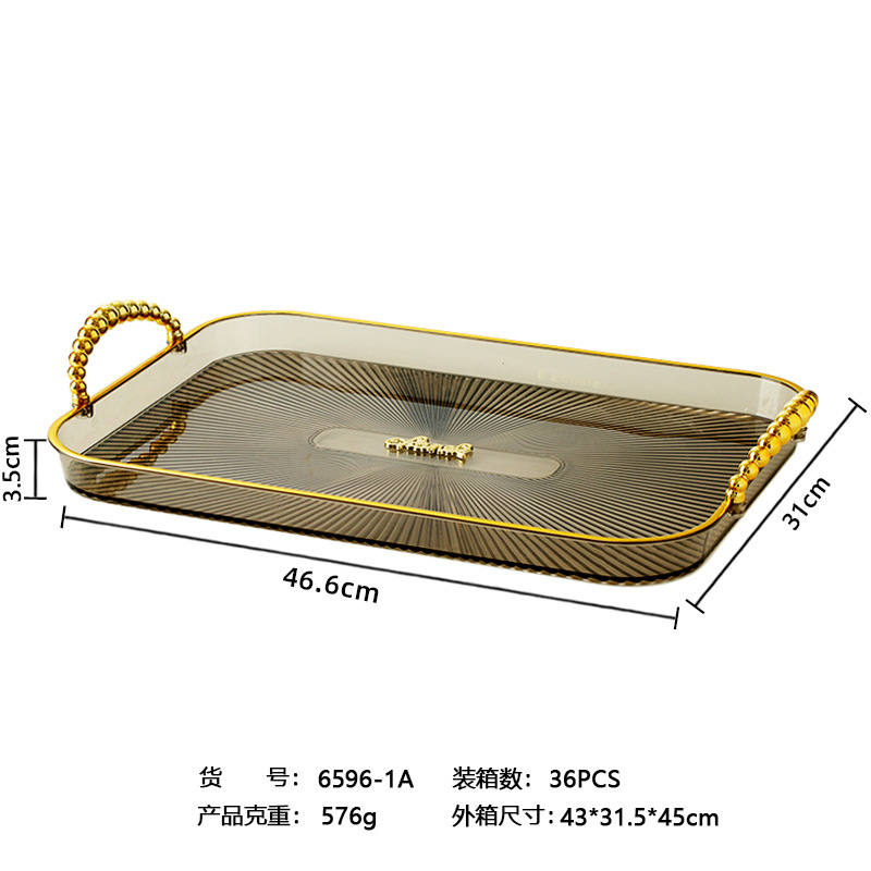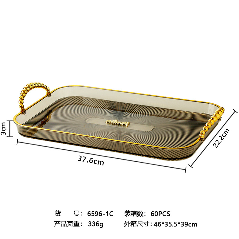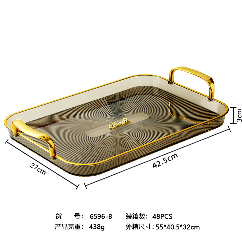 烟灰色长方形镀金北欧ins托盘家用放茶杯水杯茶盘塑料客厅茶几杯