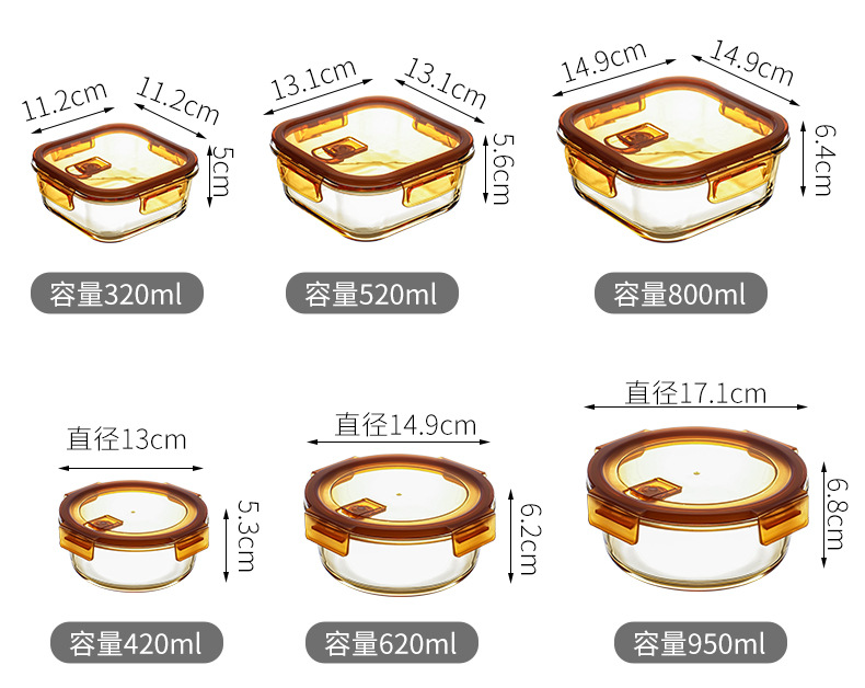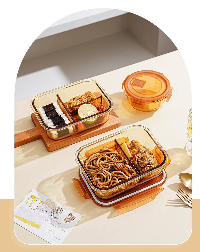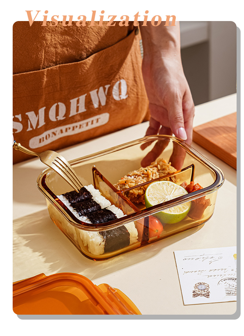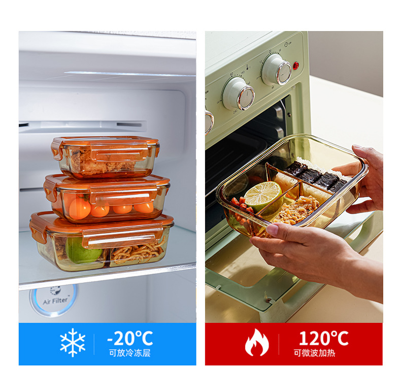 高硼玻璃饭盒可微波炉加热专用带饭餐盒碗保鲜盒长方形分隔便当盒