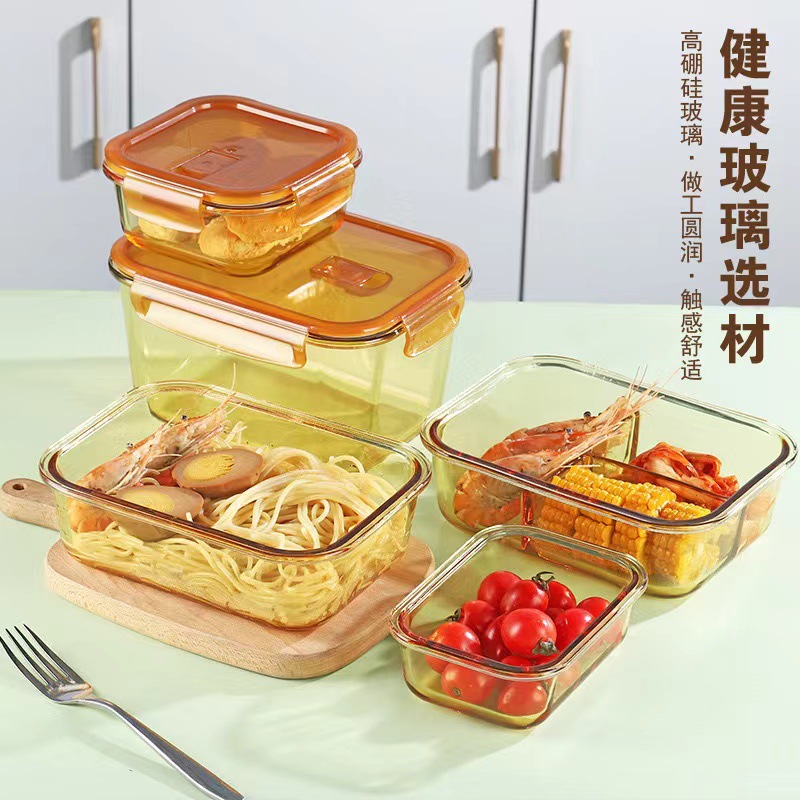 上班族便当盒分隔玻璃饭盒微波炉加热学生餐盒汤碗透明水果保鲜盒