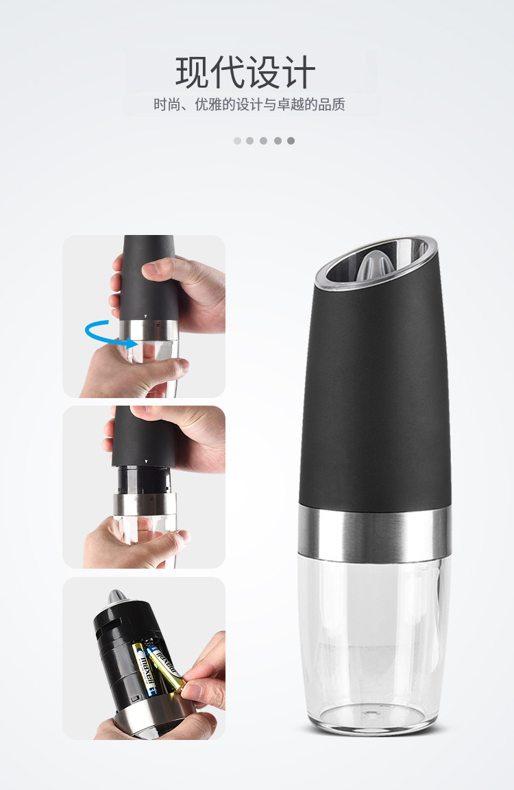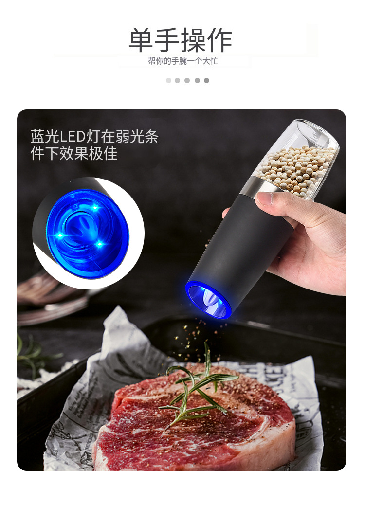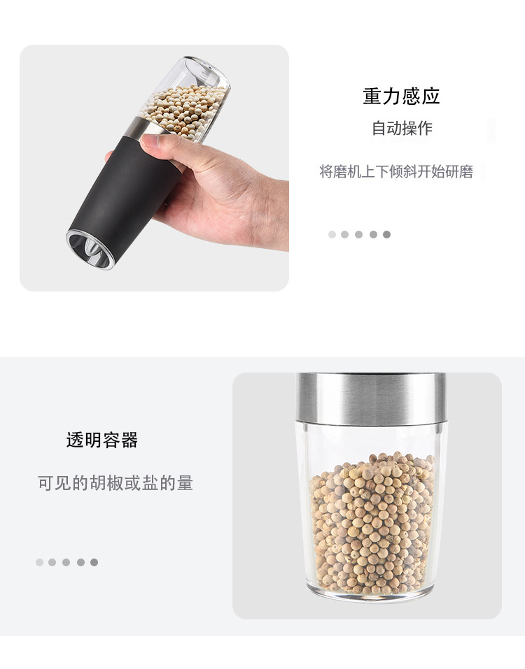 凯得利跨境爆款重力感应电动胡椒研磨器家用超划算花椒海盐研磨瓶