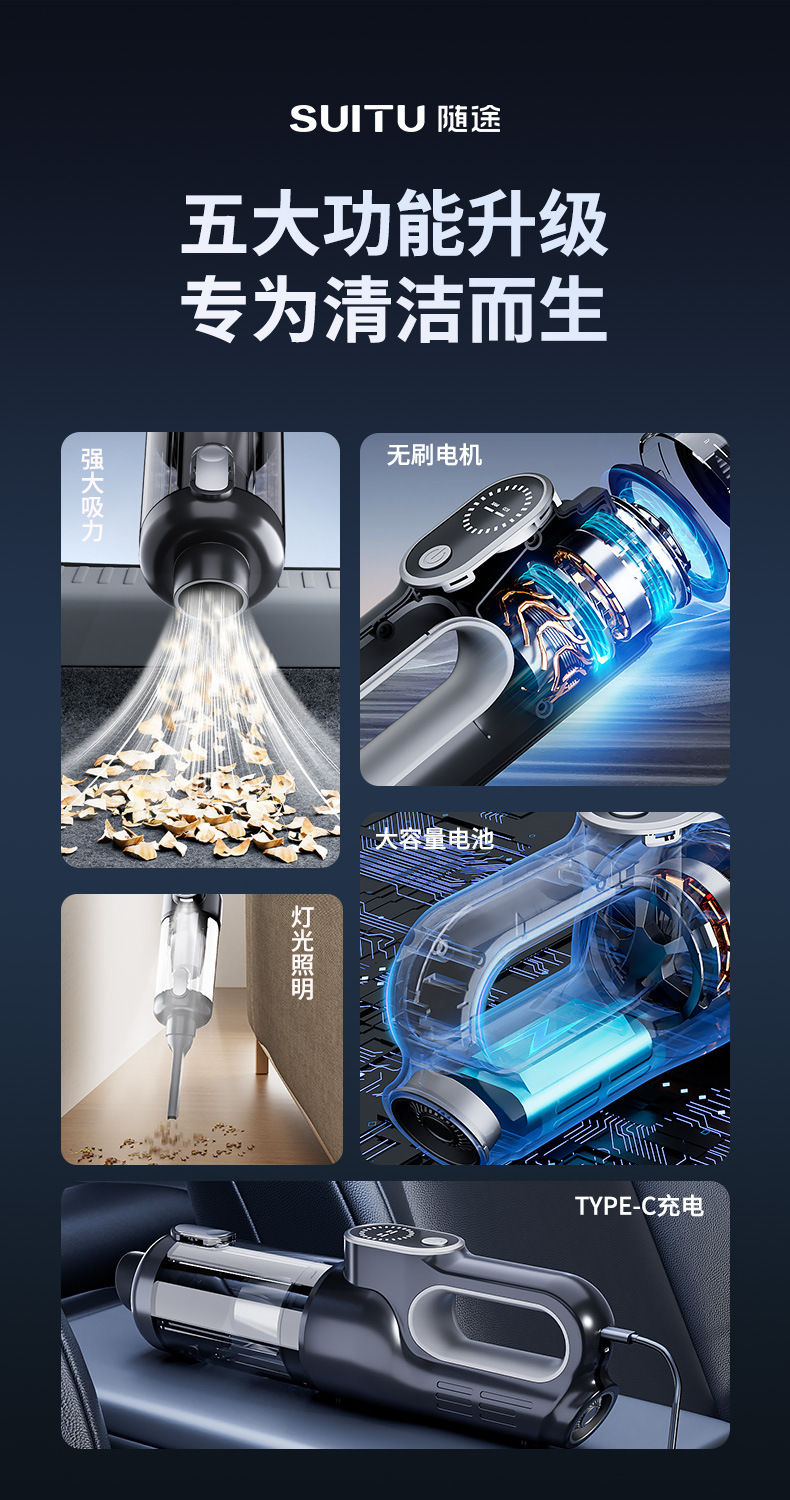车载吸尘器无线多功能无刷两用一体家用充气迷你大功率汽车吹尘器