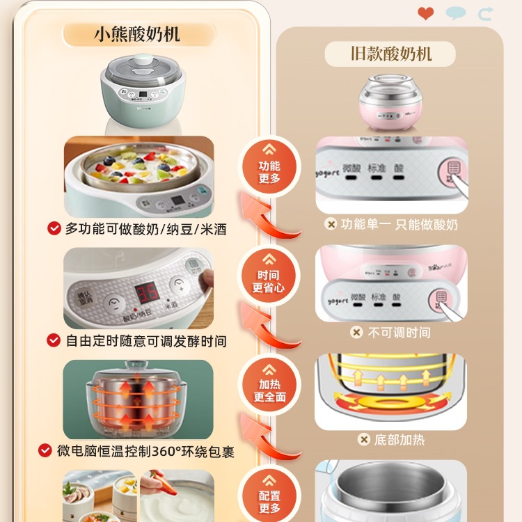 小熊酸奶机家用全自动智能多功能自制纳豆米酒恒温发酵机烹饪机无