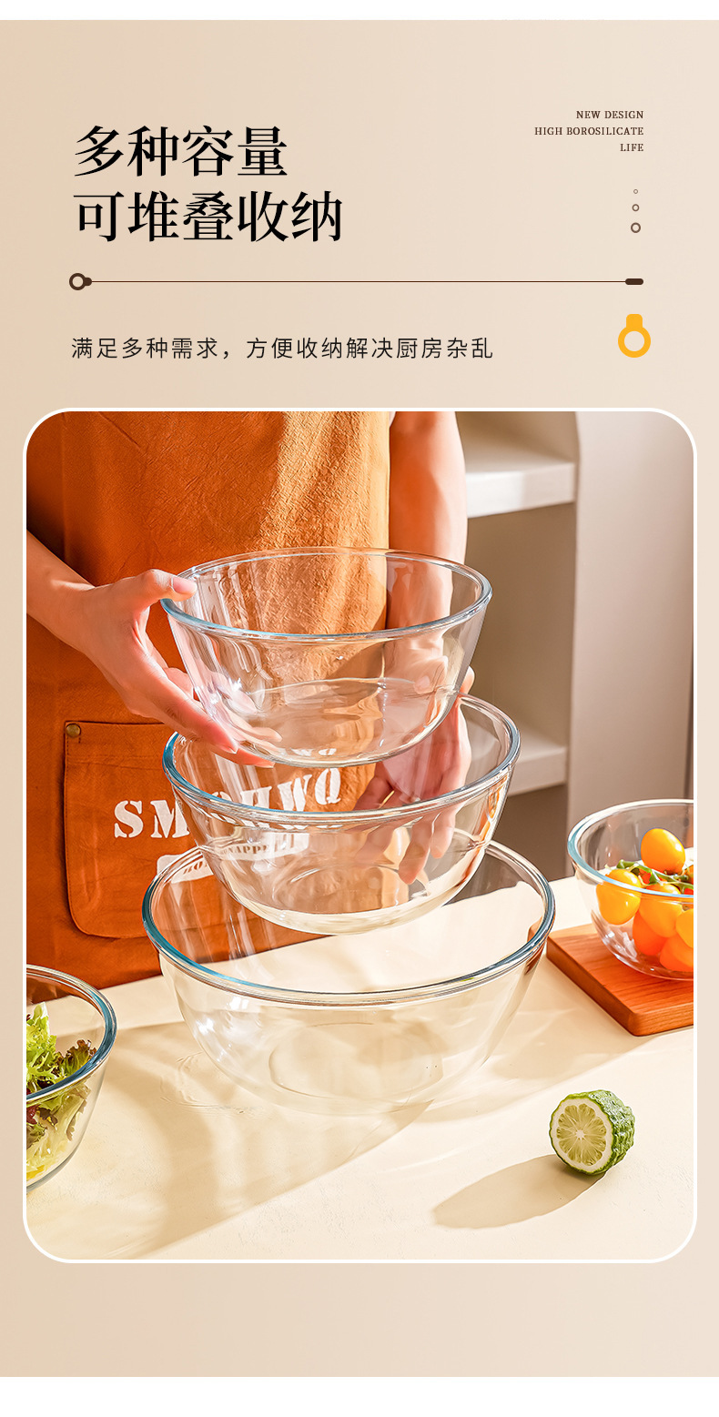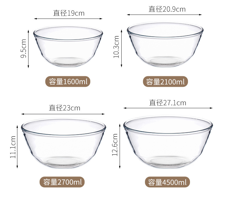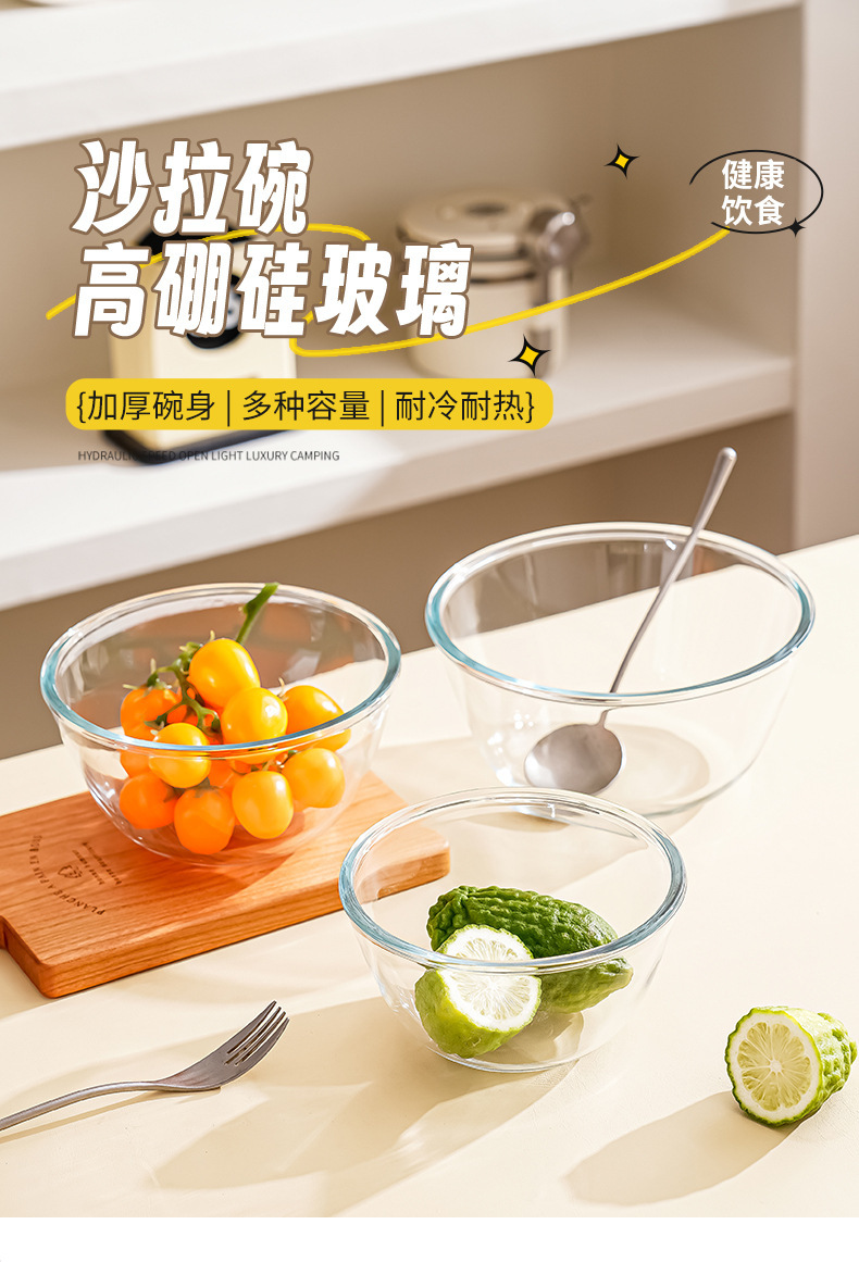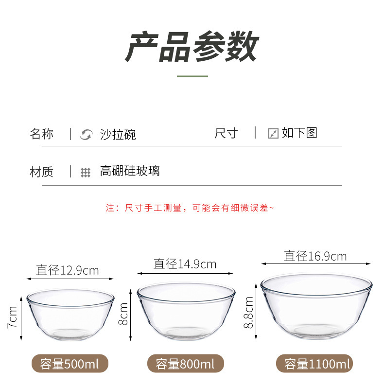 透明玻璃碗耐高温家用烘焙玻璃盆和面蛋糕打蛋沙拉泡面碗大号汤碗