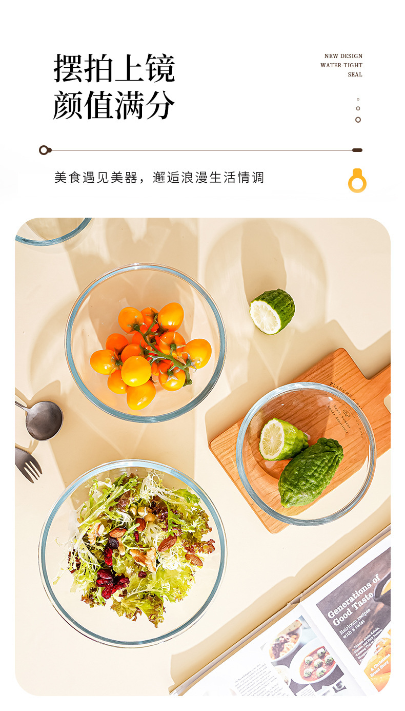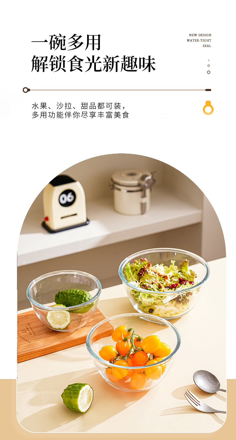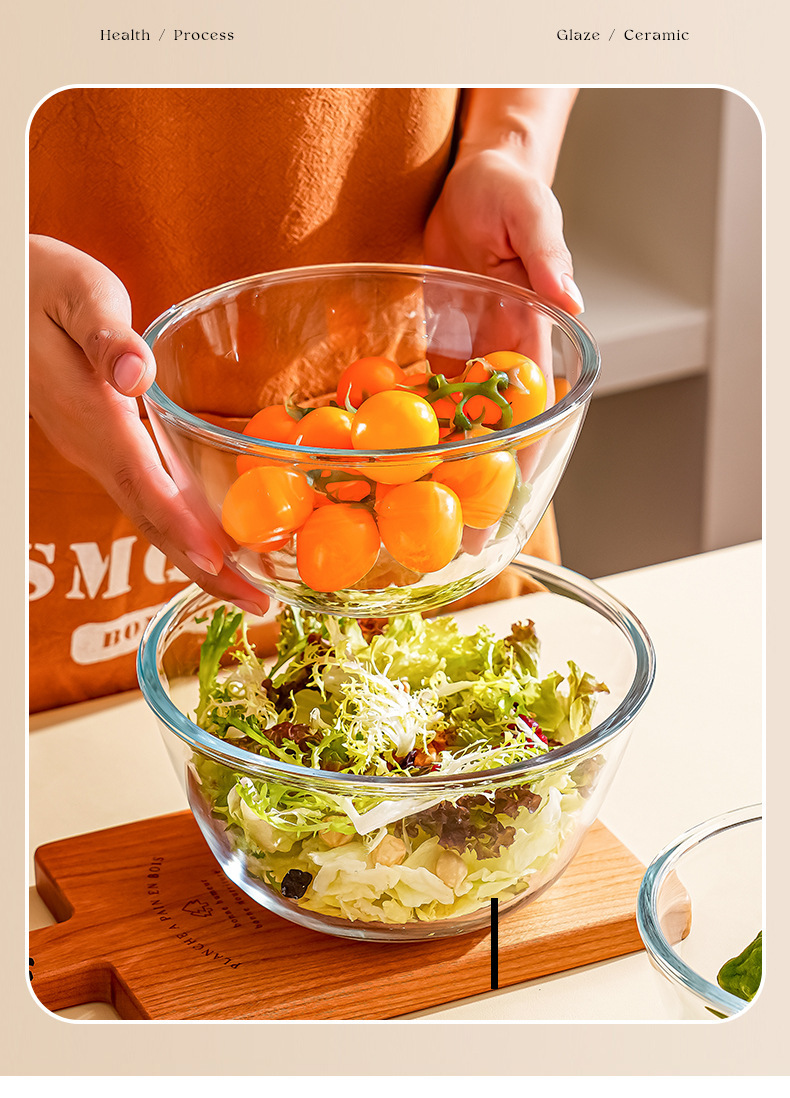 透明玻璃碗耐高温家用烘焙玻璃盆和面蛋糕打蛋沙拉泡面碗大号汤碗