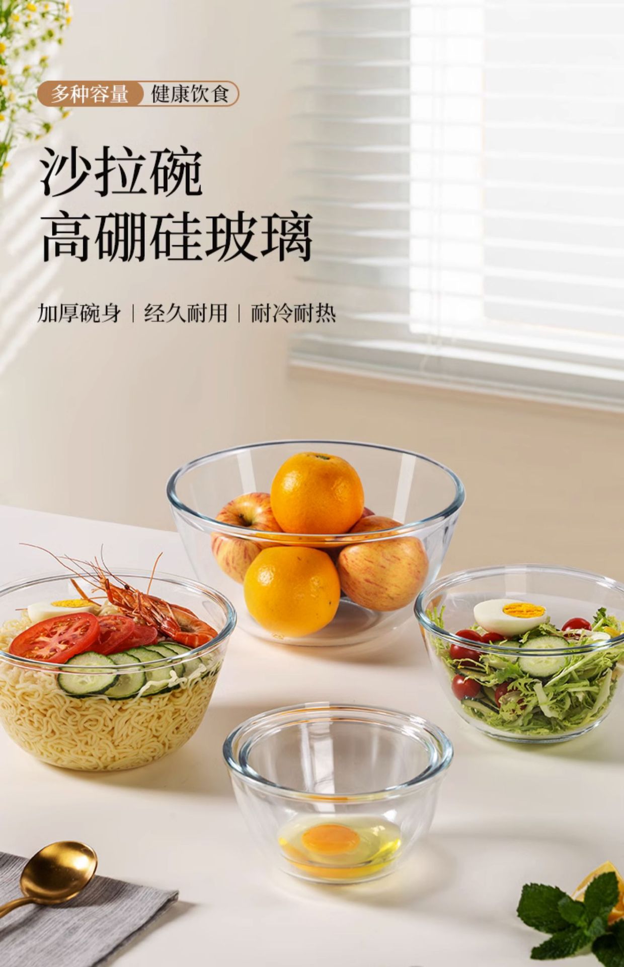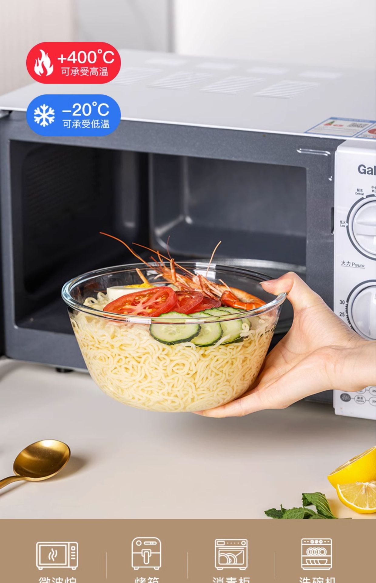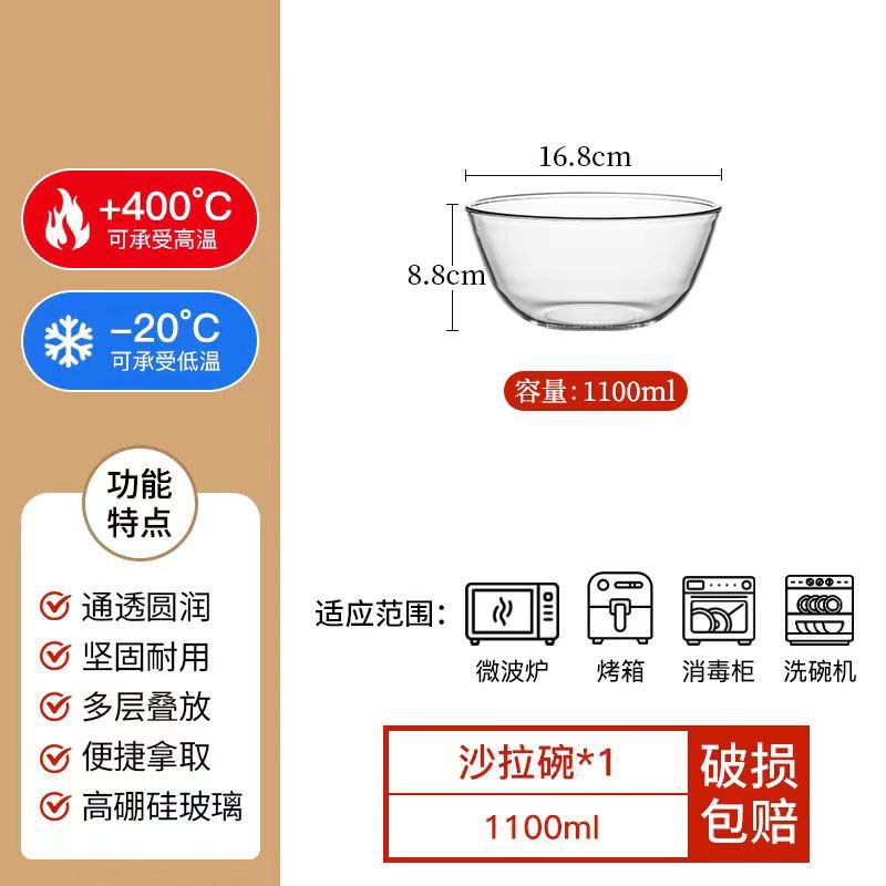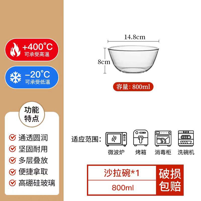 耐高温透明玻璃碗加厚和面盆微波炉专用高硼硅玻璃家用大号沙拉碗
