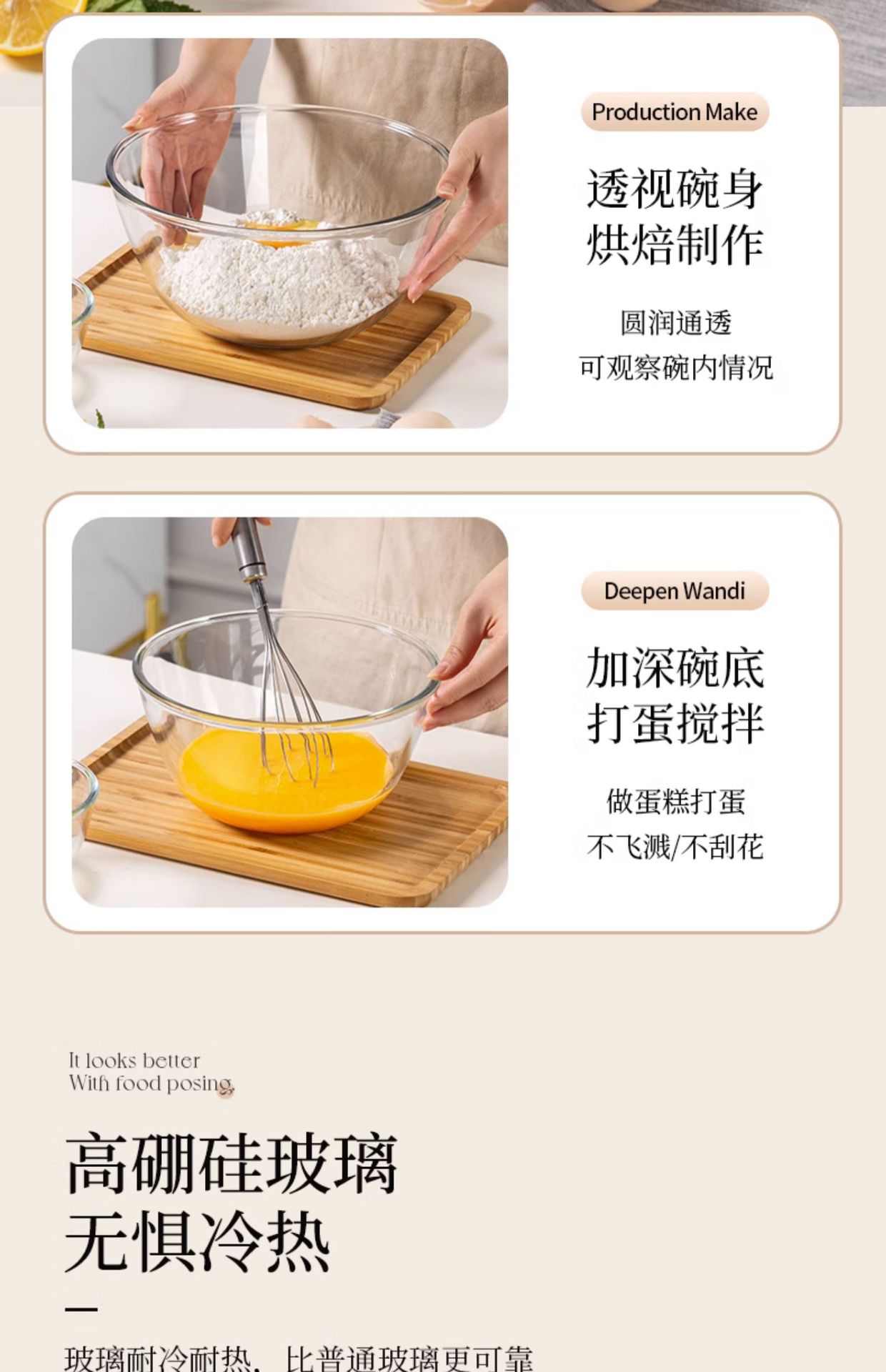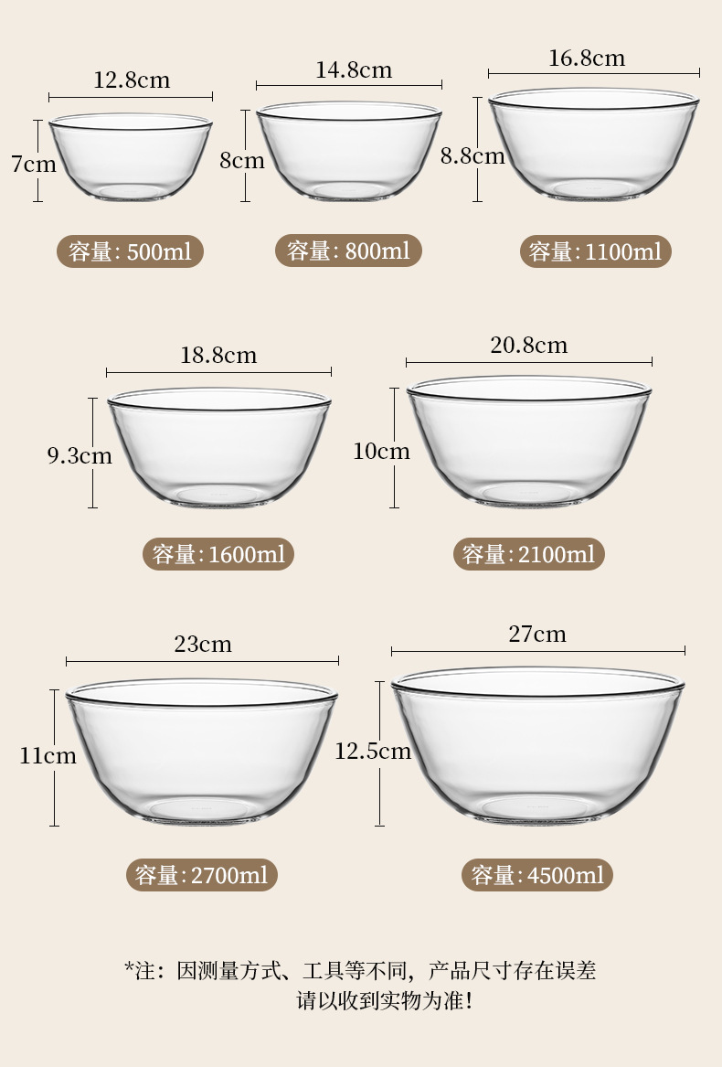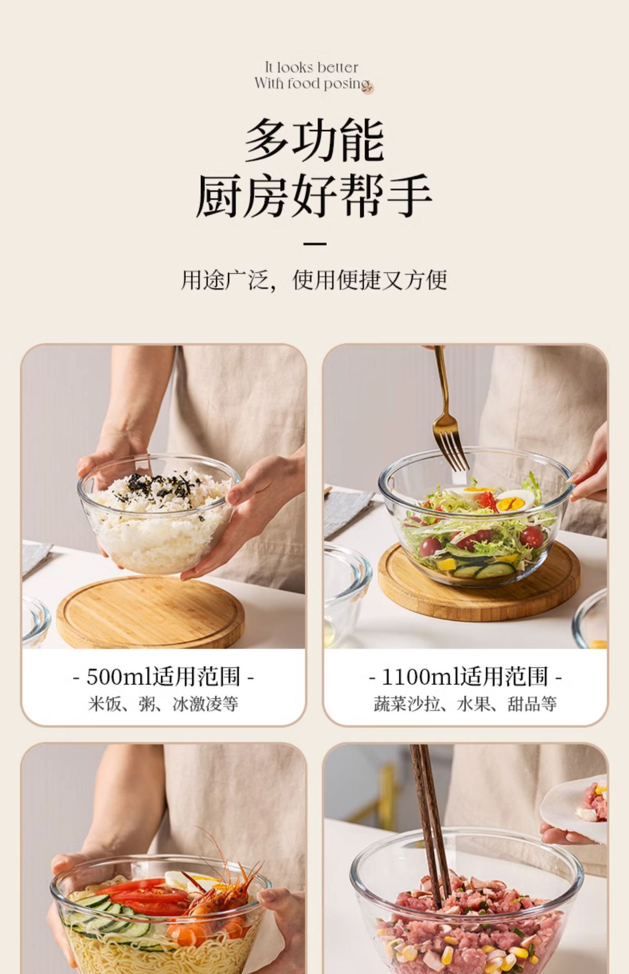 耐高温透明玻璃碗加厚和面盆微波炉专用高硼硅玻璃家用大号沙拉碗