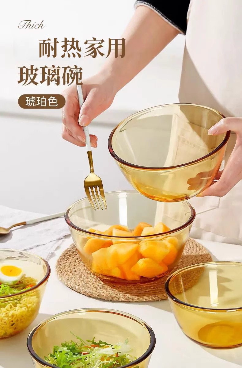 加厚耐高温透明玻璃碗微波炉专用大碗烘焙碗餐具零食沙拉碗家用