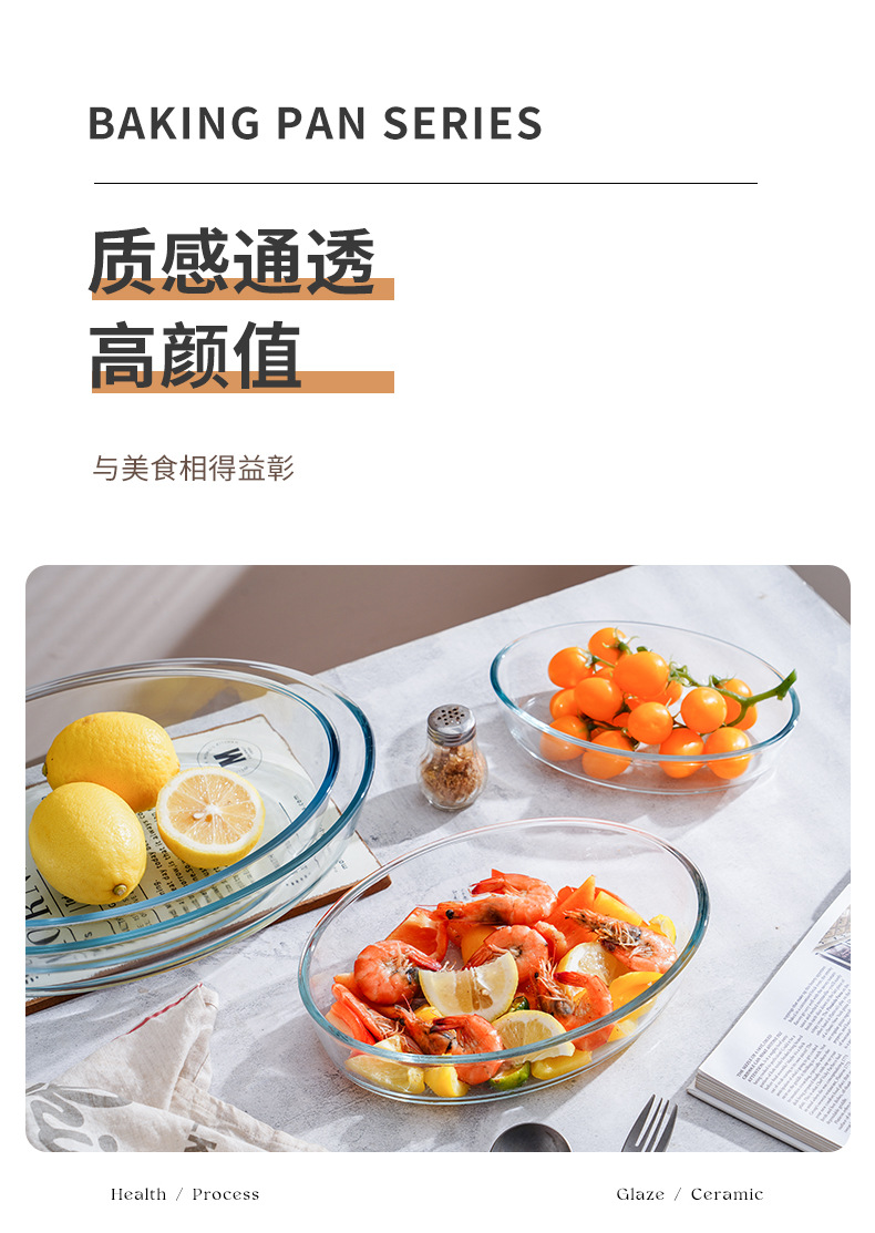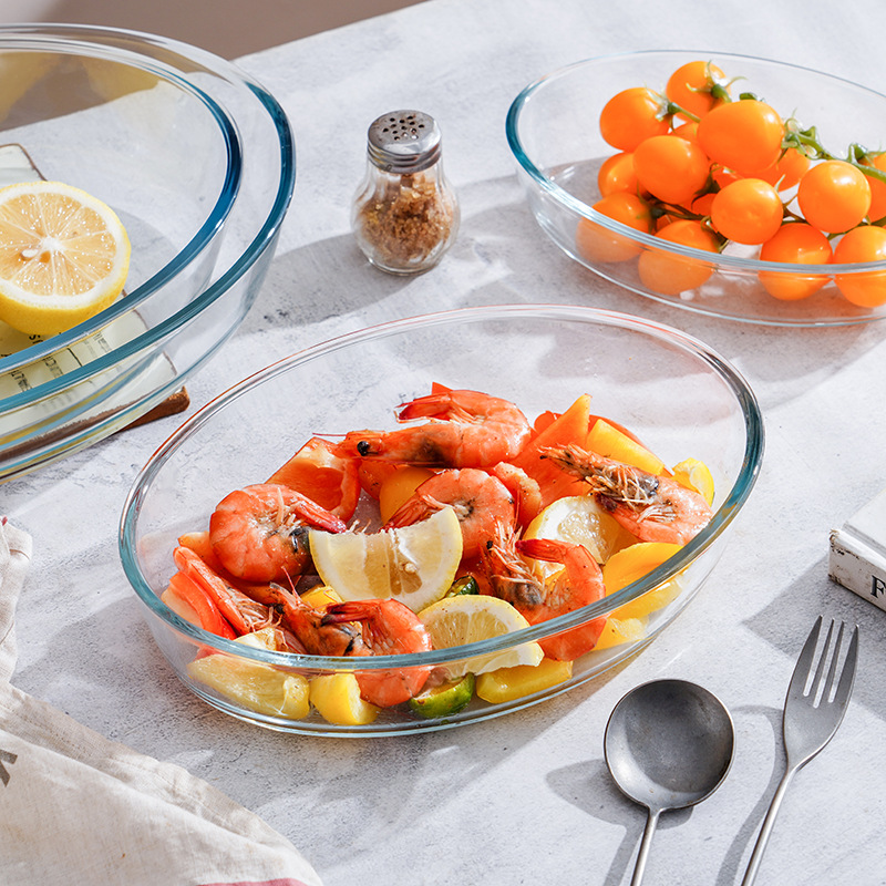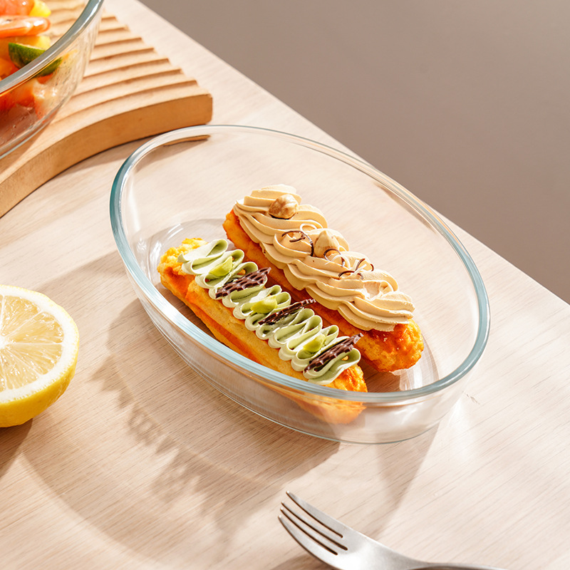 厂家直销椭圆形玻璃烤盘耐热烤鱼盘家用饺子盘餐盘可进微波炉烤箱