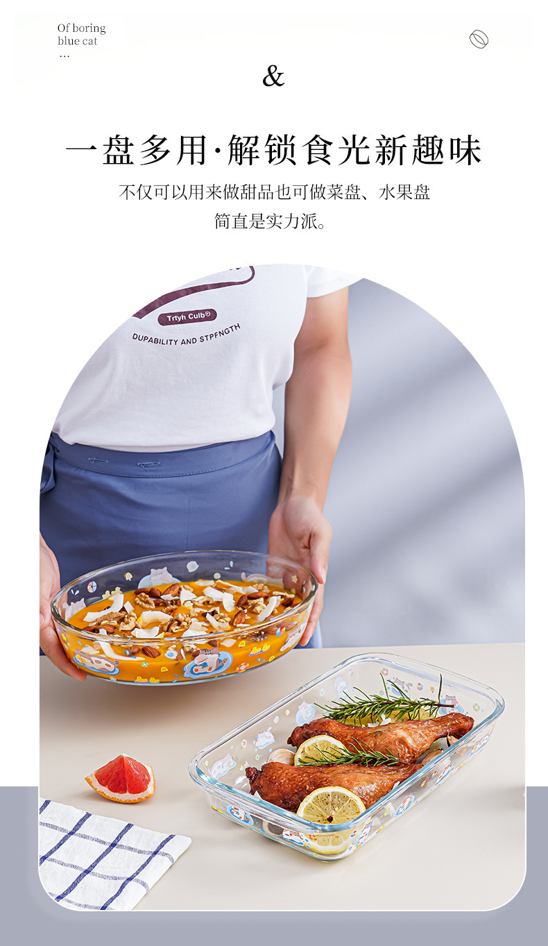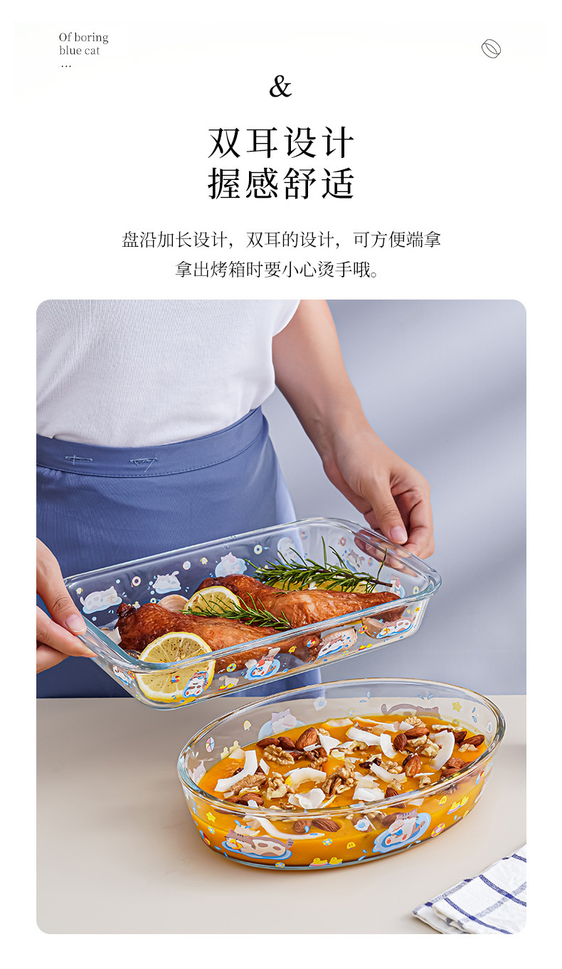 高硼硅耐热玻璃烤盘椭圆长方形焗饭盘简约微波炉烤箱烘焙披萨盘子