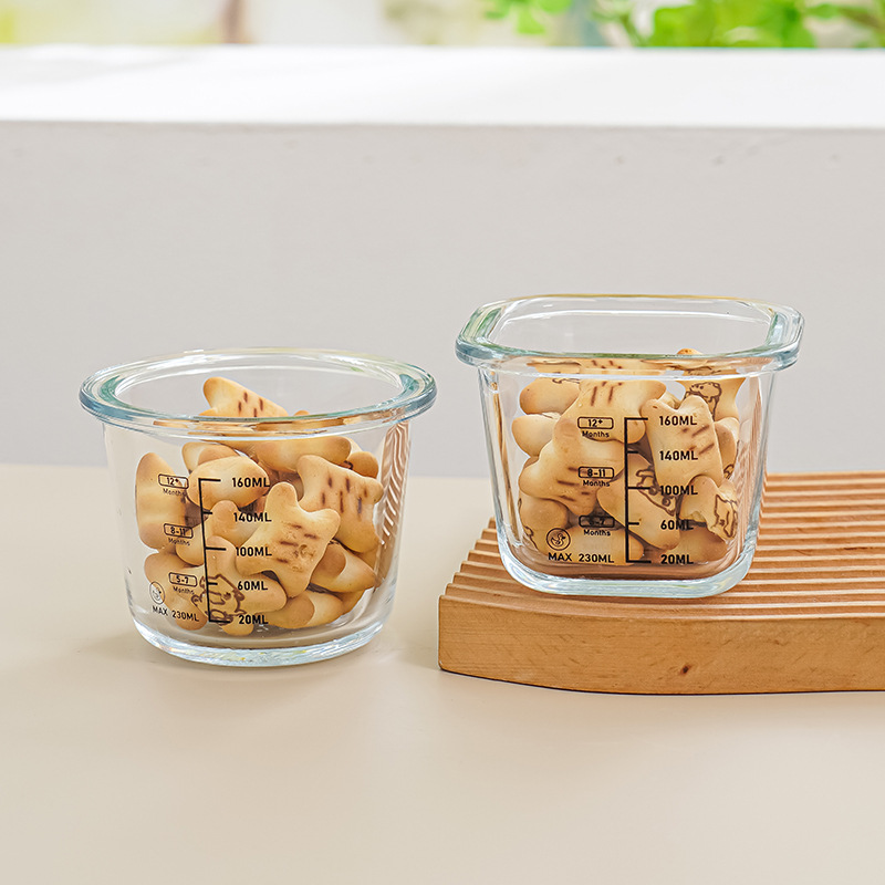 硅胶密封保鲜儿童碗可蒸煮蛋羹碗婴儿专用玻璃辅食碗带刻度宝宝碗