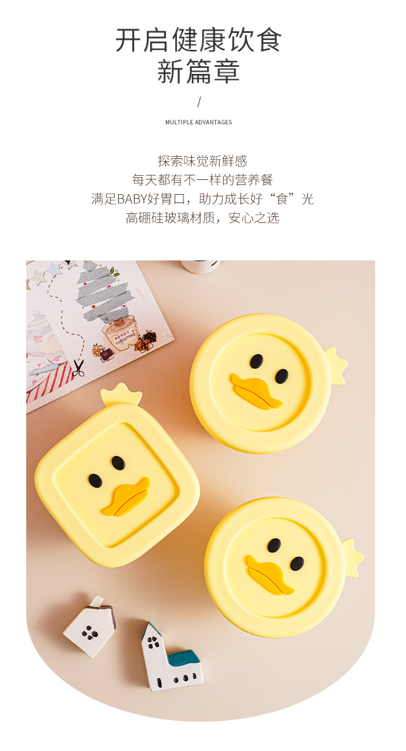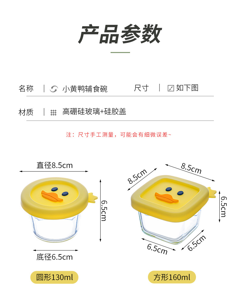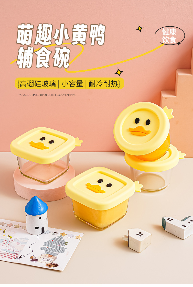 | small yellow duck high boron solid food bowl small size square 160ml + small size round 130ml(《小黄鸭高硼辅食碗》小号方形160ML+小号圆形130ML) | USD $1.33 | 9156 piece available |