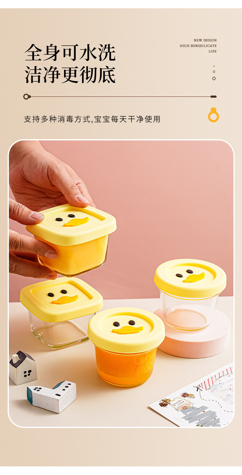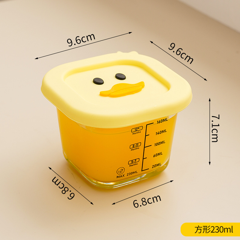 | small yellow duck high boron solid food bowl small size square double package 160ml(《小黄鸭高硼辅食碗》小号方形两只装160ML) | USD $1.38 | 9997 piece available |