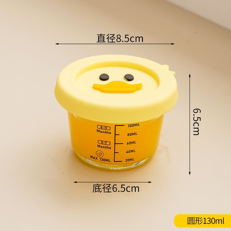 | small yellow duck high boron solid food bowl small size round double package 130ml(《小黄鸭高硼辅食碗》小号圆形两只装130ML) | USD $1.28 | 9974 piece available |
