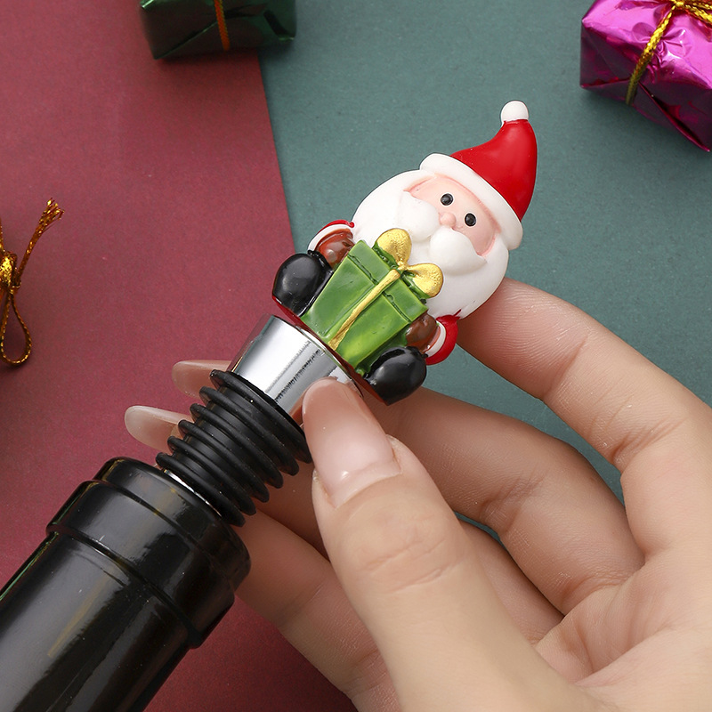 跨境欧美葡萄红酒塞创意圣诞节派对聚会树脂圣诞老人抱礼品4916-1